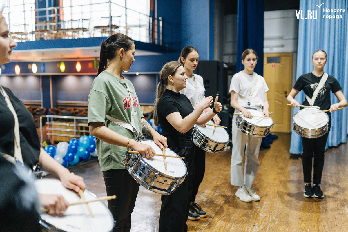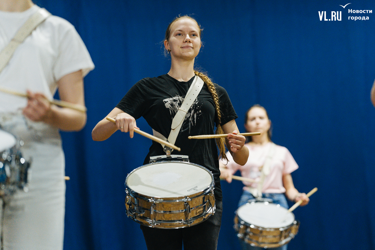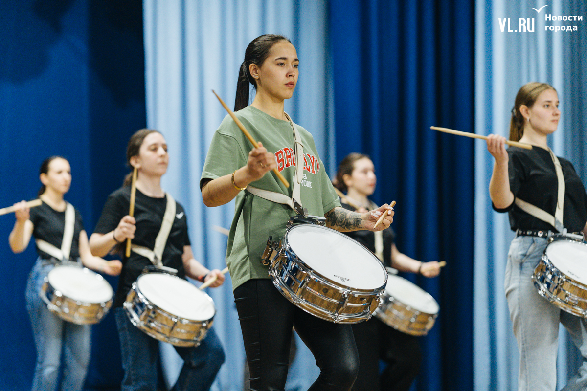 В следующем году церемониальному отряду барабанщиц Дальрыбвтуза исполнится 20 лет. Он до сих пор остаётся единственным среди вузов Приморья, работающим в таком формате. Выступлений было сотни – парады на «красные даты», городские шествия, кинофестиваль, ВЭФ. На них барабанщицы выглядят как с открытки – всегда улыбаются, их движения синхронны, а обязательные каблуки выстукивают в такт барабанным палочкам. Каждый год отряд набирает новеньких, хотя есть те, кто, окончив университет, до сих пор ходит на репетиции.