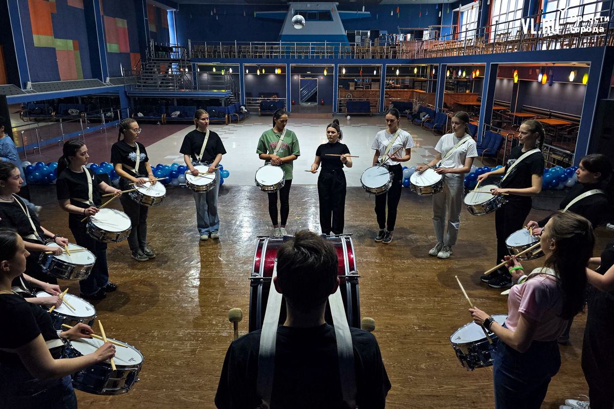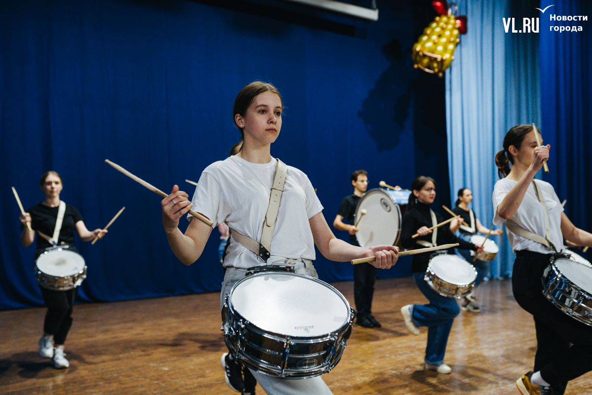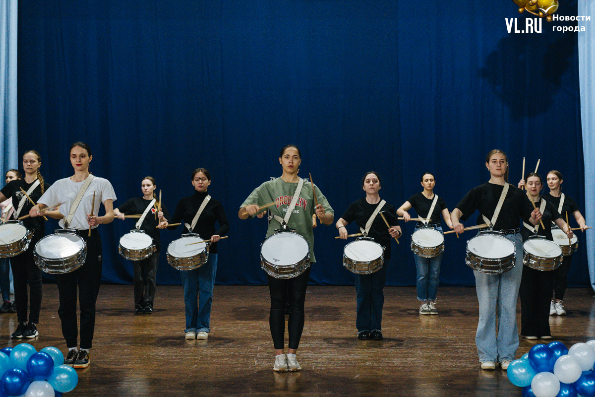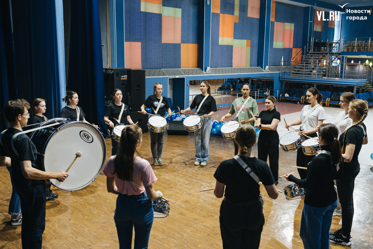 В следующем году церемониальному отряду барабанщиц Дальрыбвтуза исполнится 20 лет. Он до сих пор остаётся единственным среди вузов Приморья, работающим в таком формате. Выступлений было сотни – парады на «красные даты», городские шествия, кинофестиваль, ВЭФ. На них барабанщицы выглядят как с открытки – всегда улыбаются, их движения синхронны, а обязательные каблуки выстукивают в такт барабанным палочкам. Каждый год отряд набирает новеньких, хотя есть те, кто, окончив университет, до сих пор ходит на репетиции.