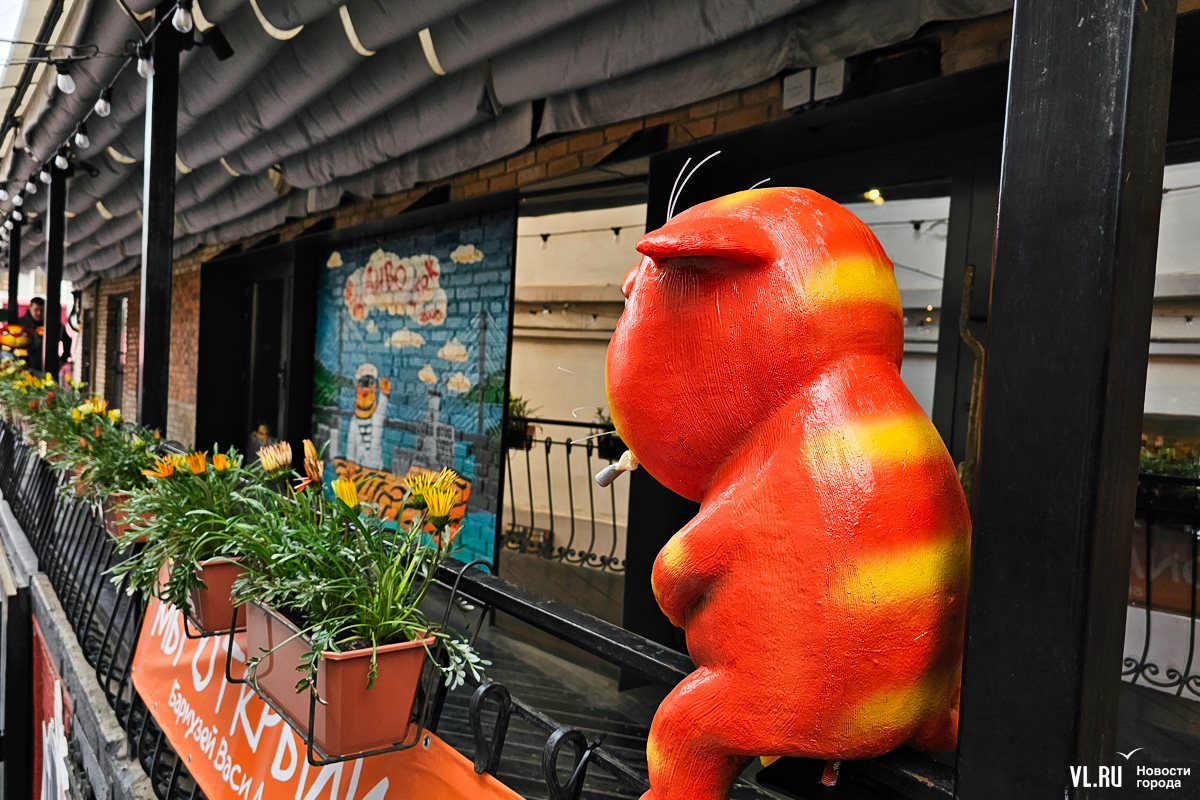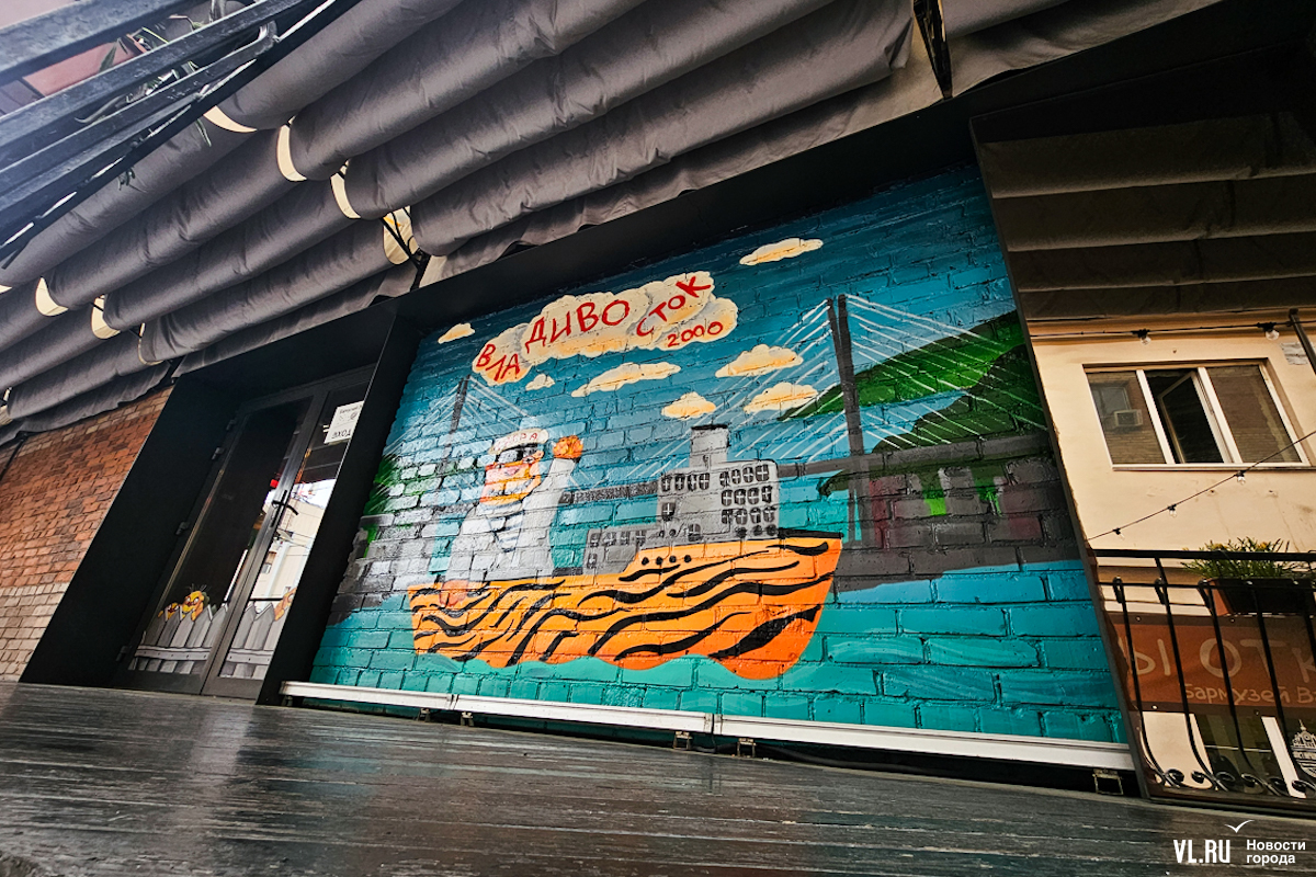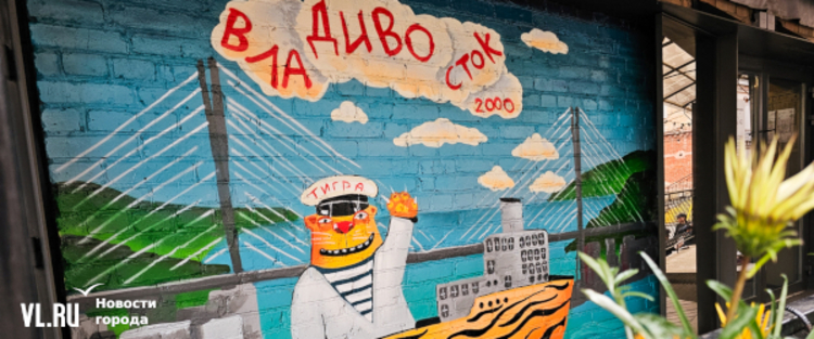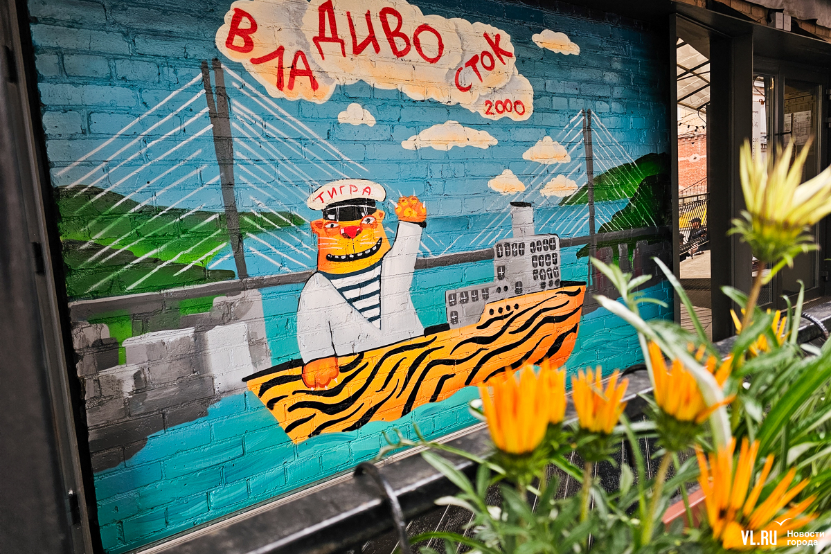Художник Вася Ложкин, автор знаменитых рыжих котов, написал картину, посвящённую нашему городу. На ней – Золотой мост, кот-капитан и надпись «ВлаДИВОсток 2000». Мурал на основе этого сюжета, как и оригинал картины, можно увидеть в Старом дворике ГУМа.