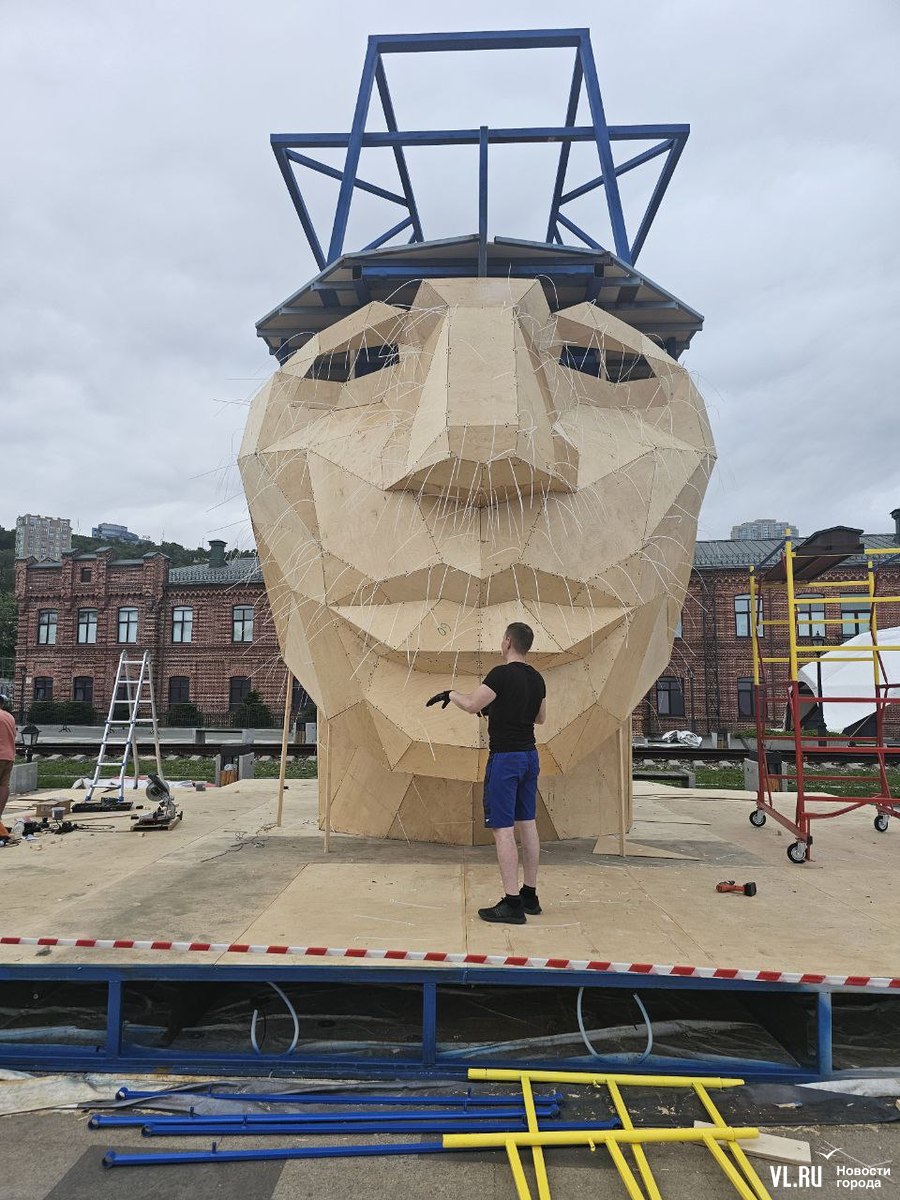 В соцсетях жители города уже обратили внимание на строящуюся гигантскую деревянную голову. Пока её накрыли тентом и прямо под ним начали обшивать белым материалом. Голову организаторы называют арт-объектом, там будут стоять мультимедийное оборудование и лаунж-зона, но подробности пока не раскрываются.