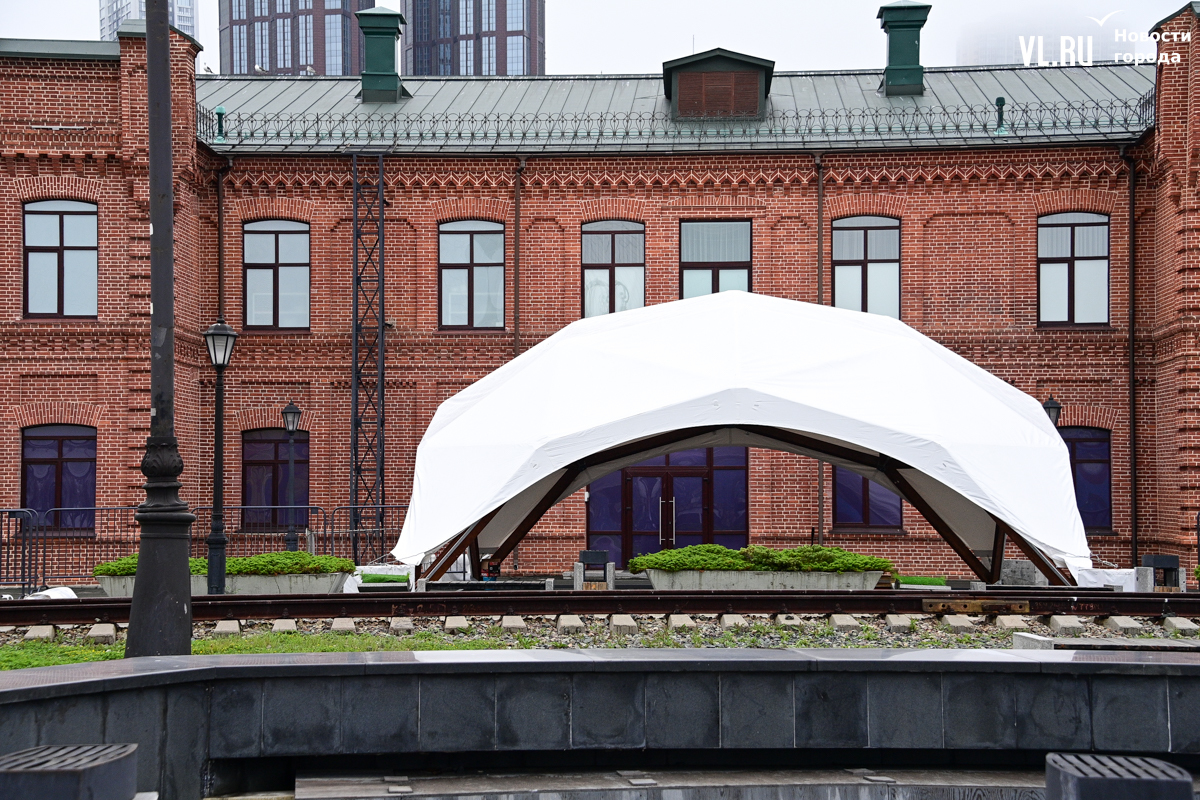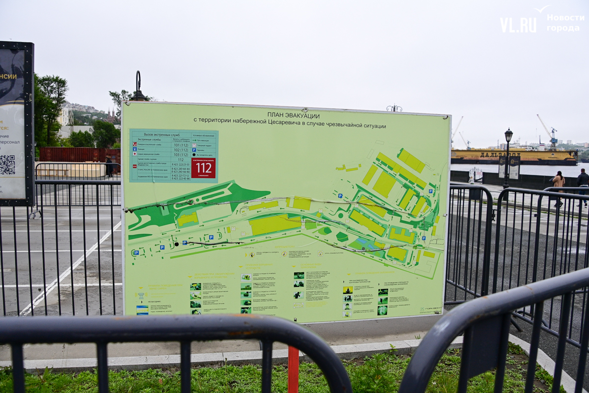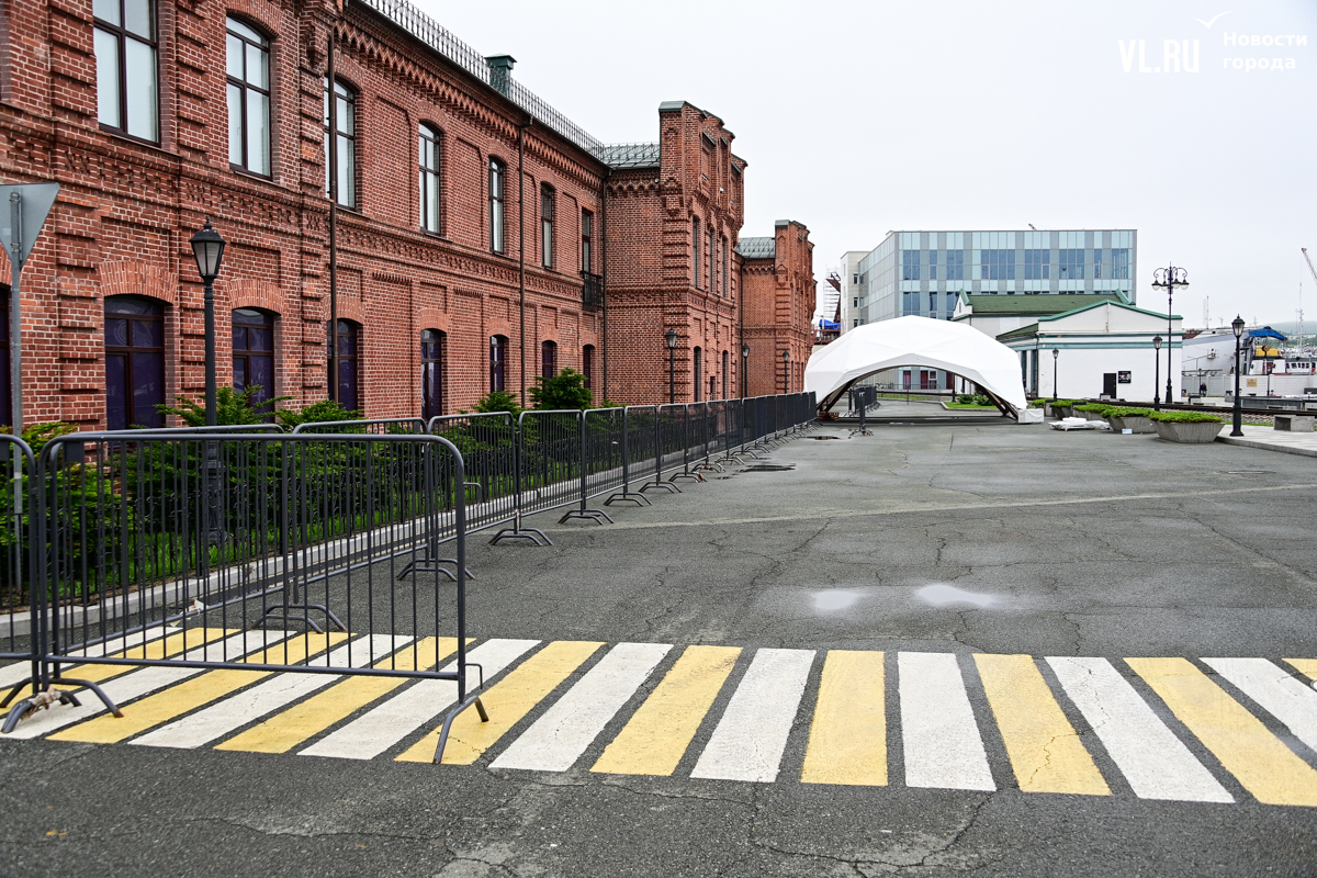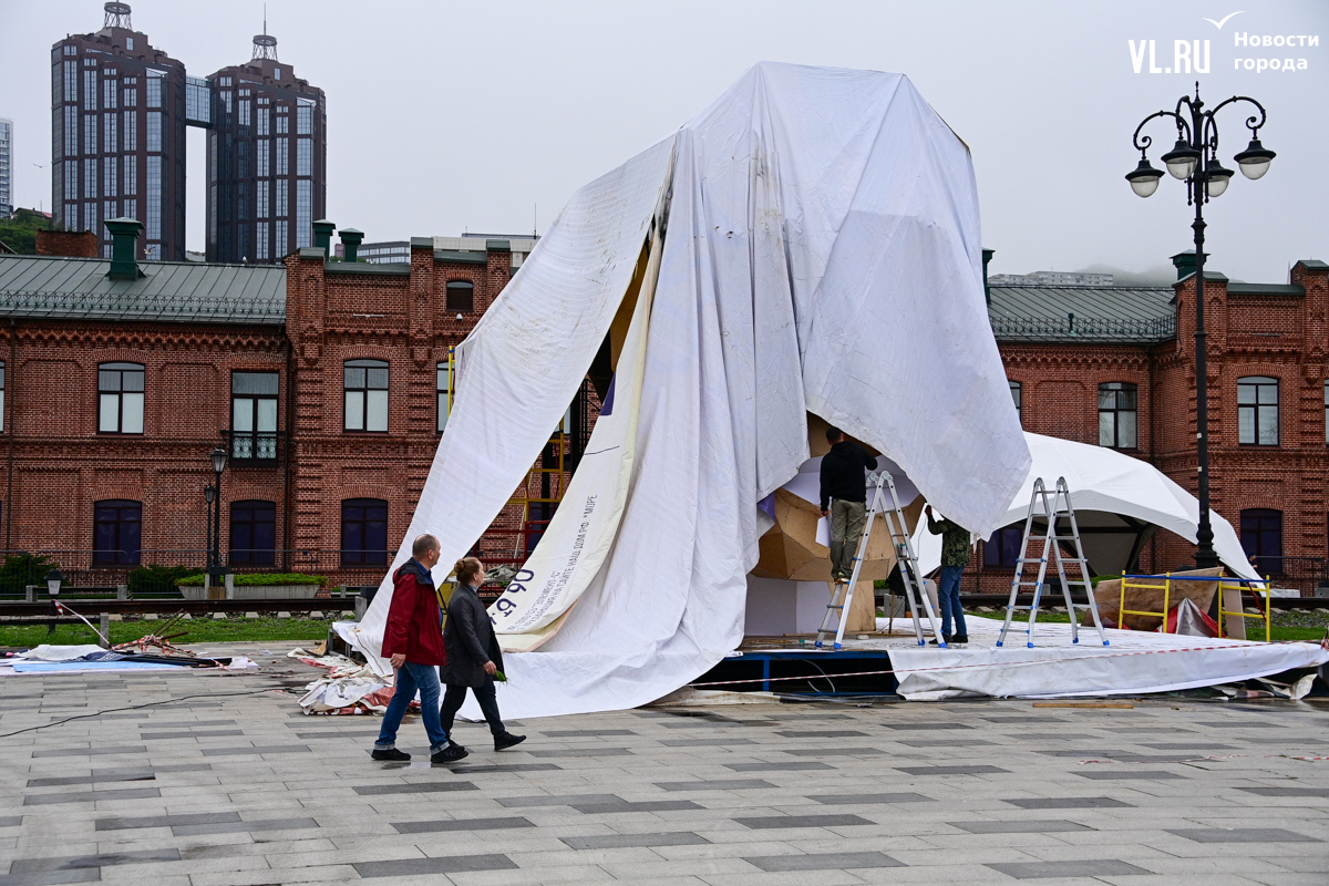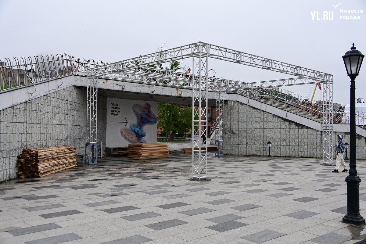 Начали устанавливать свои площадки партнёры мероприятия – строятся Сбербанк, ВКонтакте со своими стендами (пока это просто металлические конструкции рядом с детской площадкой), Туристический информационный центр (они откроют фуд-корт и шатёр с мастер-классами, который пока выглядит как арка, обтянутая белым тентом) – в этой локации 28, 29, 30 июня и 6 июля пройдут мастер-классы в рамках фестиваля гребешка, а с 1 по 5 июля будет работать лекторий в рамках Дня Приморья. Рядом с парковкой на входе устанавливают деревянные конструкции – здесь будет работать зона «уличная классика» для экстремальных видов спорта (скейтбординга, трикинга, упражнений на турниках).