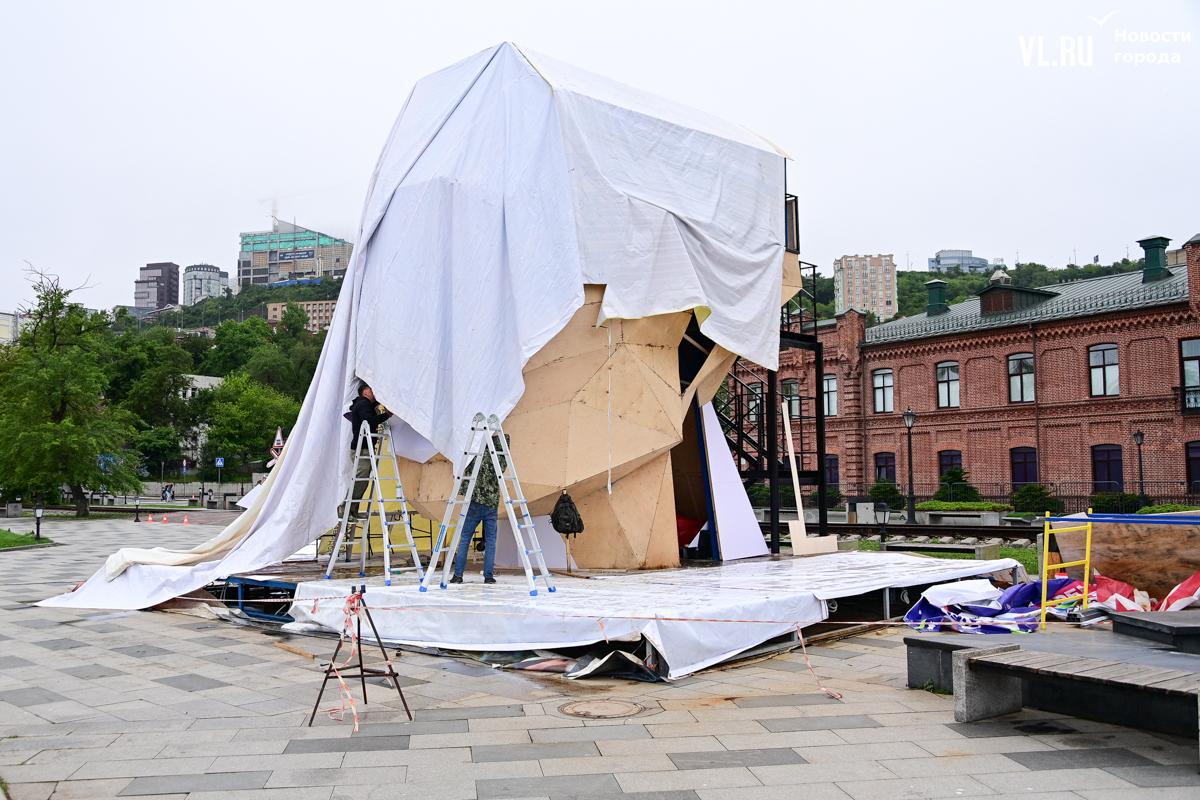 Во Владивостоке на набережной Цесаревича, которая станет основной площадкой празднования Дня и даже Недели молодёжи, уже начали выстраивать площадки для будущего мероприятия. На парковке почти готова главная сцена, где выступят звёзды – Mia Boyka и «Дискотека Авария». А самым заметным арт-объектом стала огромная голова напротив сцены, которая пока накрыта тентом – так её прячут от дождя. У головы установят мультимедийное оборудование и оборудуют лаунж-зону. Активно строятся фуд-корт и зоны лекториев, которые будут работать в том числе вечером на протяжении всей недели с 28 июня по 6 июля. Вместе с развлекательными площадками выстраиваются ограждения и пункты досмотра с двух концов набережной, скоро там появятся рамки металлоискателей.