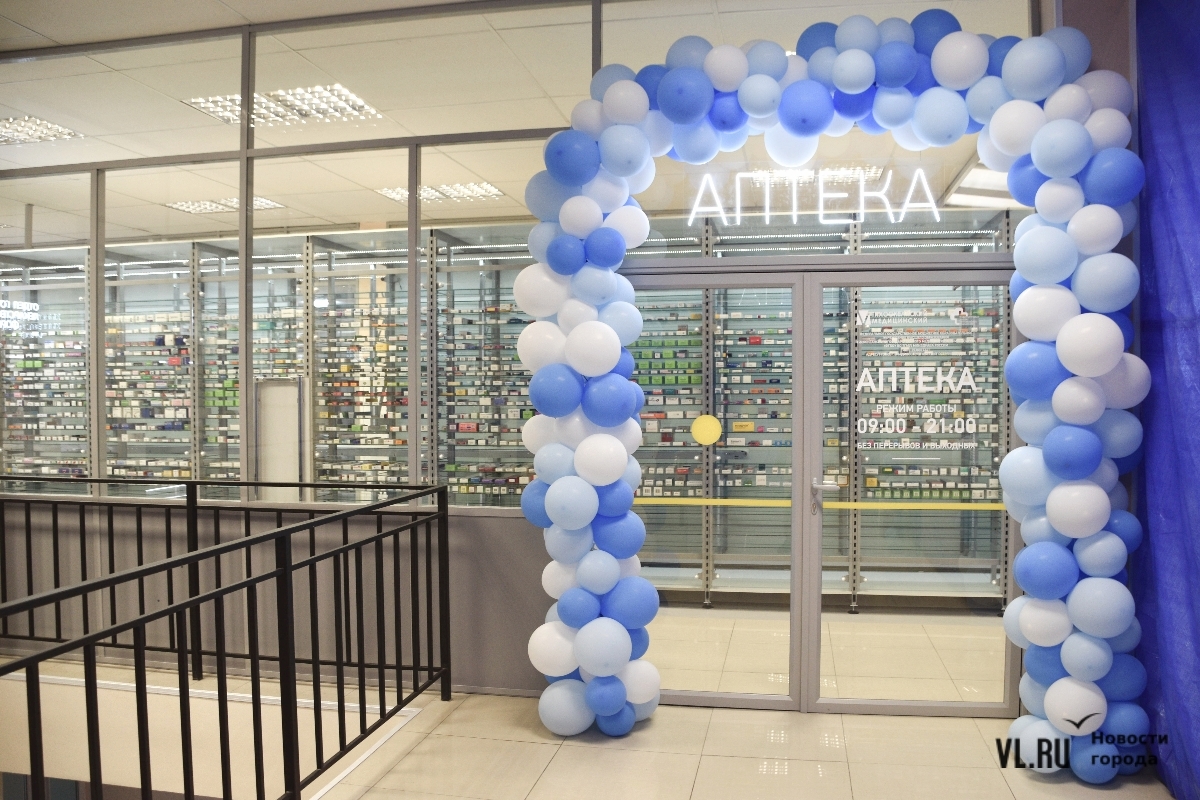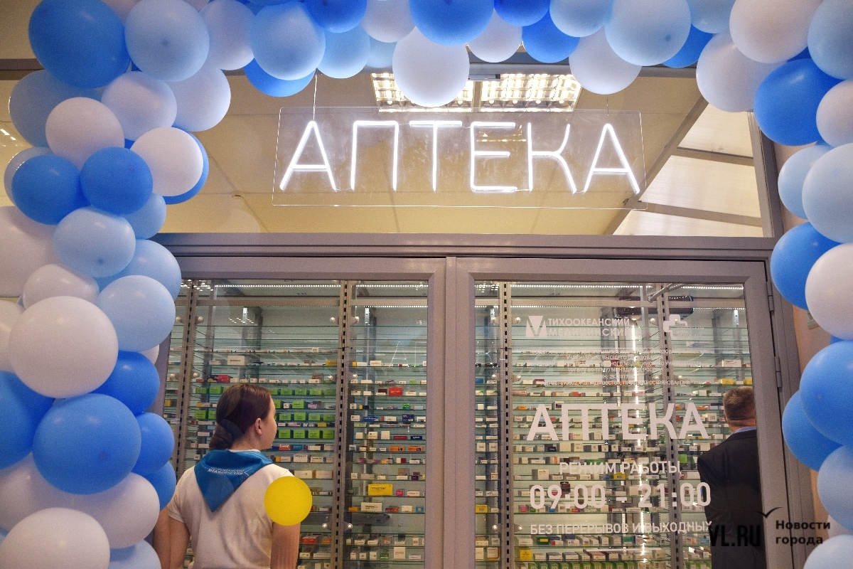 Новая аптека – сразу за главным корпусом, по Партизанскому проспекту, 33а. Хотя она называется университетской, но принимает всех без исключения. Она уже три недели с 09:00 до 21:00 работает в тестовом режиме, но именно сегодня глава Владивостока Константин Шестаков перерезал символическую ленточку.