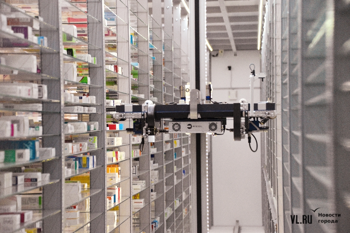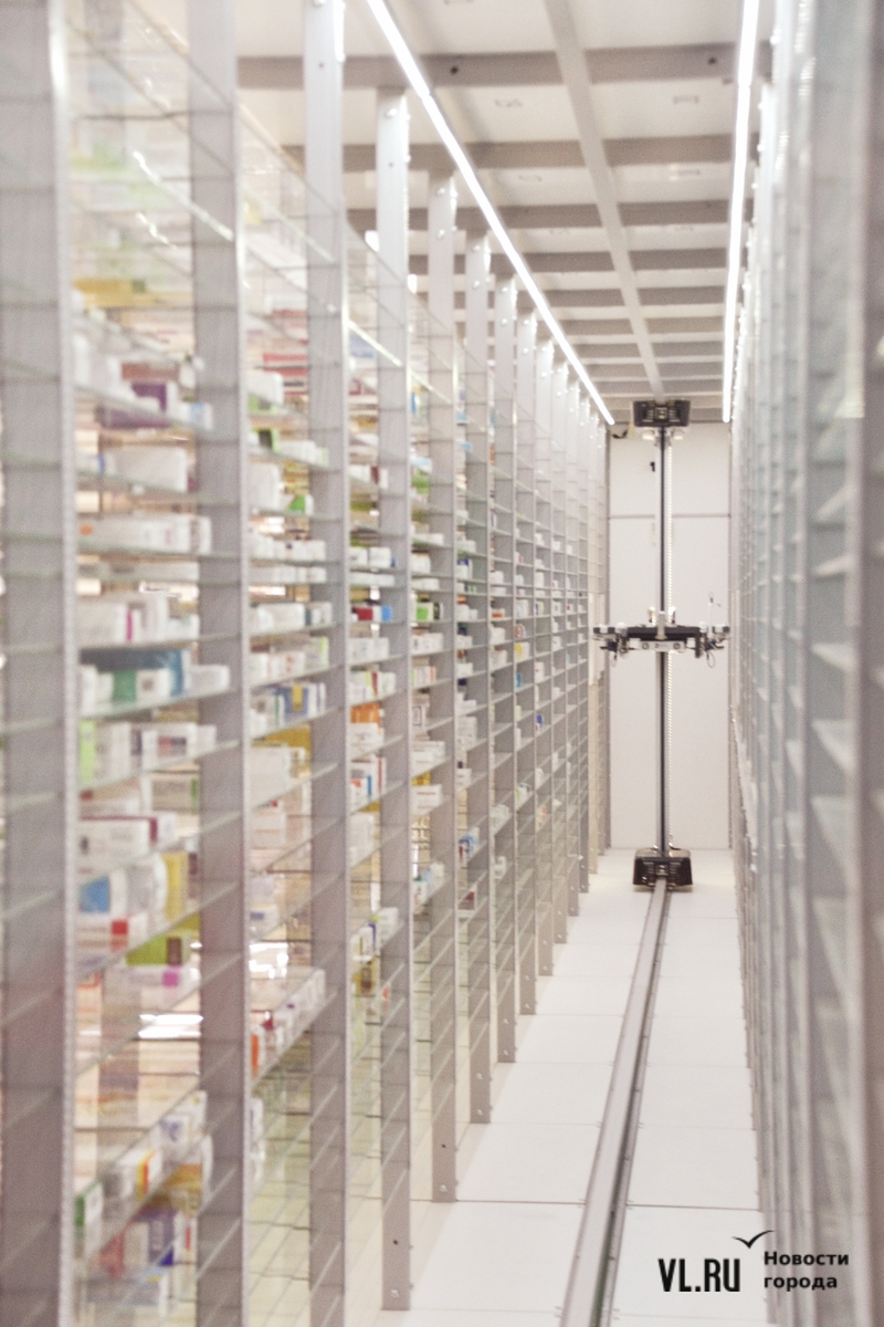 «Мы задействуем не площадь – мы задействуем объём, – говорит проректор по развитию Тихоокеанского медицинского университета Сергей Лебедев. – Это называется плотность размещения. В обычной аптеке на такую высоту и такие узенькие полочки очень сложно что-то разместить. А робот может, причём огромное количество – его «руки» двигаются и по вертикальной оси. Для центров массовой выдачи и продажи лекарств это достоинство очень важно».