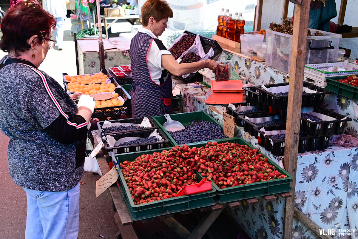 «Ягоды в этом году мало. Снега почти не было. Расторговываемся, и всё на этом. Сейчас пойдёт лесная жимолость, её везут в основном из Кавалерово. Потом чёрная смородина, крыжовник, малина, а позже – ремонтантная малина. Красная смородина уже начинается».