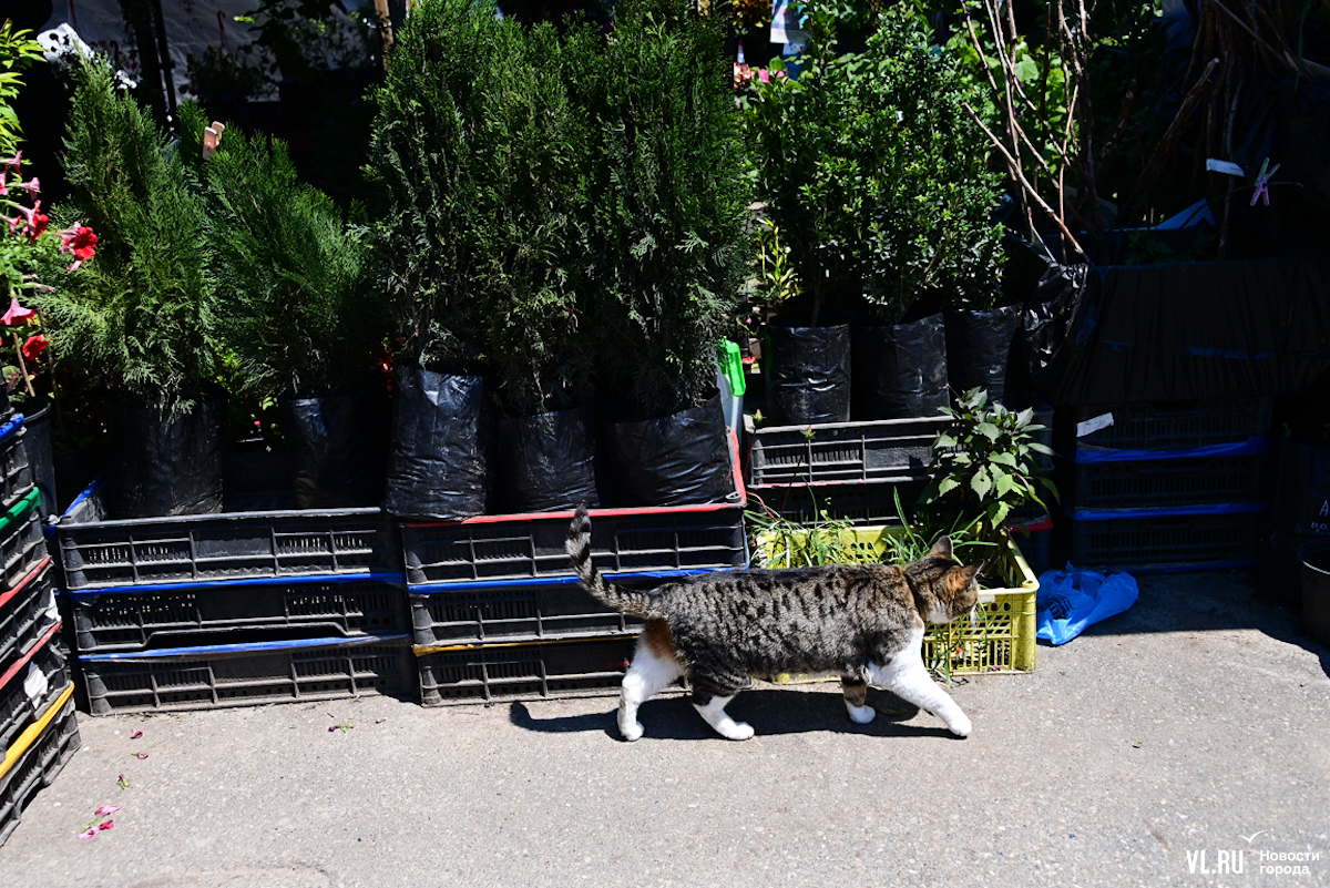 Многочисленные прилавки неспешно обходит кошка Ася. У неё ошейник от блох, и, судя по комплекции, она лучший друг торгового люда: