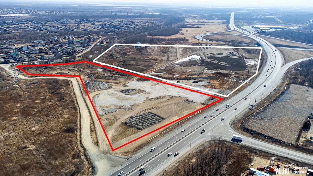 Речь идёт об участке 25:10:011400:222. Там планировали сначала открыть дилерский центр спецтехники, потом – авторынок. Территорию разровняли, подсыпали, завезли бордюры и начали устанавливать забор.