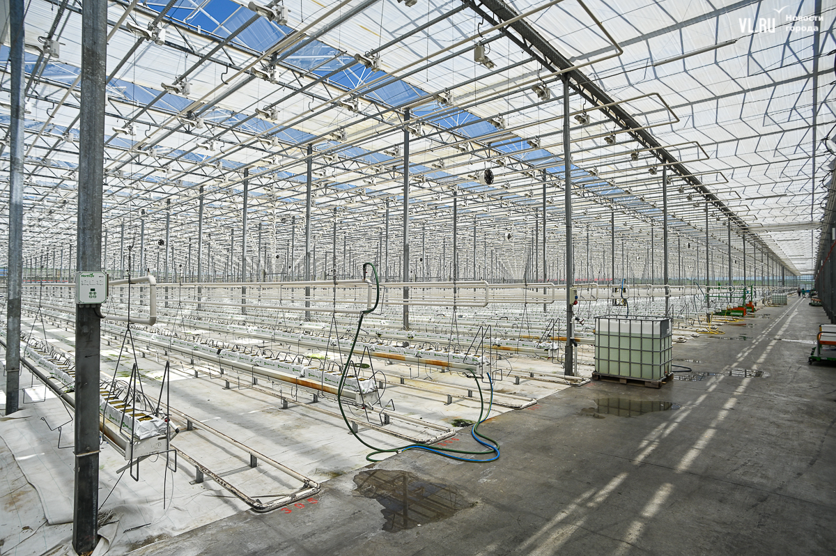 У теплицы шесть «овощных» отделений – по два огуречных и томатных, рассадное и отделение для выращивания салата. Комплекс в автоматическом режиме обогревает газовая котельная. Это – гарантия экологичности и стабильности температуры подачи теплоносителя. Для теплицы это вообще находка – отходящий газ используют в виде подкормки СО2 для растений. Главный агроном говорит, без всего этого урожайность была бы ниже. Это, кстати, первые теплицы, обеспеченные газом в Приморье. Есть растворный узел, где для растений «готовят» завтраки, обеды и ужины. У каждого отделения они свои и хранятся в огромных ёмкостях. Есть склад с холодильниками для продукции. Машины подъезжают к нему вплотную, а электропогрузчик привозит что надо и ставит куда надо. Есть автоматический цех сортировки, где часть помидоров и огурцов складывают в штучную упаковку – стаканчики и подложки.