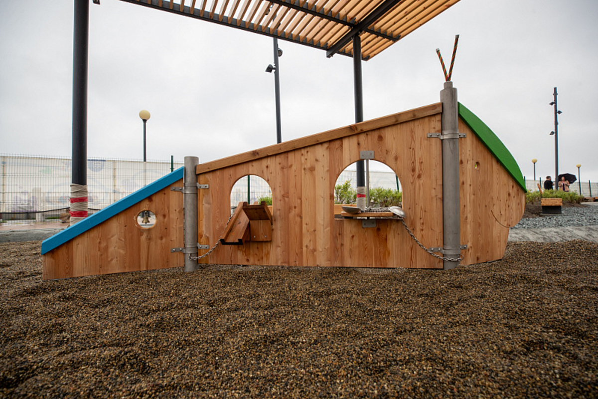 Через неделю на набережной Спортивной гавани в тестовом режиме запустят новую детскую площадку, а 20 июля проведут торжественное открытие с аниматорами и мороженым. Площадка выполнена из камня, дерева, гальки и песка – при её проектировании архитекторы вдохновлялись образом Милоградовского водопада и советовались с детским психологом.
