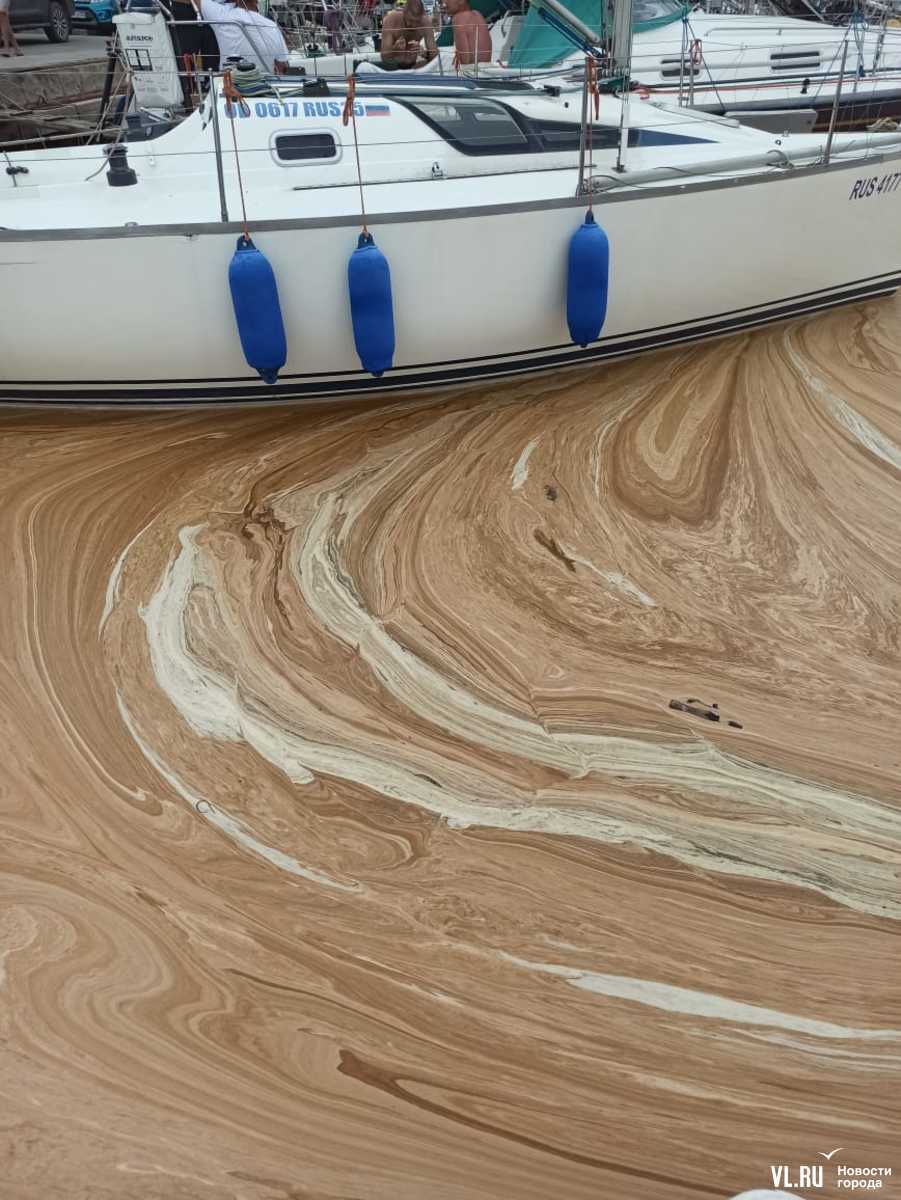 Бухта Фёдорова и акватория яхт-клуба «Семь футов» стали своего рода «сборником» для пыльцовой пены. Она толстым слоем лежит на поверхности воды и образует между корпусами яхт и катеров причудливые разводы, по своему цвету, действительно, напоминающие кофе с молоком.