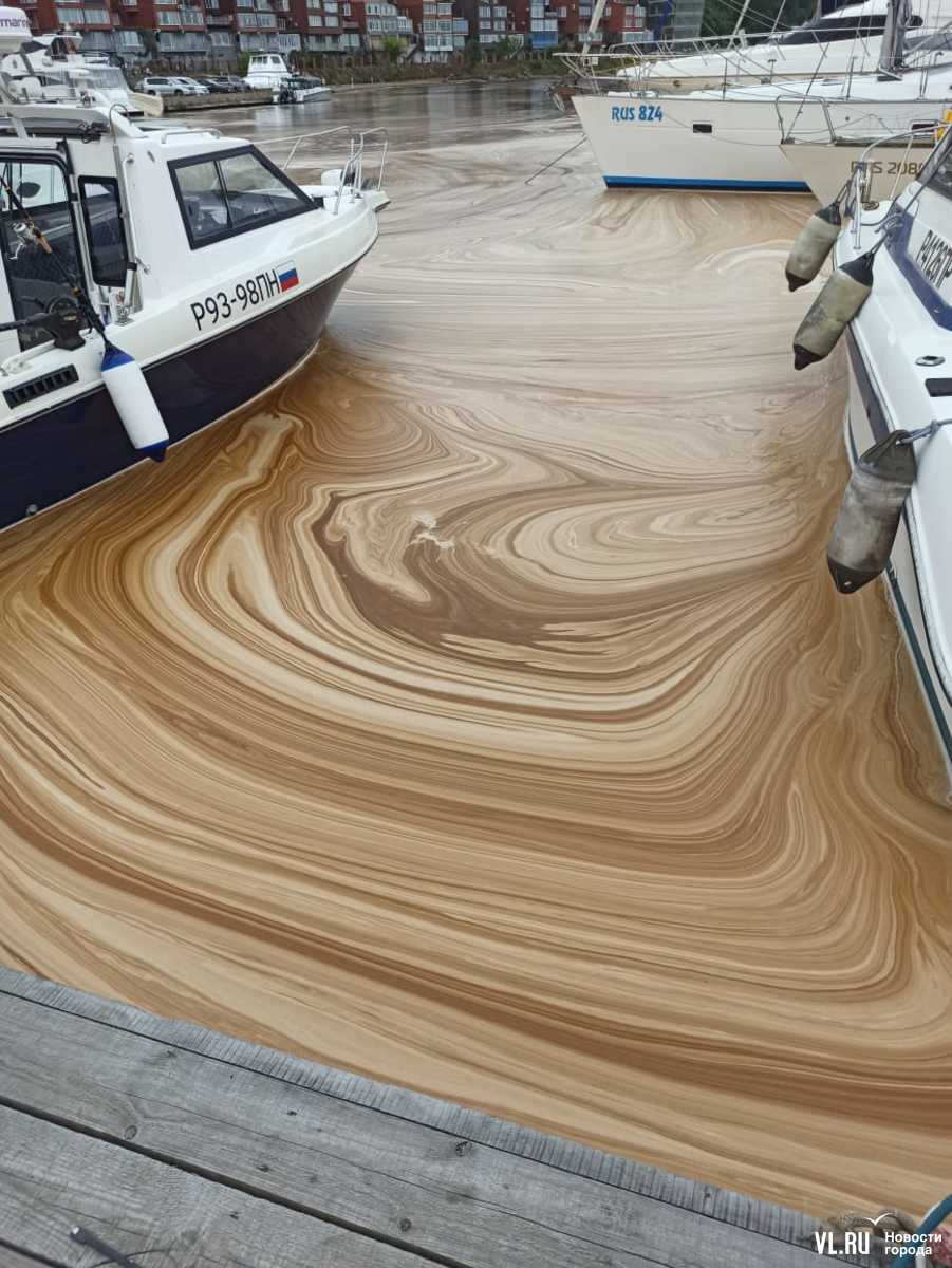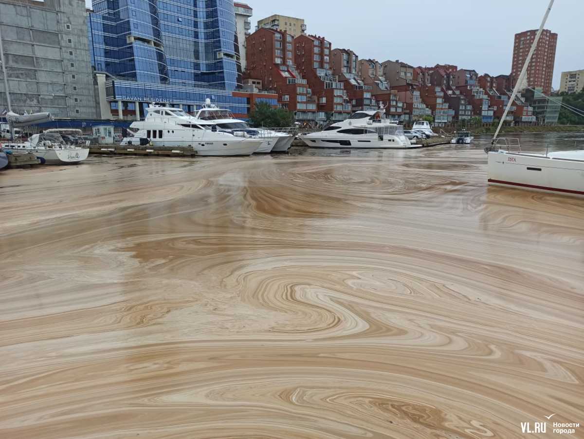 Молочно-коричневая пена, появившаяся вчера у берегов Владивостока, сегодня продолжает «украшать» акваторию Амурского залива. По данным Росприроднадзора, это пыльца, которую в большом количестве принесло с сопок после сильных осадков. В некоторых местах она образует красивые узоры. Некоторые горожане высоко оценили столь необычный «фон» и спешат его запечатлеть на фото.