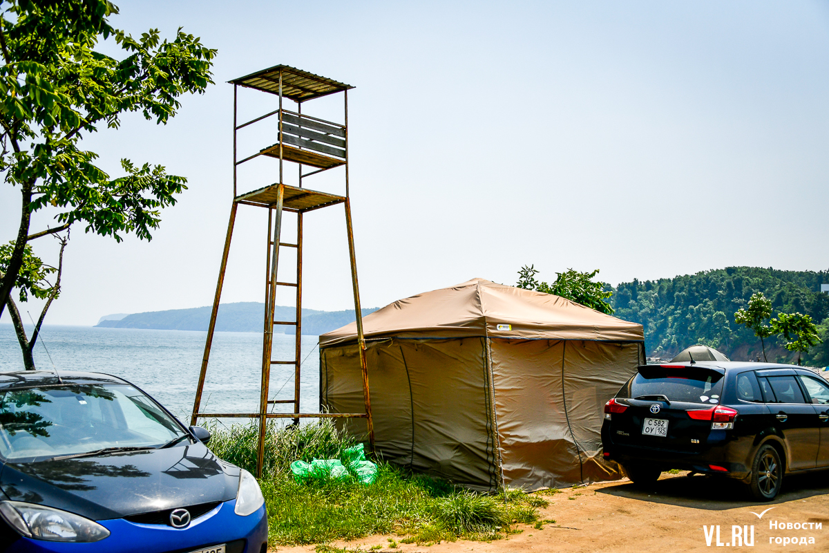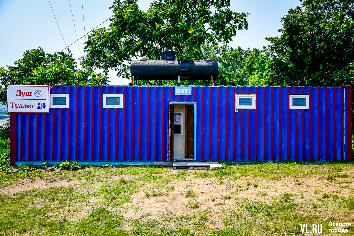 Все рекомендованные к купанию места находятся на островах, и Аякс не исключение – пляж базируется на Русском, недалеко от кампуса ДВФУ. Пока пляж немногим отличается от дикого: узкая не грейдированная грунтовая дорога, несколько раздевалок из профлиста, пустая спасательная вышка и туалет с душем, оборудованные в грузовом контейнере. Туалет стоит 50 рублей, душ – 150.