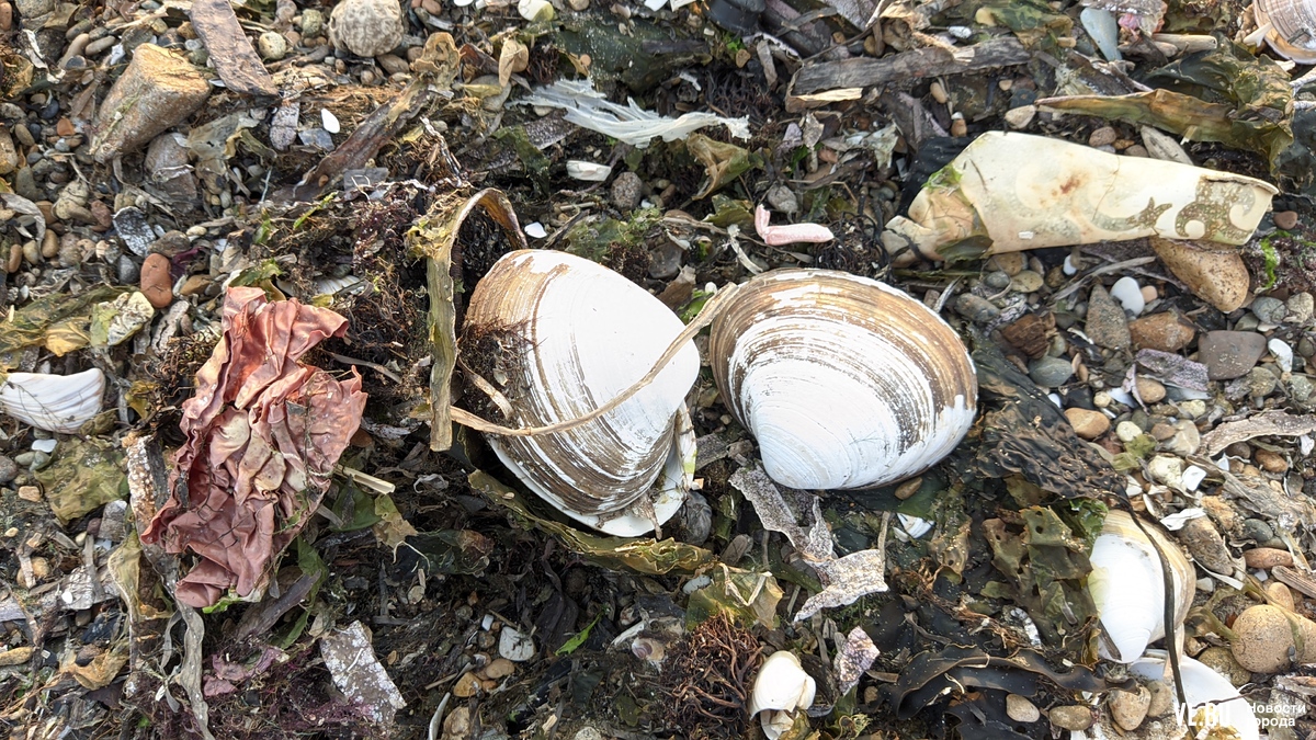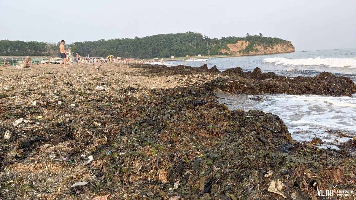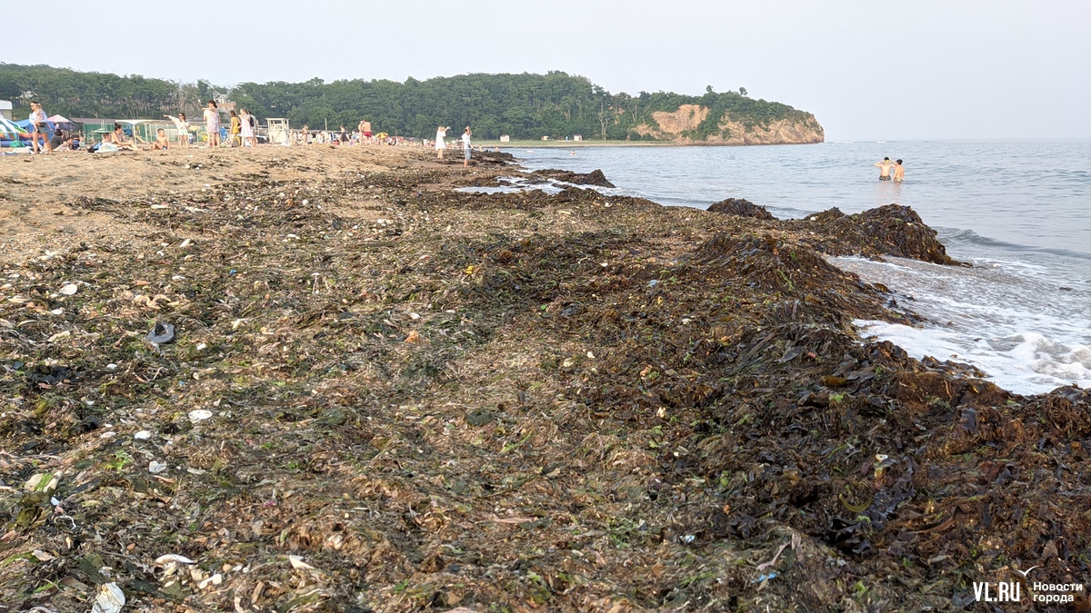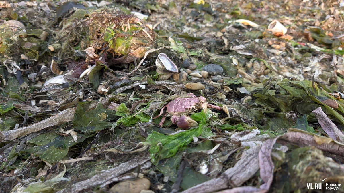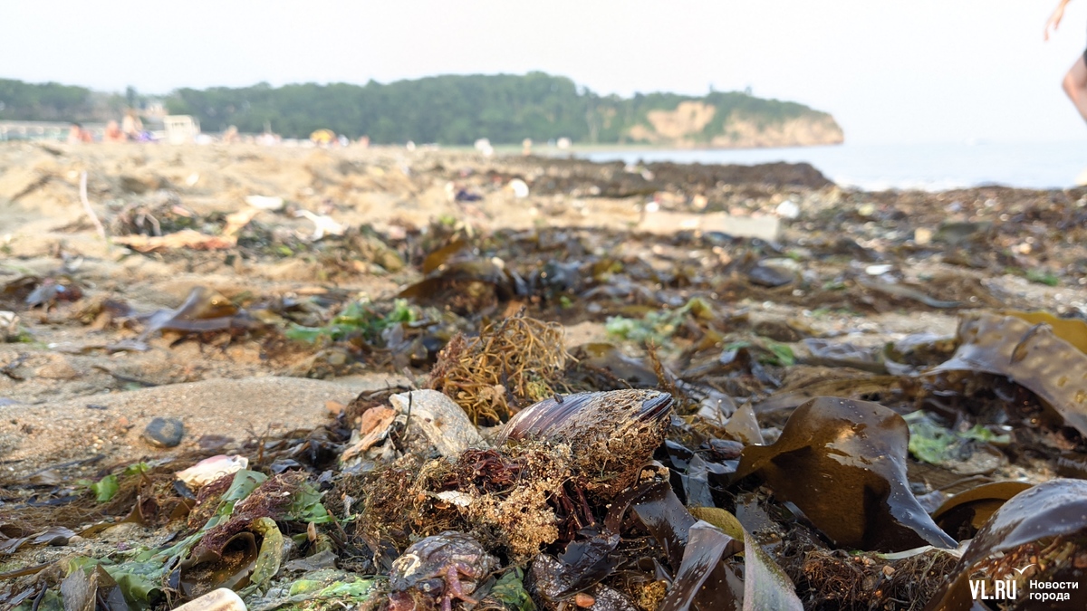 Кучи гребешка, крабов и мидий выбросило на побережье бухты Лазурной. Сегодня, 9 июля, их активно подбирали гости Шаморы, но и к вечеру на пляже ещё можно было найти немало погибших морских обитателей вперемешку с выброшенной на берег травой. Учёные предполагают разные причины массовой гибели гидробионтов, среди них – и цветение микроводоросли, загрязнившей акваторию Амурского залива, и просто следствие сильного прибоя. Пробы воды, по словам исследователей, брать бессмысленно – в ней уже никого не найдёшь, а вот осмотреть животных учёные собираются, и в этом им поможет корреспондент Новостей VL.ru.