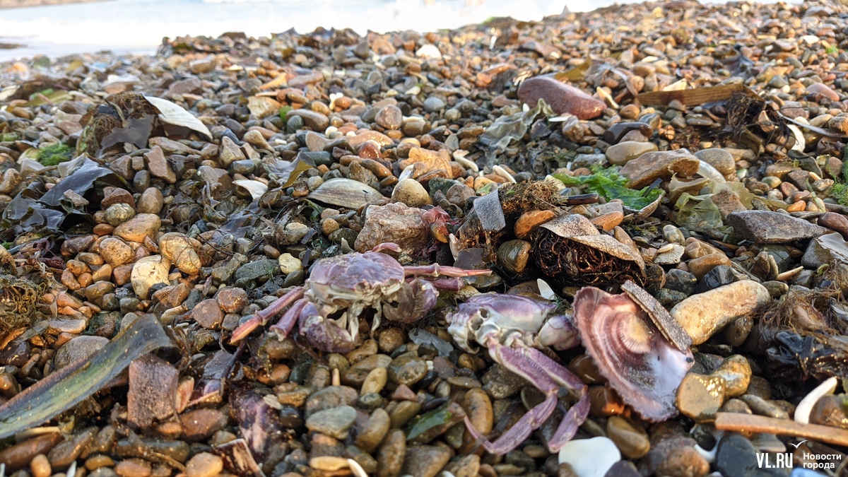 На место выехал фотокорреспондент Новостей VL.ru. Он отберёт в пакеты биоматериал, который ещё не успели забрать желающие отведать бесплатных морепродуктов, и отправит учёным на экспертизу. По её результатам будет понятно, стало ли цветение динофлагеллятов причиной гибели моллюсков и крабов.