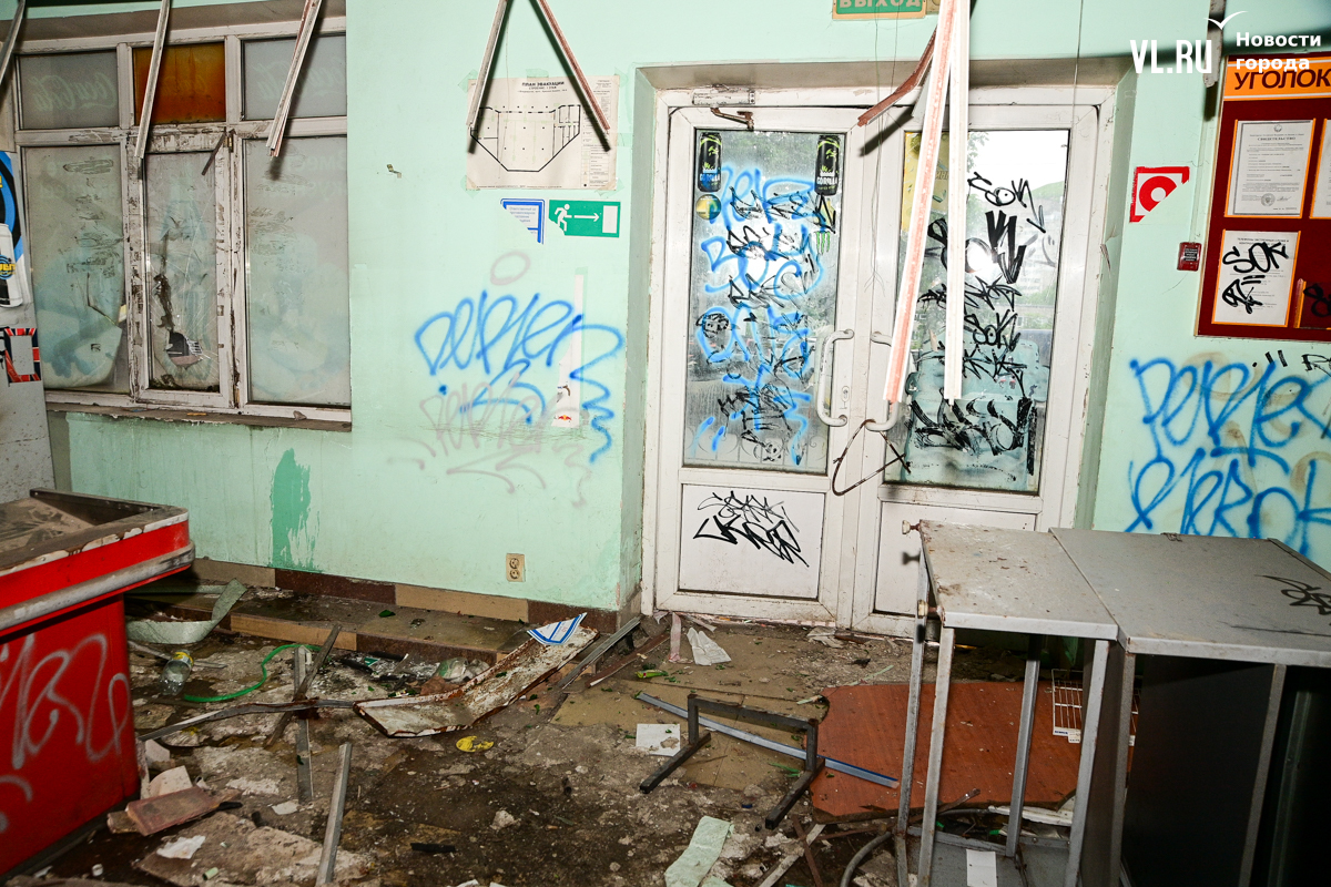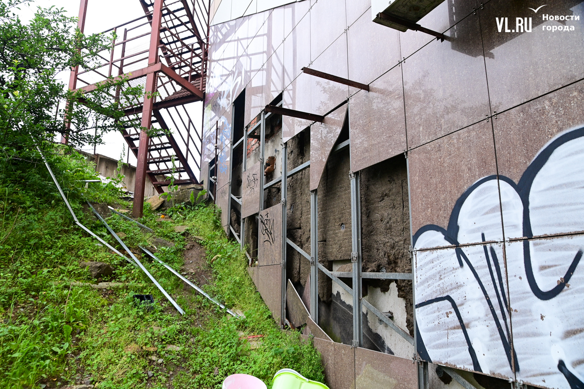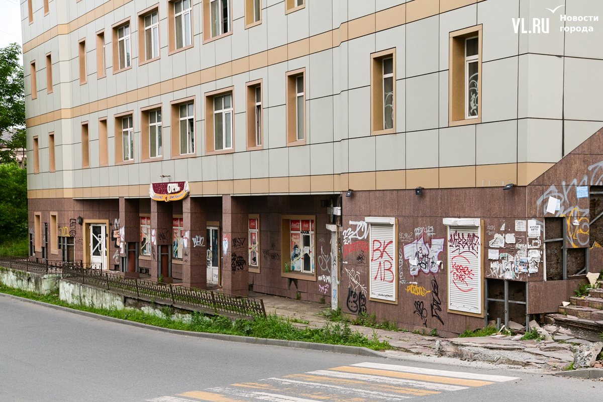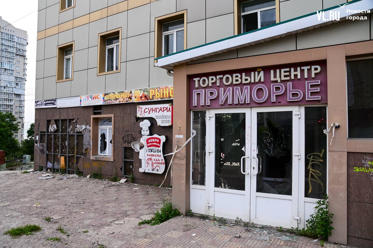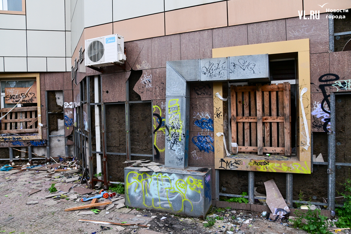 Закрытый 9 лет назад ТЦ «Приморье» во Владивостоке продолжает разрушаться – в нескольких местах упала облицовочная плитка, а стены и двери разрисованы многочисленными тегами граффитчиков. Доступ на объект свободный, поэтому место облюбовали вандалы и бездомные. Сотрудники полиции считают, что бывший ТЦ до сноса следует хотя бы капитально огородить забором, а в пресс-службе мэрии уточнили, что его скоро снесут – заниматься этим будет новый арендатор земли.