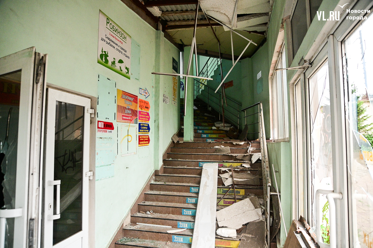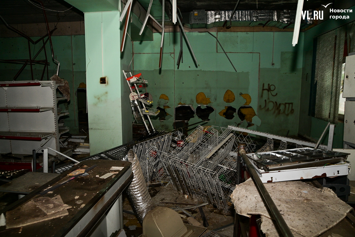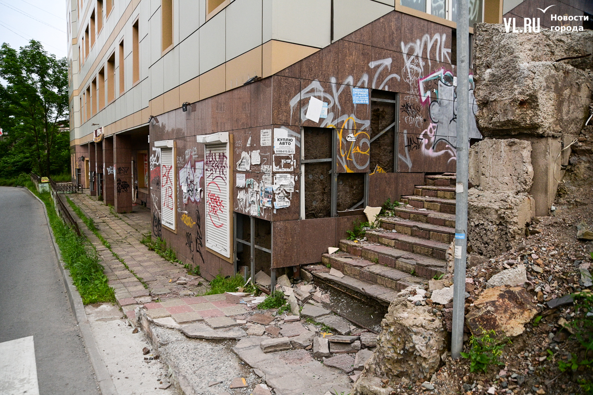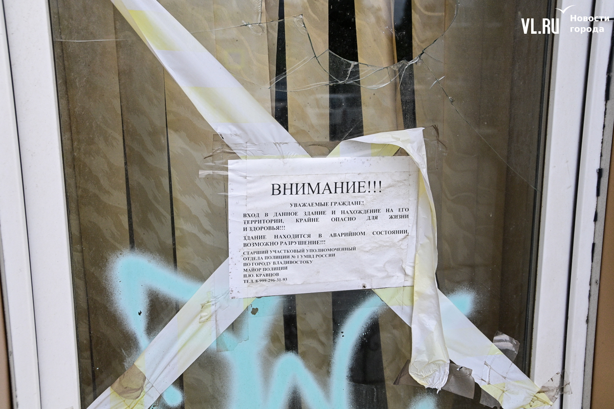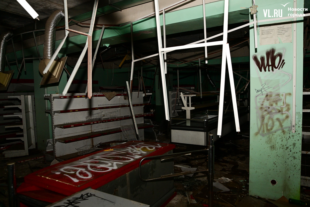 Закрытый 9 лет назад ТЦ «Приморье» во Владивостоке продолжает разрушаться – в нескольких местах упала облицовочная плитка, а стены и двери разрисованы многочисленными тегами граффитчиков. Доступ на объект свободный, поэтому место облюбовали вандалы и бездомные. Сотрудники полиции считают, что бывший ТЦ до сноса следует хотя бы капитально огородить забором, а в пресс-службе мэрии уточнили, что его скоро снесут – заниматься этим будет новый арендатор земли.