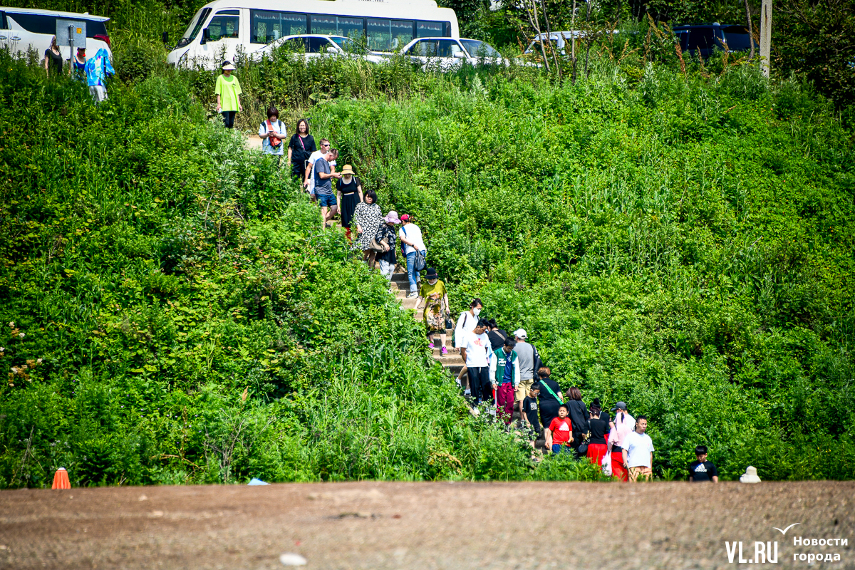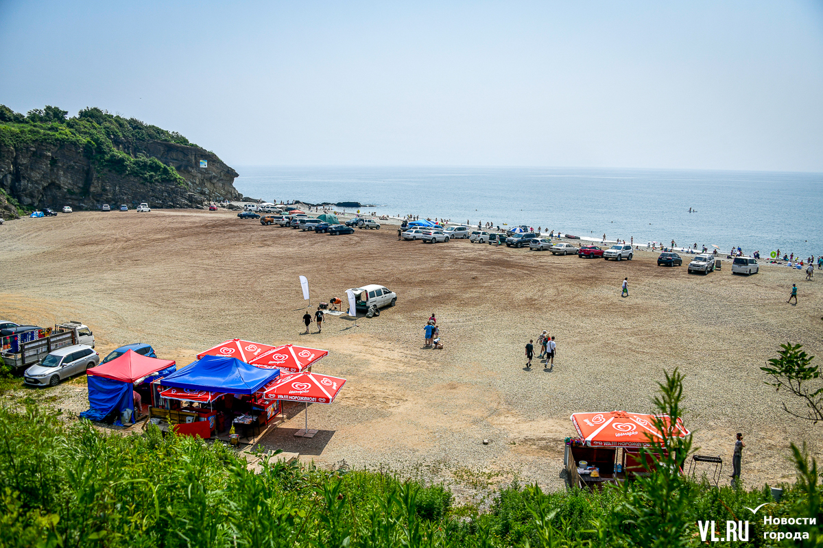 Бухта Стеклянная в пригороде Владивостока – место известное, туристически привлекательное, но стыдное. Парковка стихийная, в основном вдоль дороги. Спуск к пляжу для автомобилей не для слабонервных, да и лестница для пешеходов тоже. У края пляжа стоит несколько торговых точек – напитки, мороженое, шашлыки. На вопрос, на каких основаниях весёлые южные парни ведут тут торговлю, отвечают: «Людей кормим! Плохого ничего не делаем. Мусор перед выходными вывозим!»