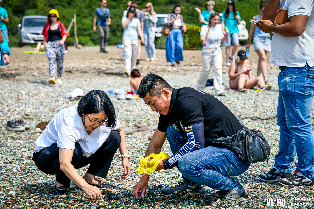 «Мы волонтёры и путешественники, – говорят женщины. – Жаль, что объявление увидели только вчера, всем разослали, по всем чатам отправили, но пока больше никого, кроме нас, нет. Конечно, хочется, чтобы эта красивая бухта сохранилась. Эти стёкла особенно красивые, когда мокрые, после дождя, например. И хочется, чтобы было чисто, аккуратно, чтобы люди приезжали и смотрели. Мы же здесь отдыхаем, это наша природа. Мы с «Женьшенем» недавно ездили в Белоруссию – там чисто, красота! Почему мы такого сделать не можем? Это же наше, его надо беречь. К экологическим акциям мы всегда присоединяемся и мусор вывозим отовсюду, где путешествуем. А таких пляжей всего два в мире – в Калифорнии и у нас. Она же нас тоже поднимает в рейтинге туристических мест. Единственное – китайцы всё вывозят, несмотря на объявление. Считаем, что сегодня произошло действительно значимое событие, когда стёкла досыпали».