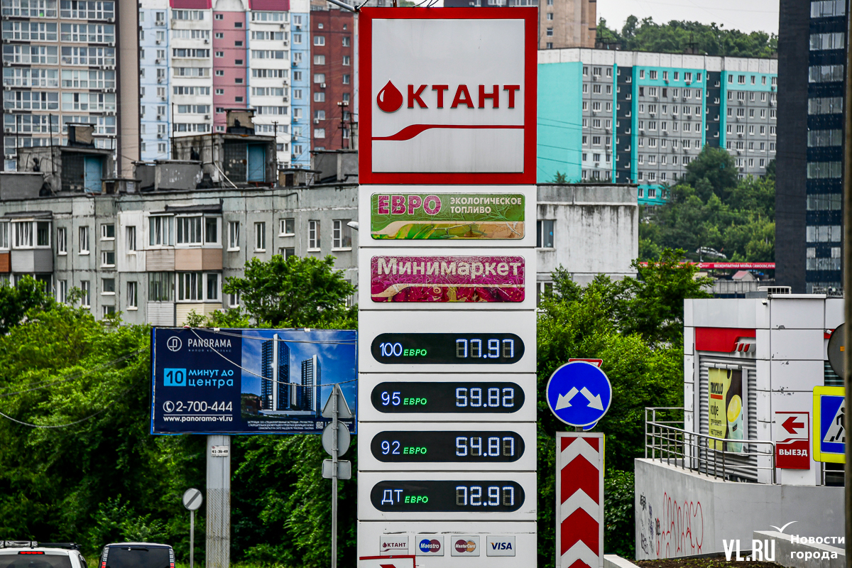 На сети «Октант» на 2,6 рубля, или на 3,4%, подешевело дизельное топливо. А вот бензин подорожал. Правда, АИ-92 прибавил ровно три копейки, зато АИ-95 стал дороже на рубль за литр. АИ-100 прибавил сразу 3,7 рубля, или почти 5%. Отметим, что во Владивостоке «сотый» бензин есть только на одной из заправок сети.