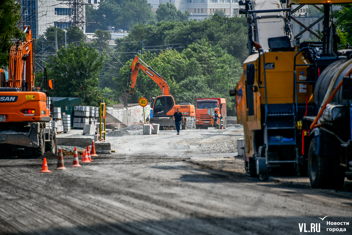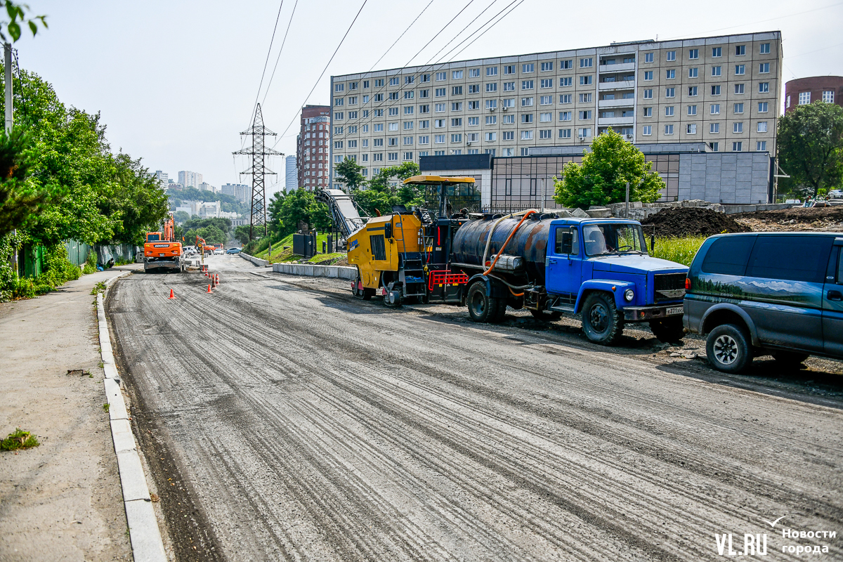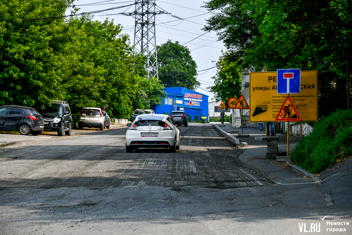 Улицу Авроровскую, где продолжаются ремонтные работы по нацпроекту, теперь будут иногда перекрывать по ночам. Администрация Владивостока опубликовала соответствующее постановление, согласно которому проезда здесь не будет с 21:00 до 7:00 до 4 августа. При этом ремонт активно ведётся и днём. Сегодня тут снимали остатки асфальта, а по улице продолжают одновременно ходить пешеходы, ездить машины и работать строители.