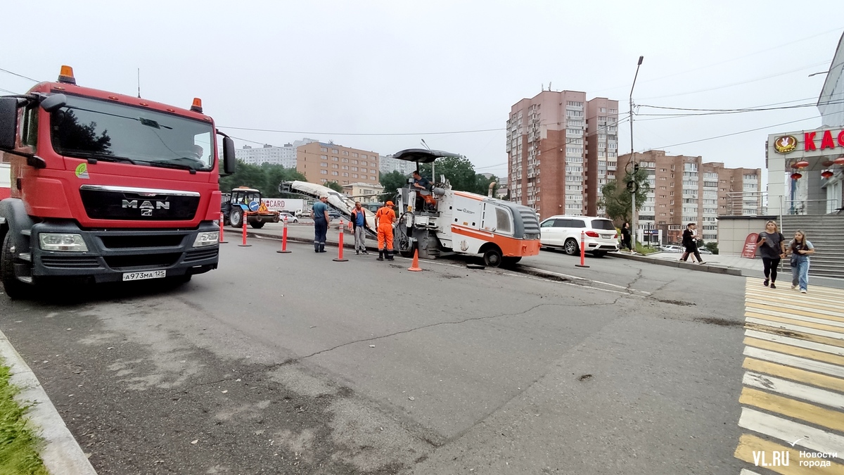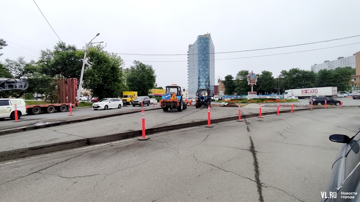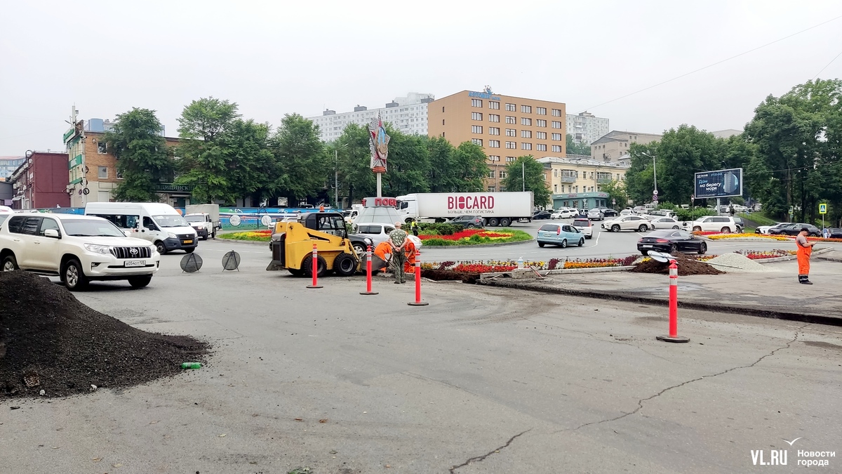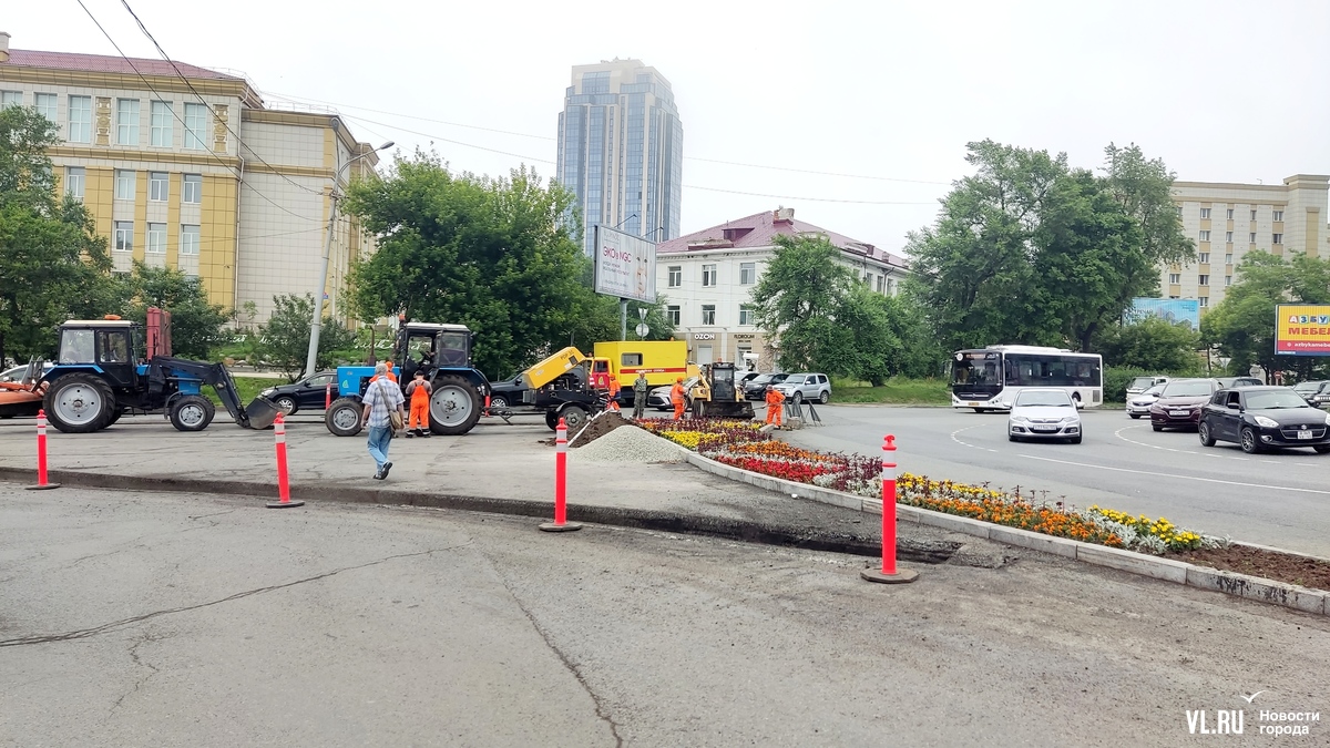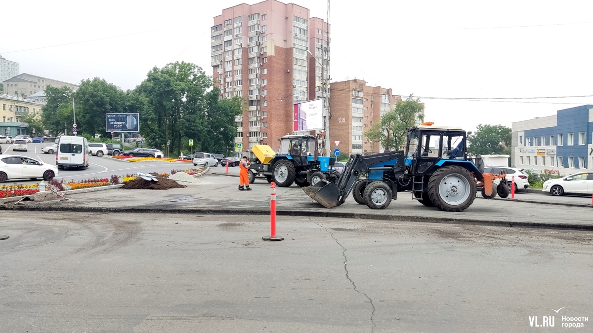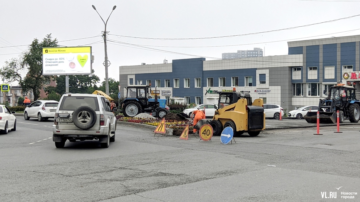 Обновлено: В мэрии Владивостока уточнили, что на Инструментальном кольце сейчас работает бригада из восьми человек, которая занимается снятием асфальтобетонного покрытия фрезой, созданием корыта под бортовой камень, установкой бортового камня с последующим бетонированием, а также асфальтированием прибордюрной полосы. Для проведения работ специалисты используют специализированную технику. Планируется, что работы будут выполнены в течение трех дней, после чего начнется обустройство клумбы. Муниципальное учреждение просит всех участников дорожного движения быть внимательными, соблюдать установленные дорожные знаки и снижать скорость на участке проведения работ.