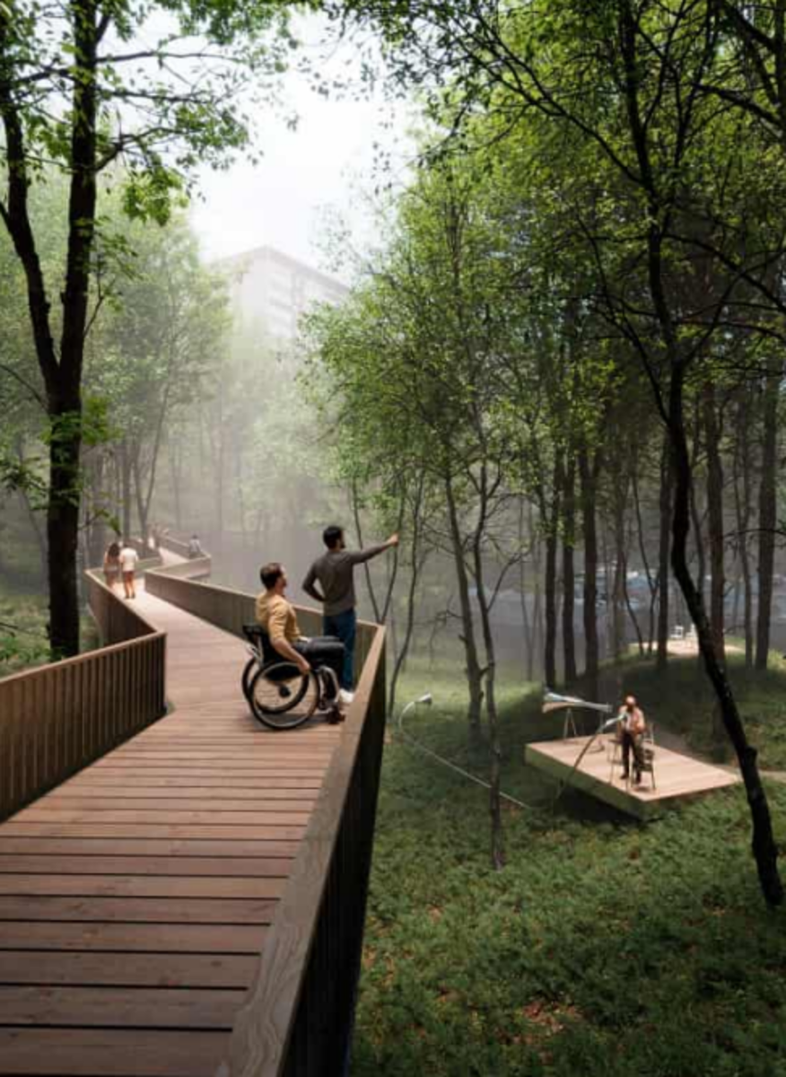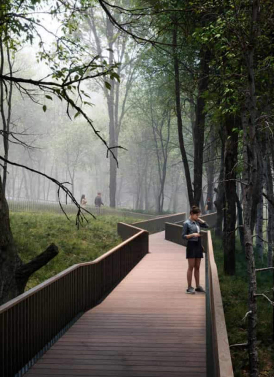 После реализации проекта территория на Кирова станет не только удобным транзитом между домами, но и комфортным и приятным местом для прогулок. Здесь обустроят смотровые площадки, проведут озеленение, установят несколько арт-объектов, скамьи и элемент «Слуховое ухо» для звуков природы, а также проведут системы освещения и видеонаблюдения.