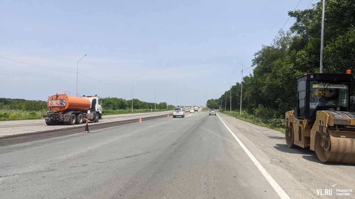 Теперь же дорожники переместились в Угловое. Точнее, работы там начались ещё вчера, параллельно со Спутником. Работы ведут в районе бывшего «Леруа Мерлен». По направлению из Владивостока к развязке отгорожена левая полоса. На ней снимают асфальт. Перед ремонтом собралась вполне закономерная пробка.