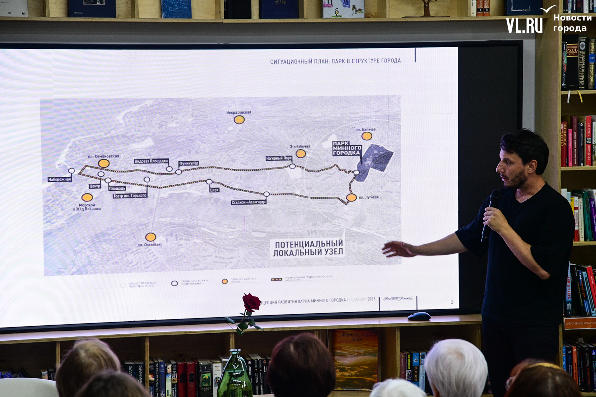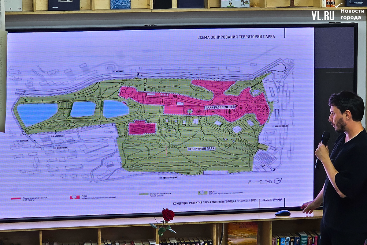 Представляя концепцию горожанам в библиотеке «БУК», авторы подчёркивают – это редакция нынешнего года, а вообще концепция в сотрудничестве и по заказу Дирекции общественных пространств Владивостока появилась ещё в 2020-м. Теперь к этой истории подключились ООО «Парк Владивосток» и «ФСК». Сооснователь «Конкрит Джангл» Феликс Машков объясняет – для города это большой объект и только сбалансированная команда может добиться результата.