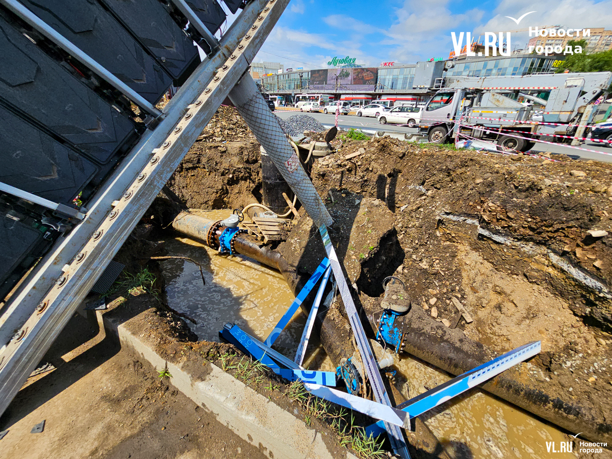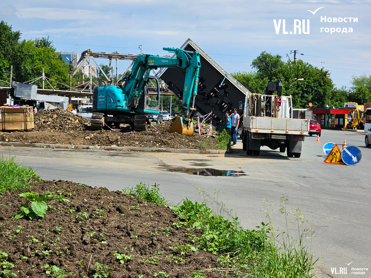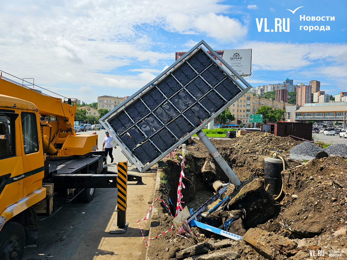 С начала июня здесь, напомним, прокладывают новые сети ливневой канализации. Раскопки идут прямо у опоры рекламной конструкции.