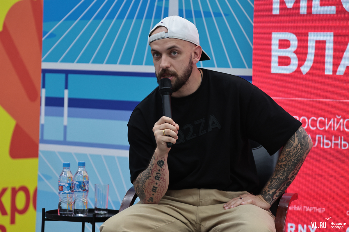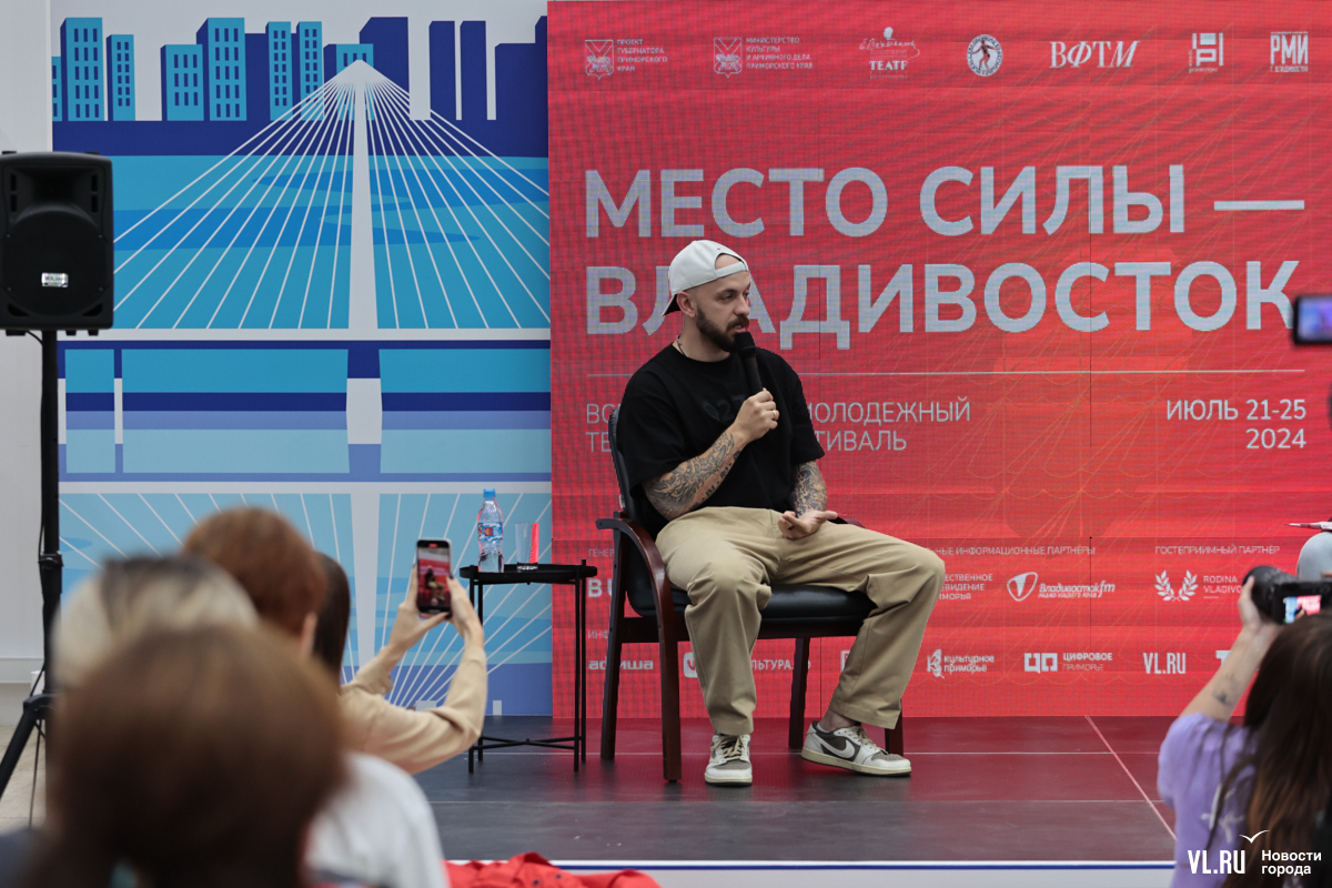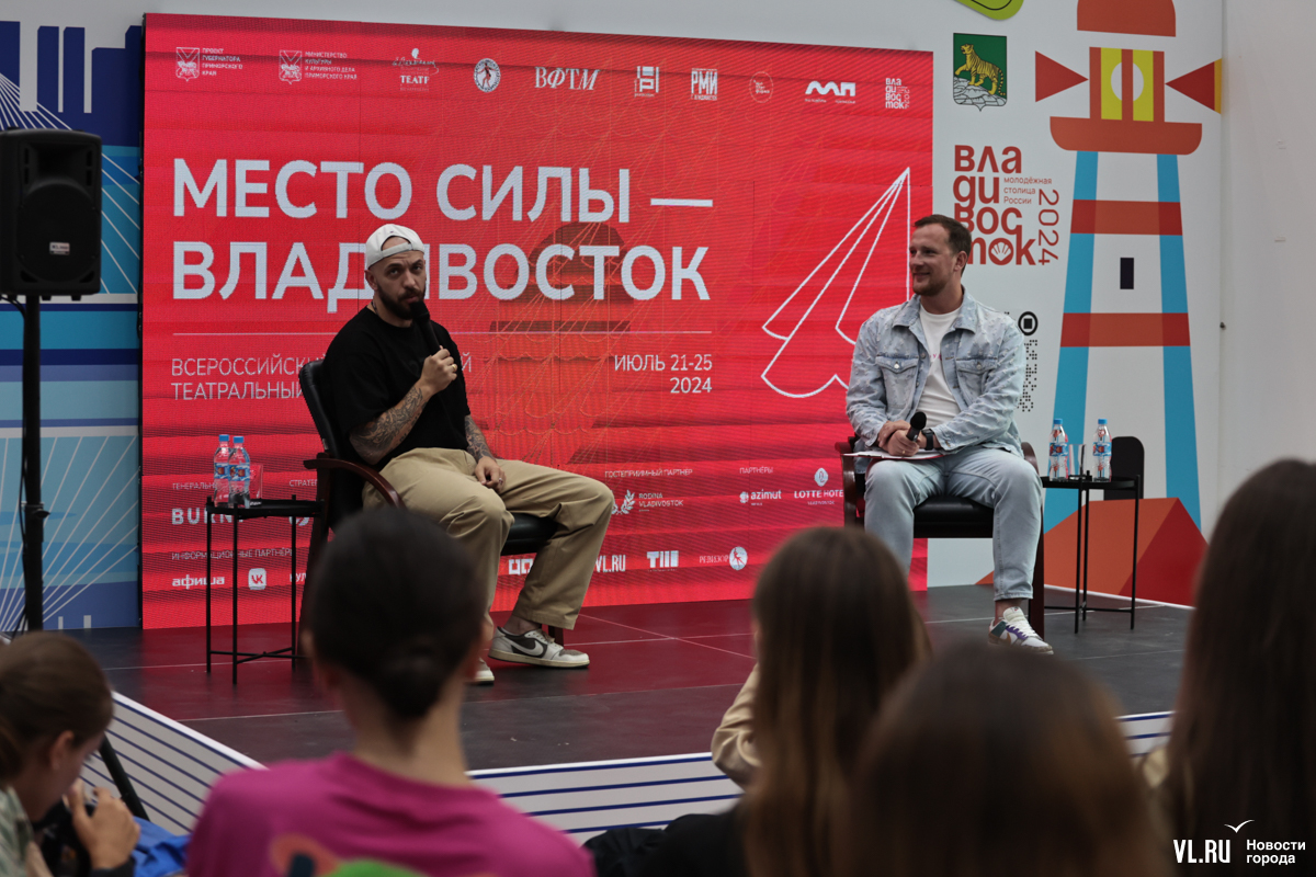 В начале встречи рэпер отметил, что рад вновь вернуться во Владивосток и стать частью всероссийского фестиваля, а также поделился своим предыдущим опытом взаимодействия с театром.