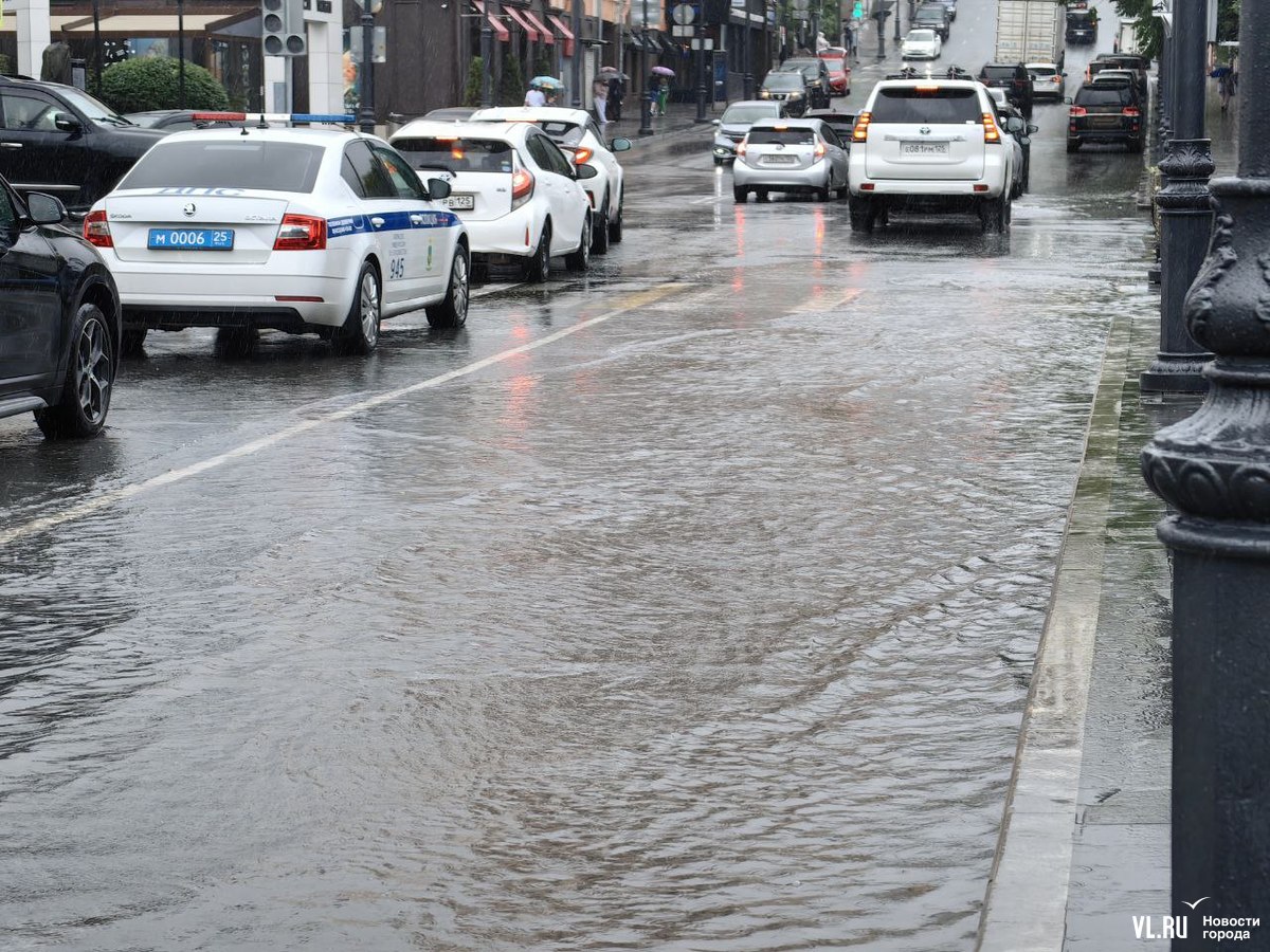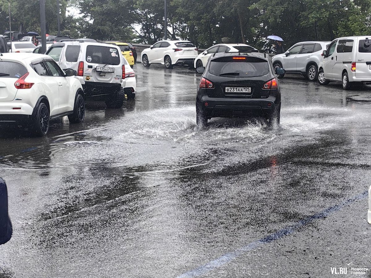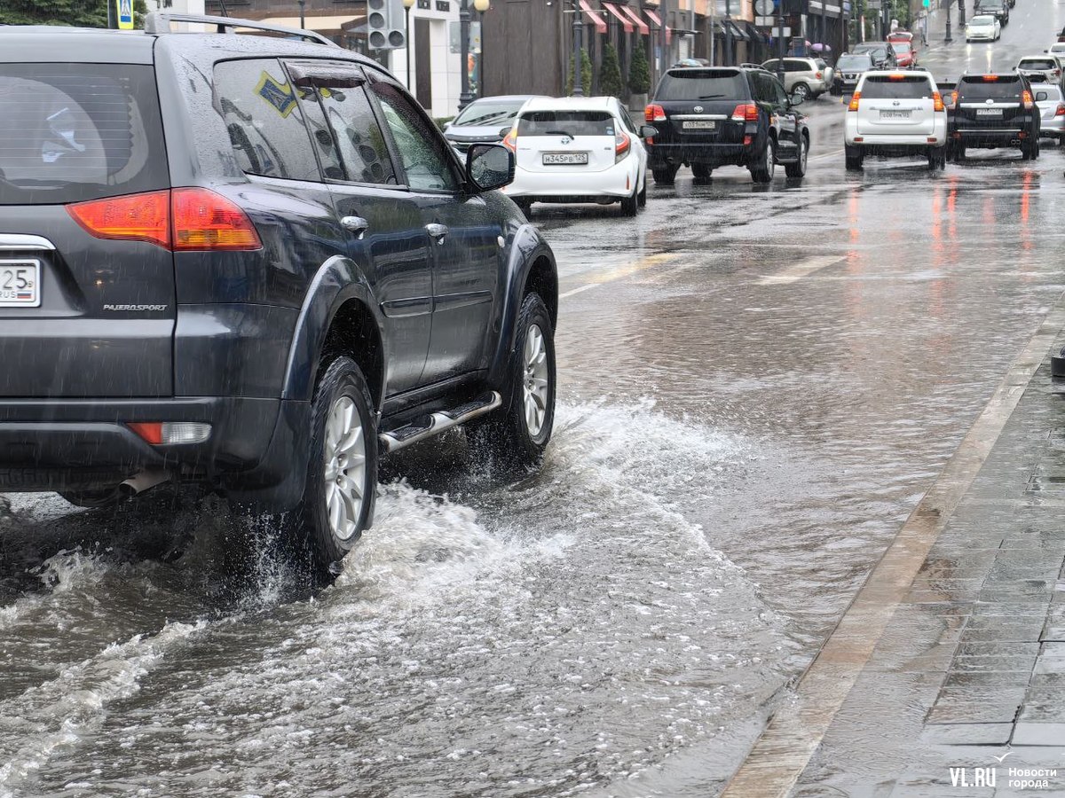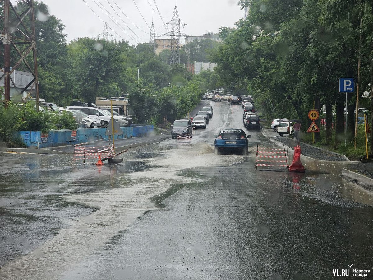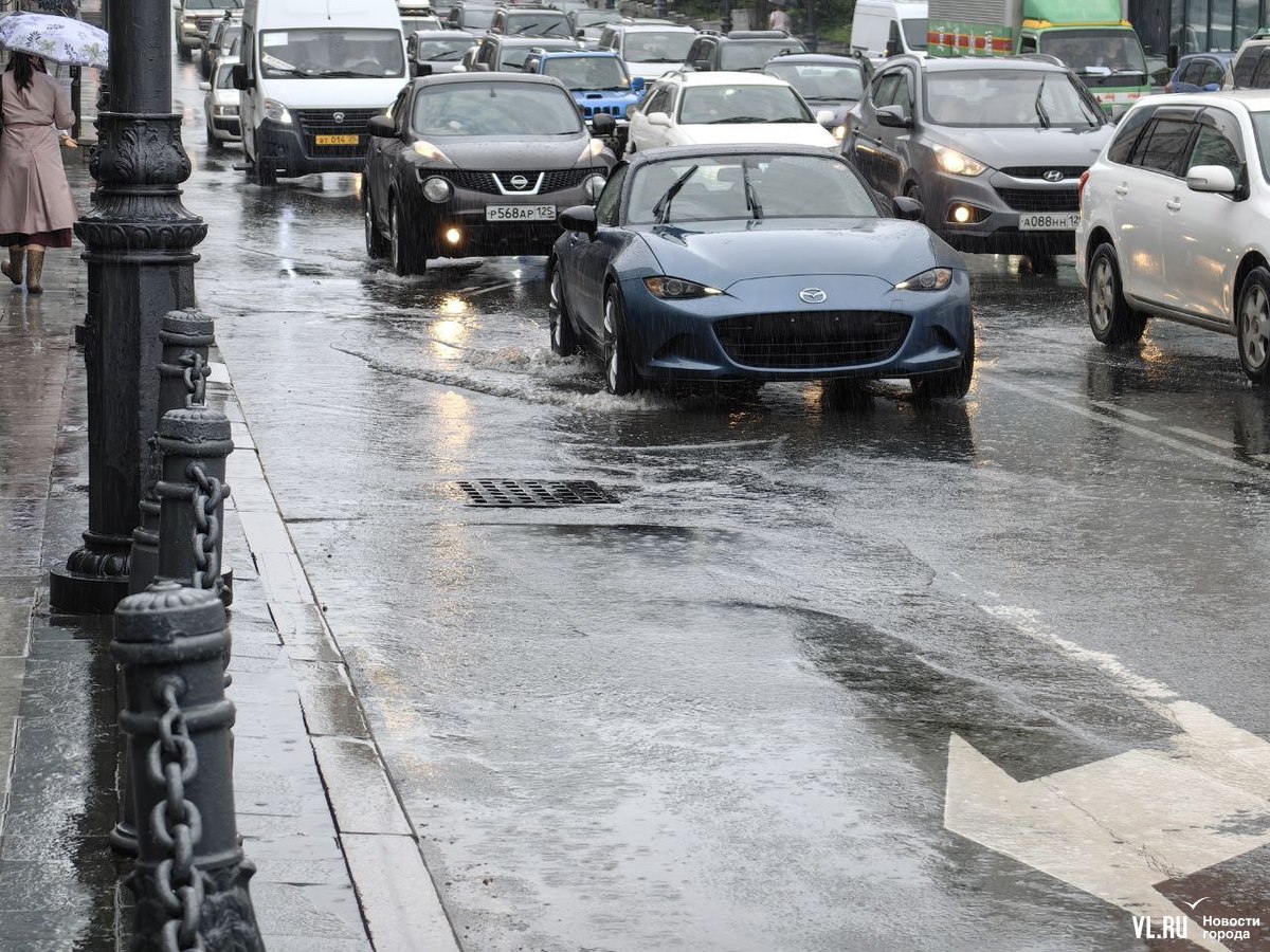 За несколько часов сильного дождя во Владивостоке традиционно начали тонуть улицы и дороги. Горожане перепрыгивают через лужи и лавируют между ручьями на тротуарах и пешеходных переходах. А водители, тяжело вздыхая, пробиваются через пробки по залитым улицам. На многих улицах уже начали появляться традиционные лужи, которые в скором времени превратятся в непреодолимые преграды. А мэрия ввела режим повышенной готовности.