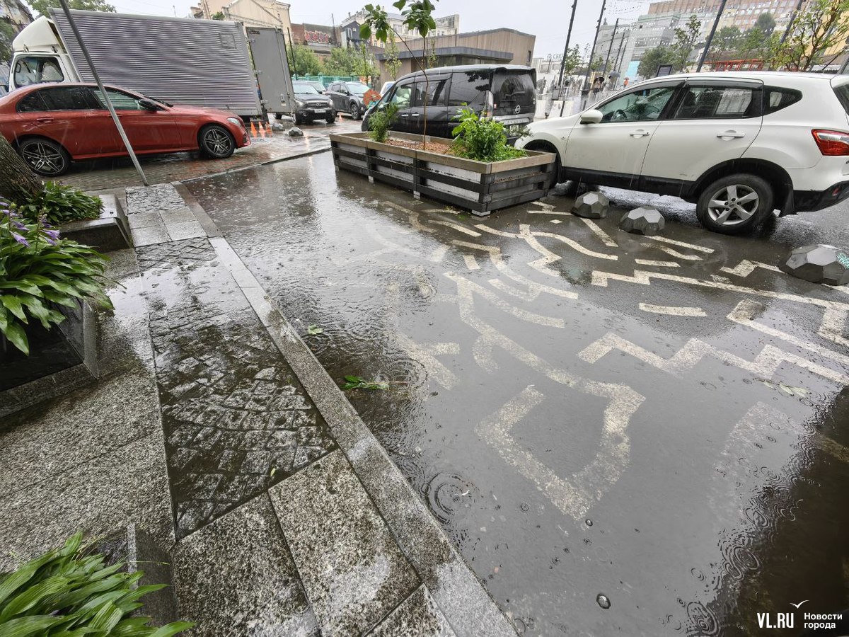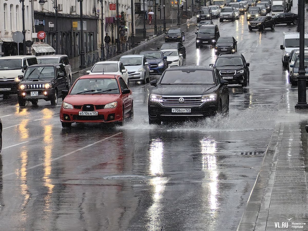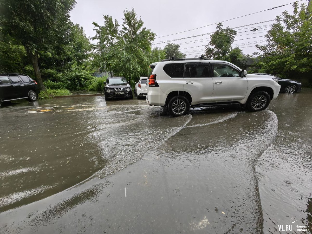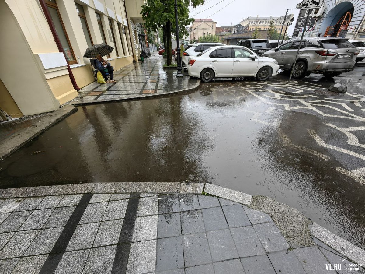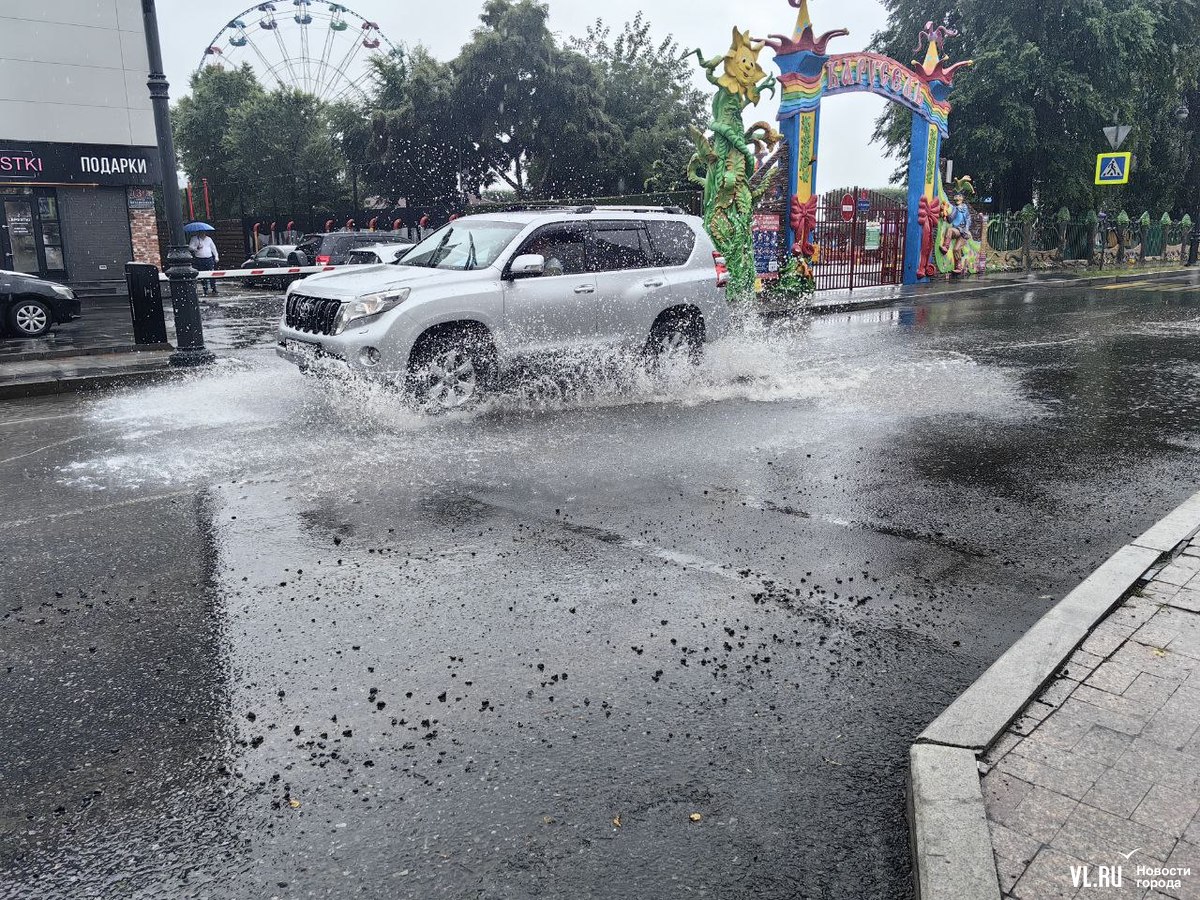 За несколько часов сильного дождя во Владивостоке традиционно начали тонуть улицы и дороги. Горожане перепрыгивают через лужи и лавируют между ручьями на тротуарах и пешеходных переходах. А водители, тяжело вздыхая, пробиваются через пробки по залитым улицам. На многих улицах уже начали появляться традиционные лужи, которые в скором времени превратятся в непреодолимые преграды. А мэрия ввела режим повышенной готовности.