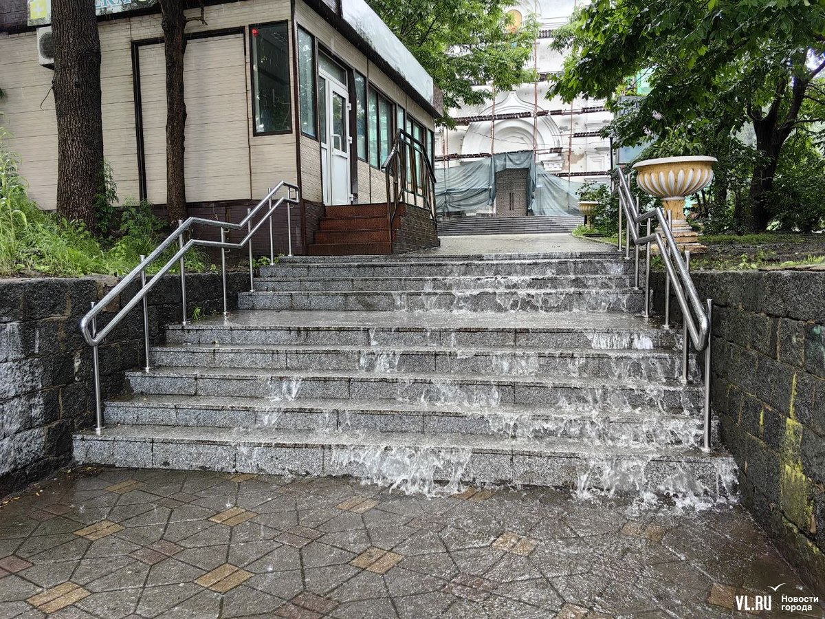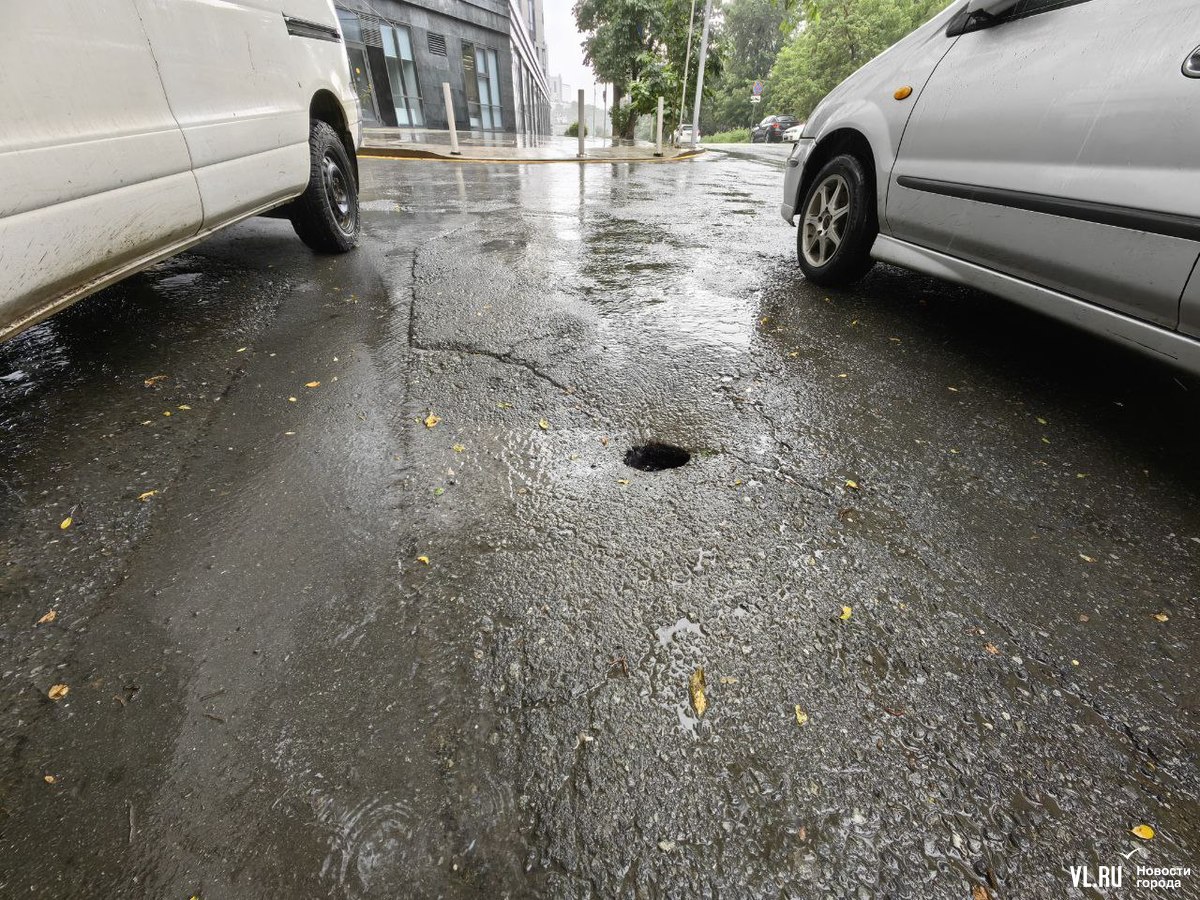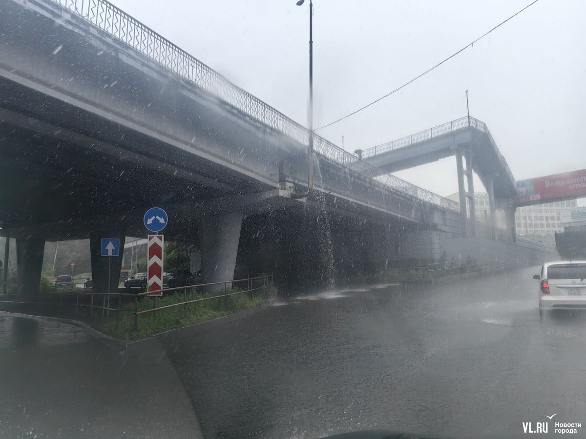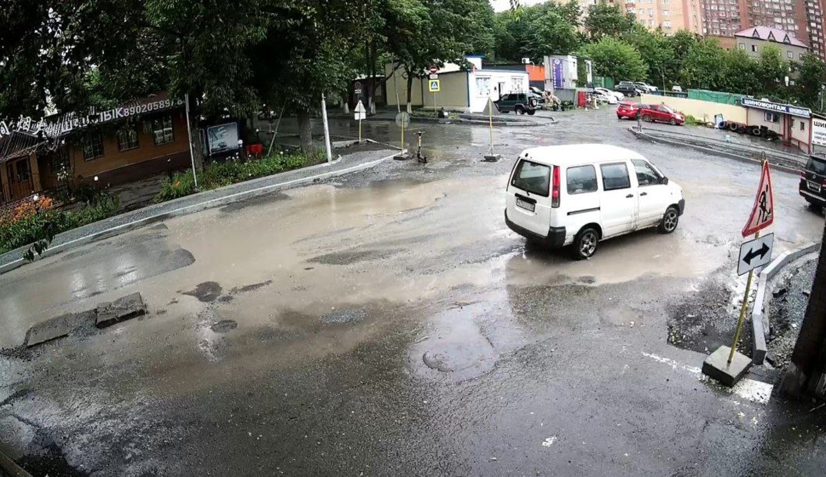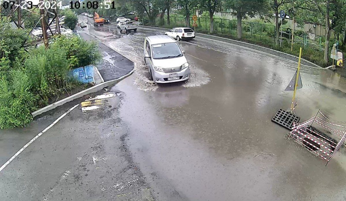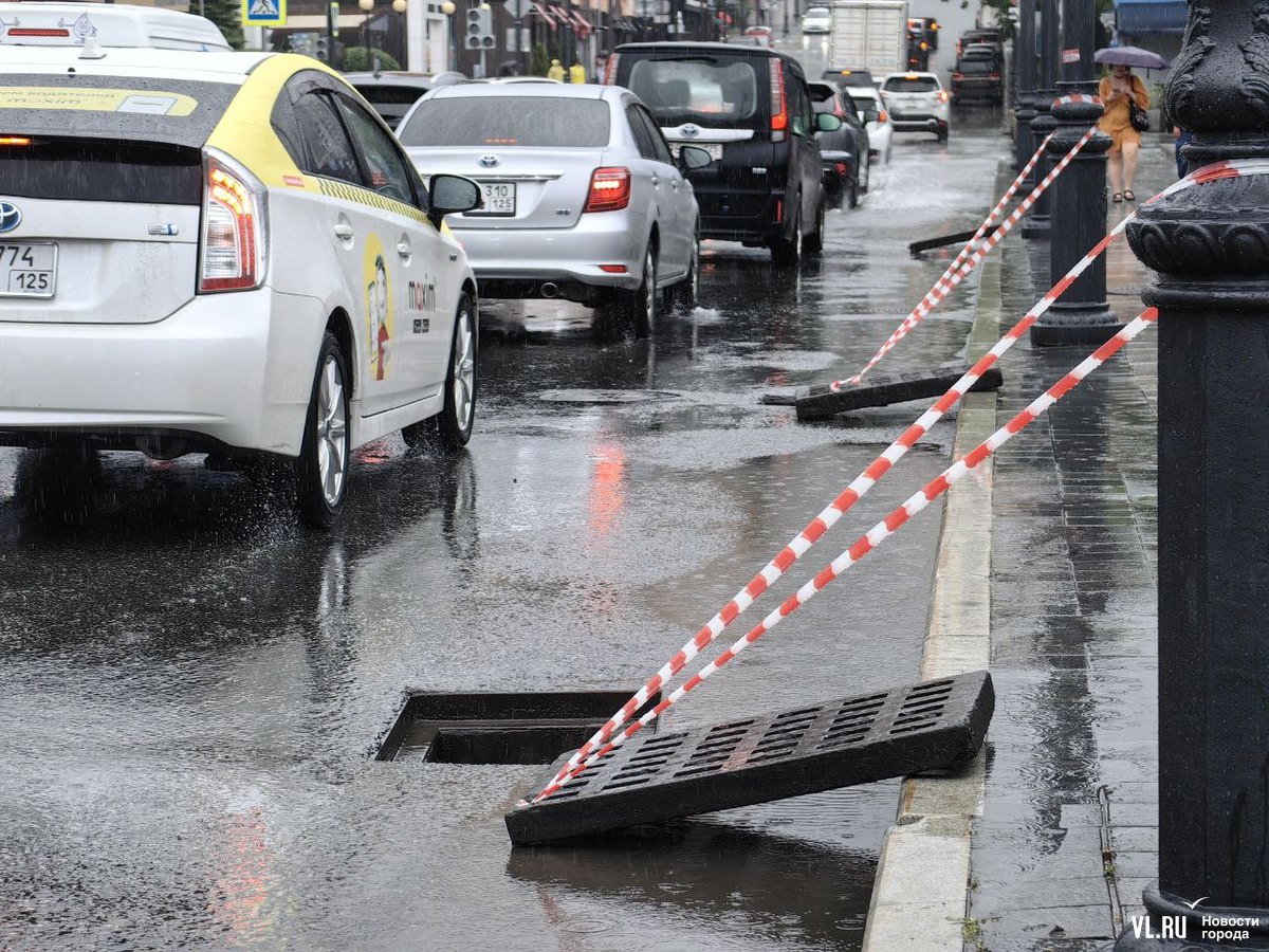 За несколько часов сильного дождя во Владивостоке традиционно начали тонуть улицы и дороги. Горожане перепрыгивают через лужи и лавируют между ручьями на тротуарах и пешеходных переходах. А водители, тяжело вздыхая, пробиваются через пробки по залитым улицам. На многих улицах уже начали появляться традиционные лужи, которые в скором времени превратятся в непреодолимые преграды. А мэрия ввела режим повышенной готовности.