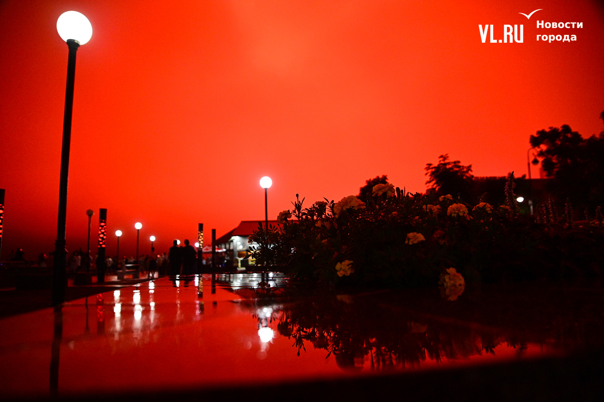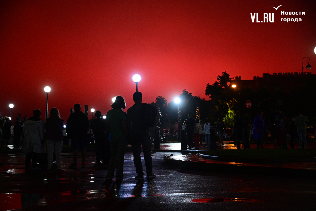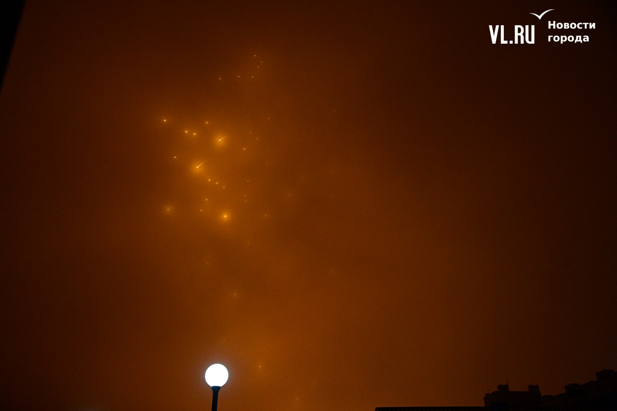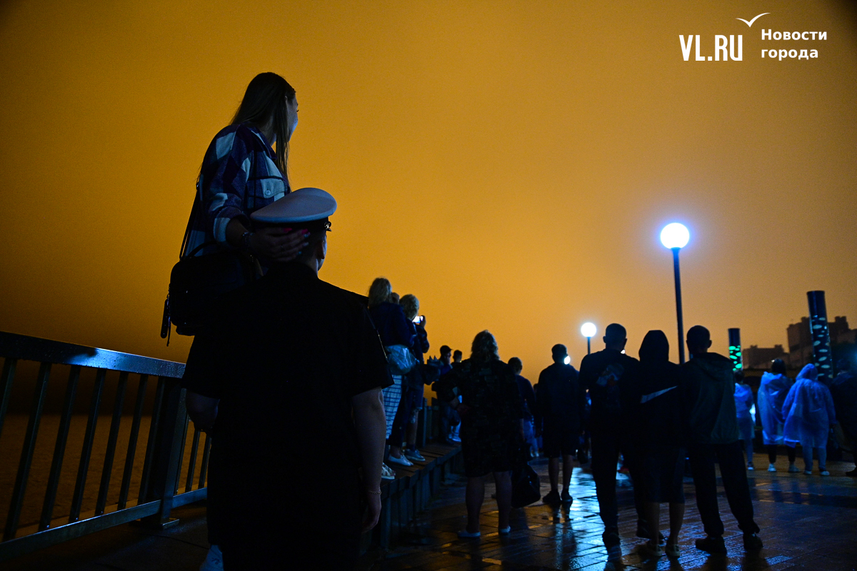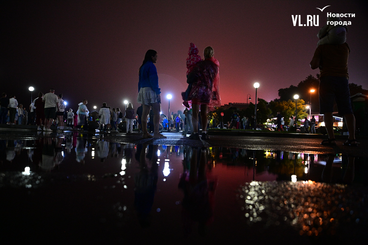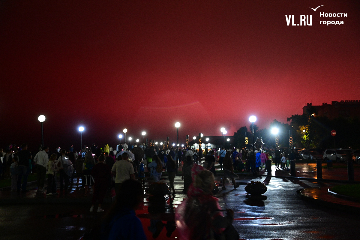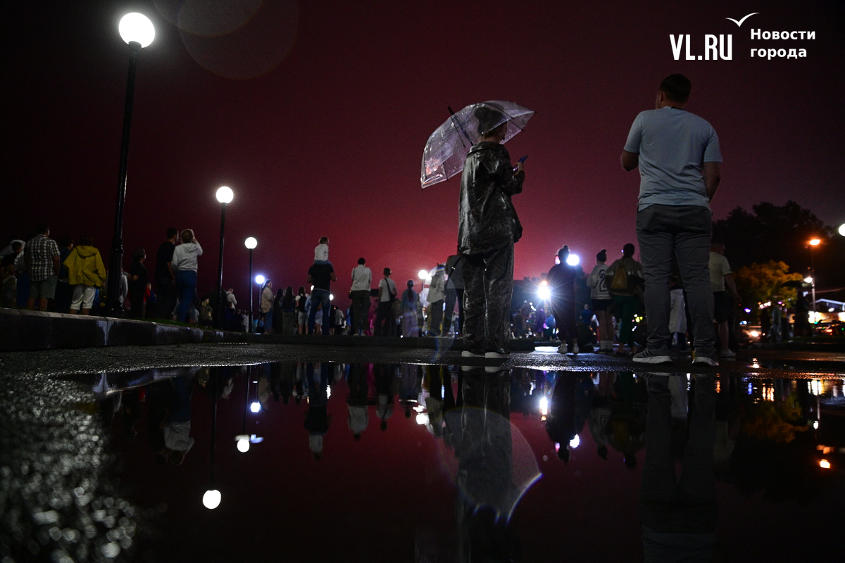 Салют в честь Дня ВМФ во Владивостоке гремел 10 минут. Залпы не было видно за туманом, но в эти моменты всё небо до самого горизонта окрашивалось в один цвет, и красный был самым ярким из них. Где-то вдалеке были видны искры – когда огни салюта спускались ниже мглы, уже почти долетая до земли.