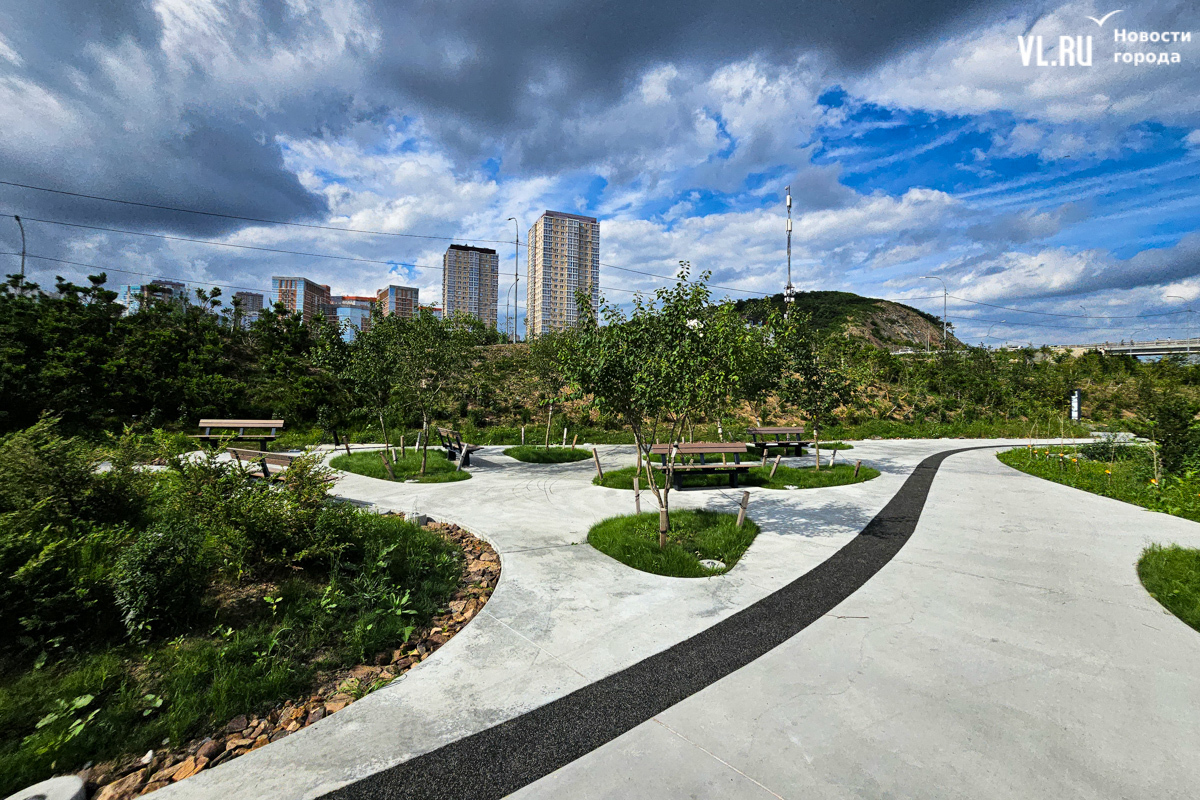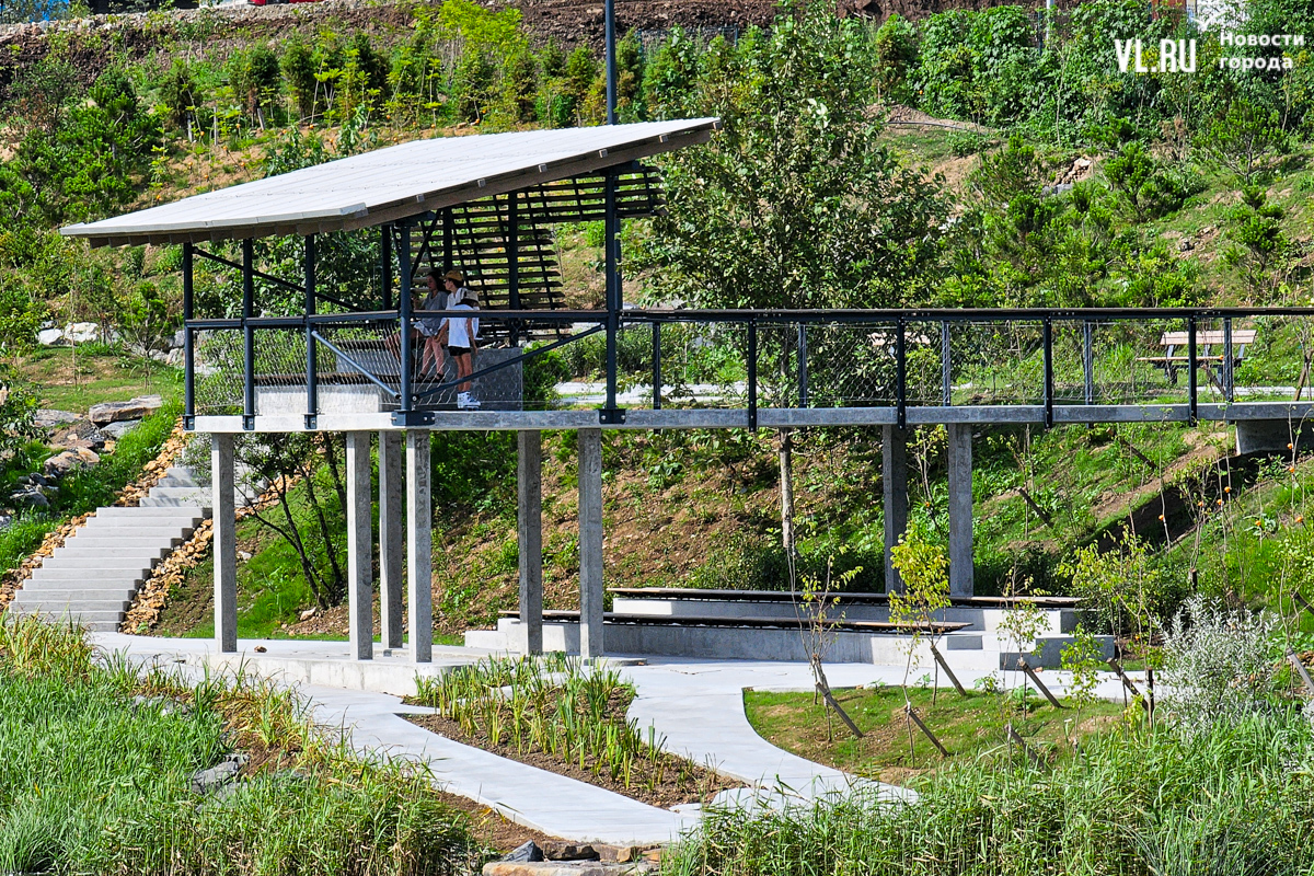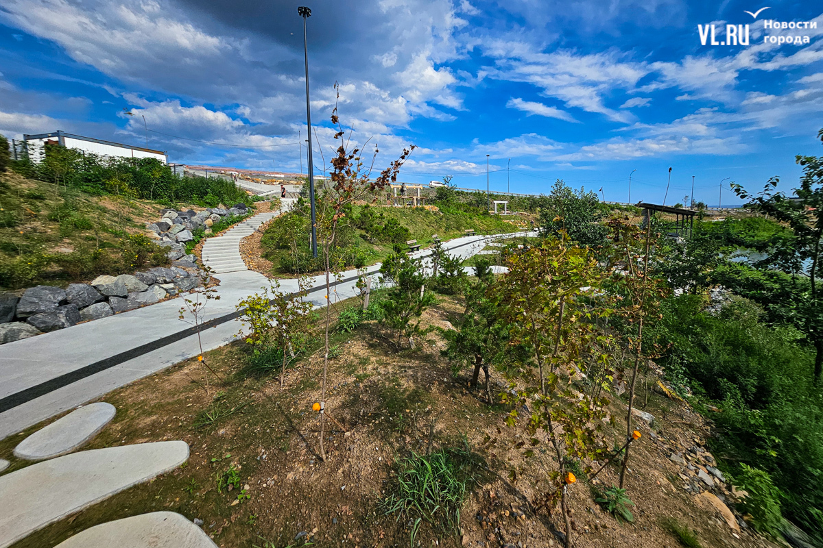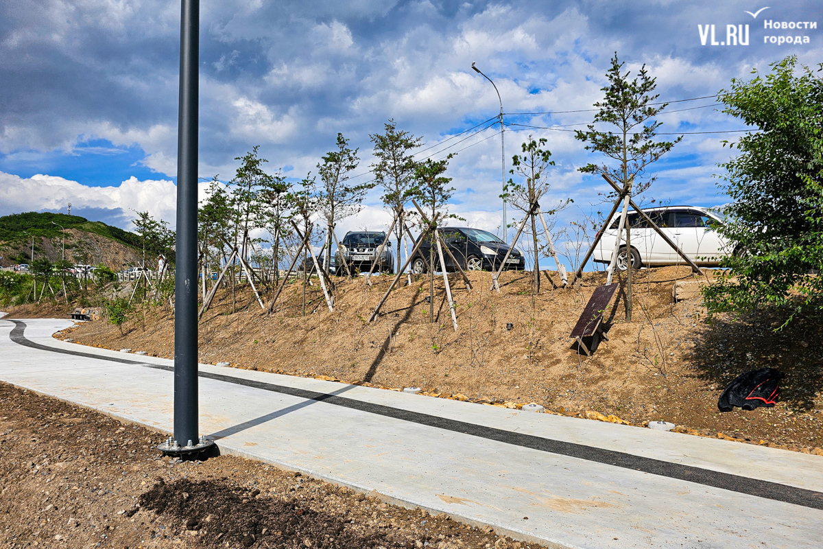 «По задумке, вся композиция вокруг озера – это такой парк у воды. Задача в том, чтобы люди могли погулять, посмотреть на птиц. Это не подразумевает много площадок и шумных активностей. Мы насыпали валы у дороги и высадили деревья – порядка 2000 саженцев только в этой части, – чтобы закрыться от шума и создать такой природный объект (всего было высажено порядка 7 тысяч деревьев. – Прим. ред.). Уют получилось вроде бы создать – посмотрим, как это будет жить, и в том же духе будем развивать», – рассказал корреспонденту Новостей VL.ru Алексеев.