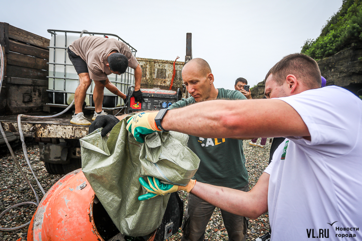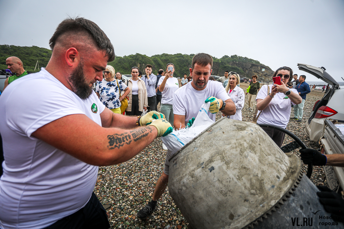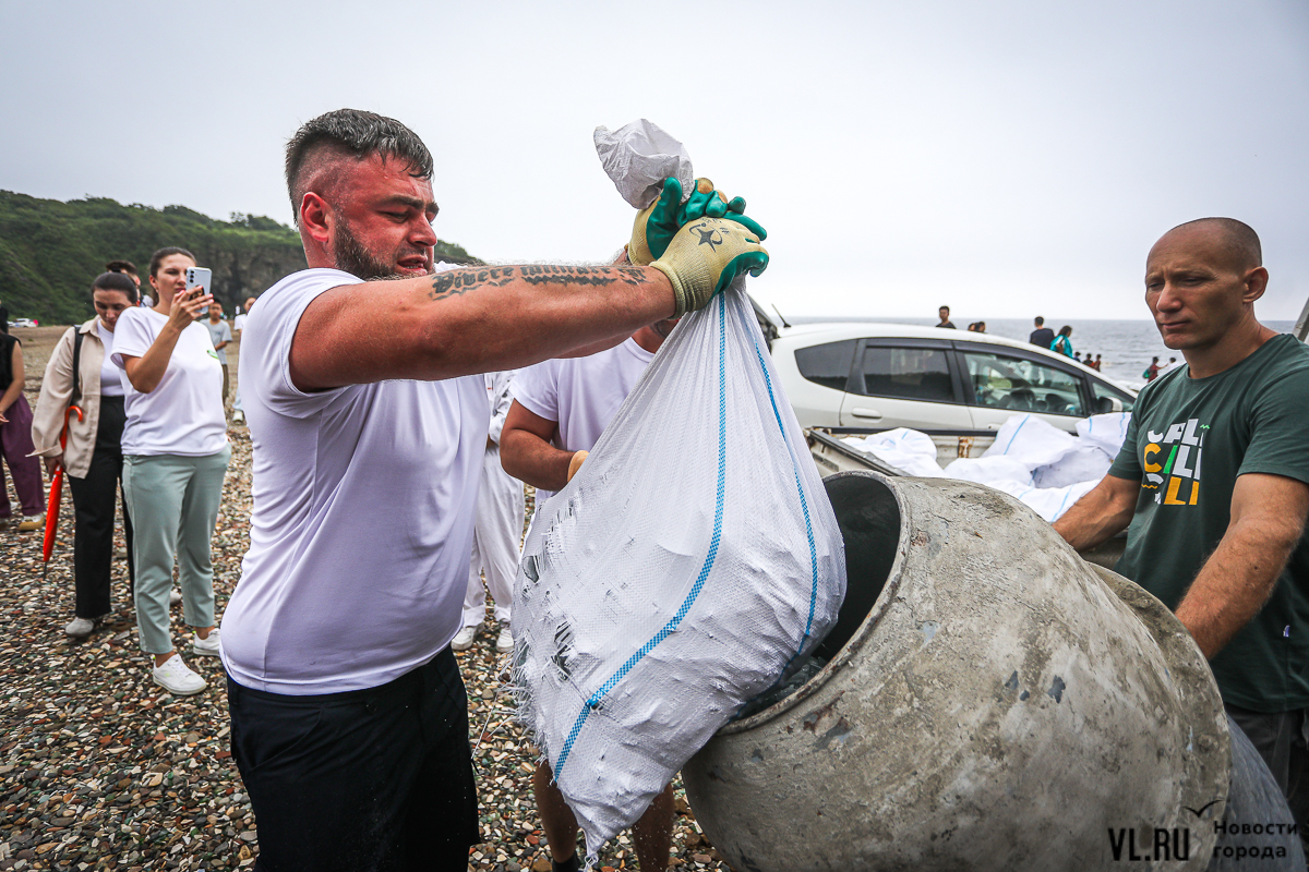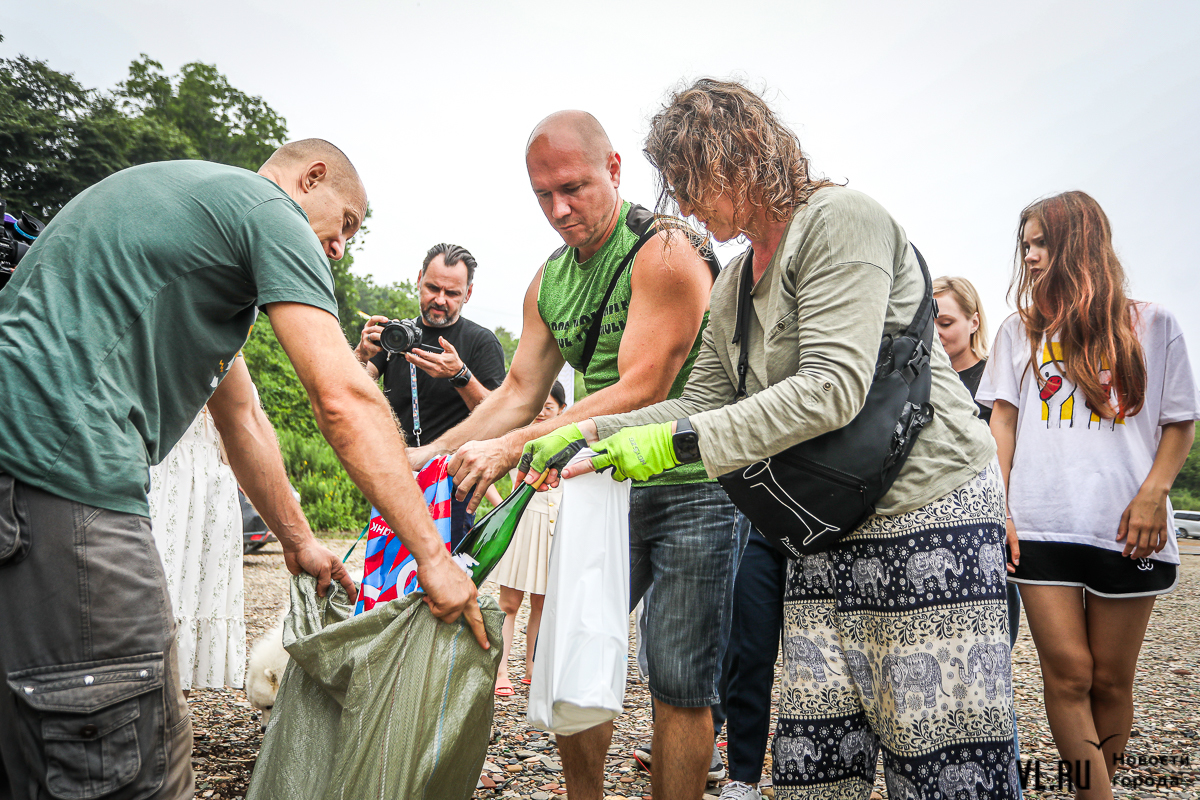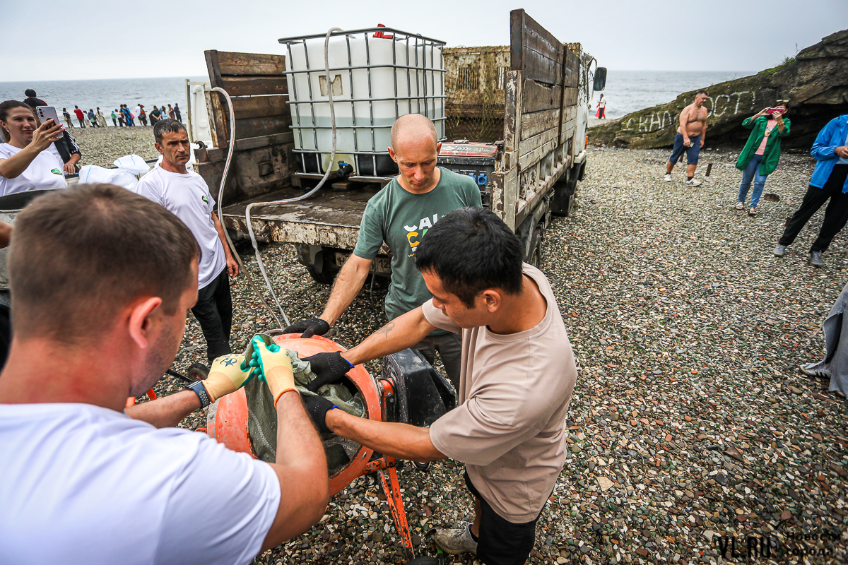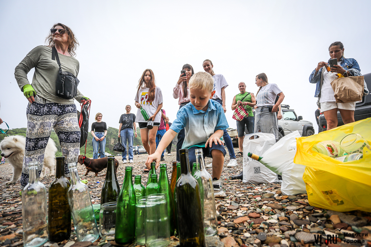 Несколько мешков привезли жители Владивостока. Банки и бутылки в пакетах поставили рядом с техникой. Коллектив компании «От Максима» вообще приехал с полным грузовиком стекла, 20 биг-бэгов. У них битая тара долго складируется – иногда товар приезжает уже с нарушенной упаковкой, его продавать нельзя. Раньше утилизировали обычным путём, с общим мусором. А теперь решили «переработать».