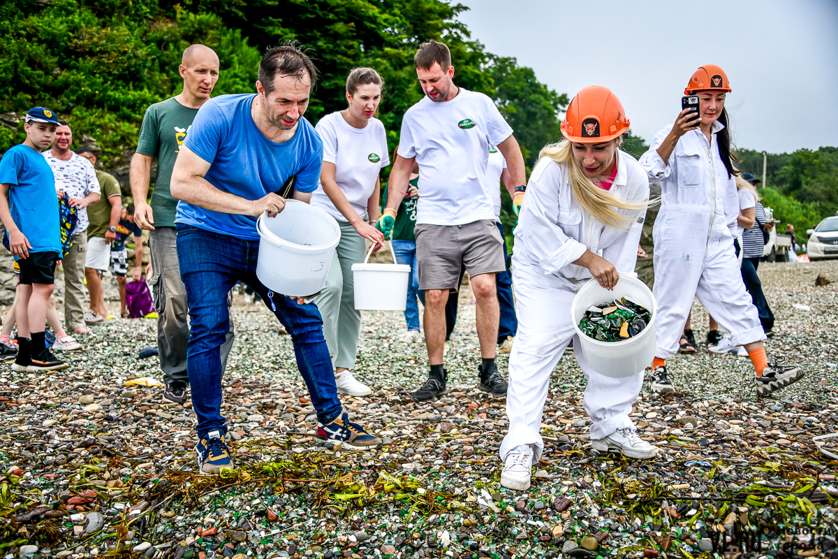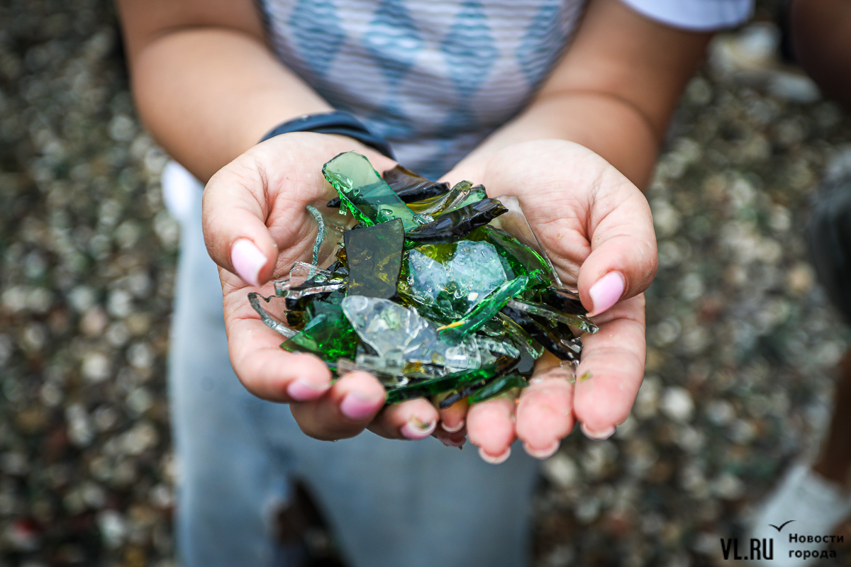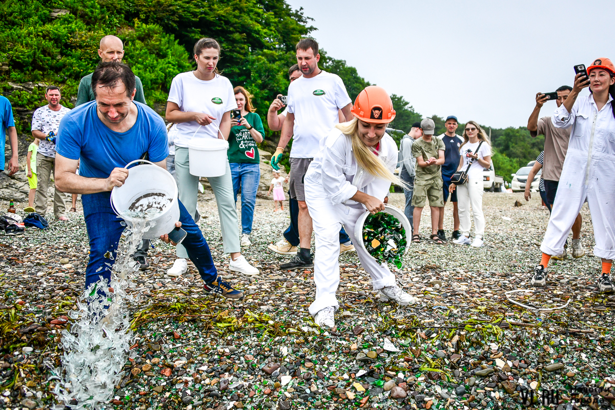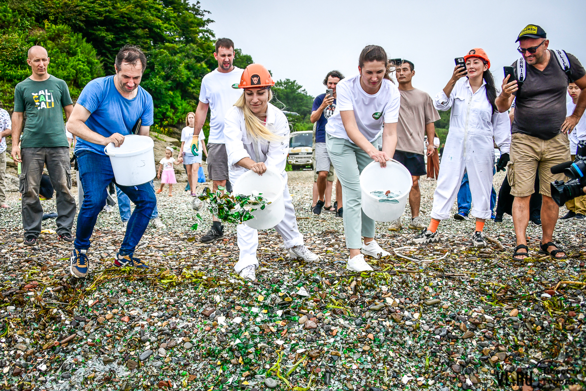 В середине июля в бухте Стеклянной у Владивостока провели пробную акцию «Осколки моря». Сюда привезли небольшую партию стекла, маленькую бетономешалку, прямо на берегу сделали новую партию шлифованных стёкол и высыпали их в море. Организаторы акции, Дирекция общественных пространства Владивостока, призвали всех поступать аналогичным образом, хотя продолжать её не планировали.