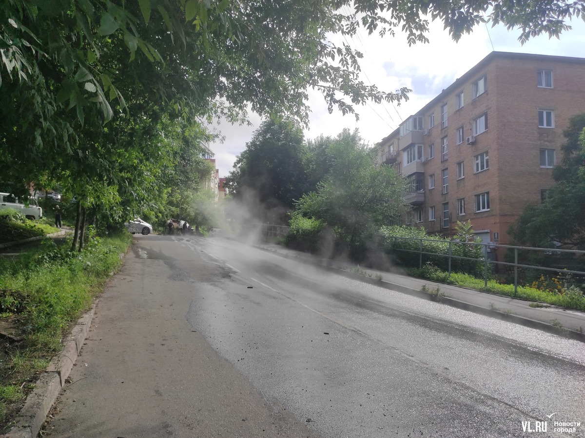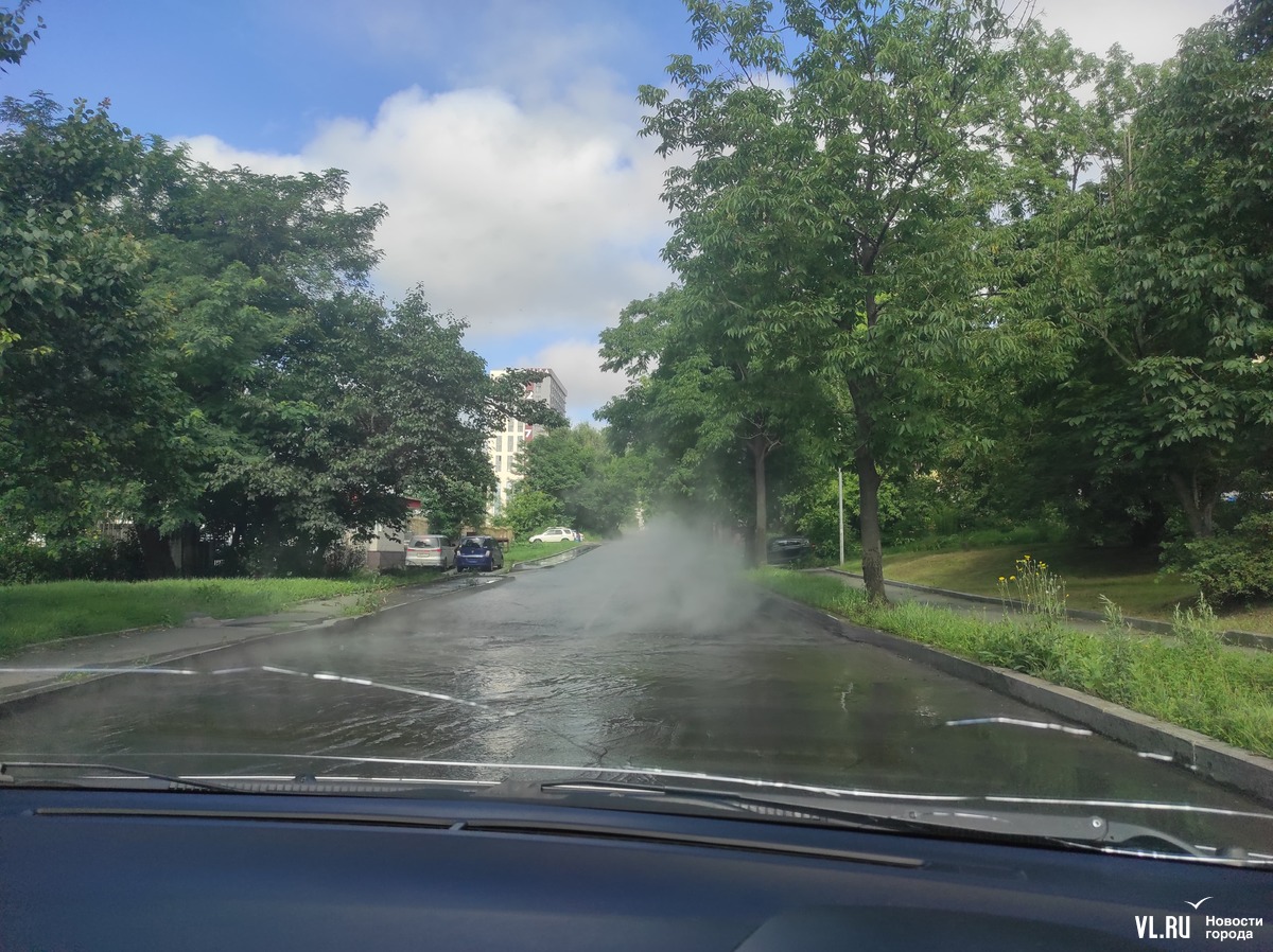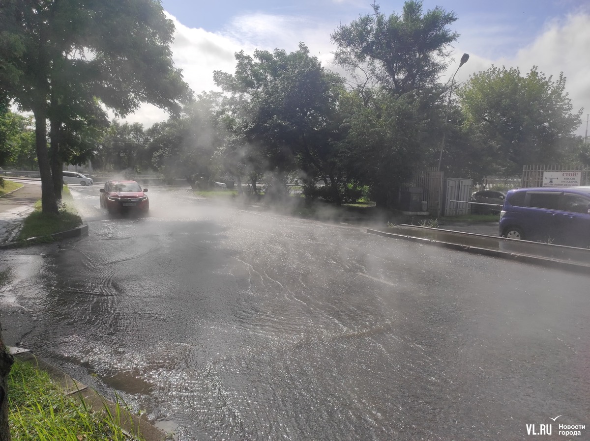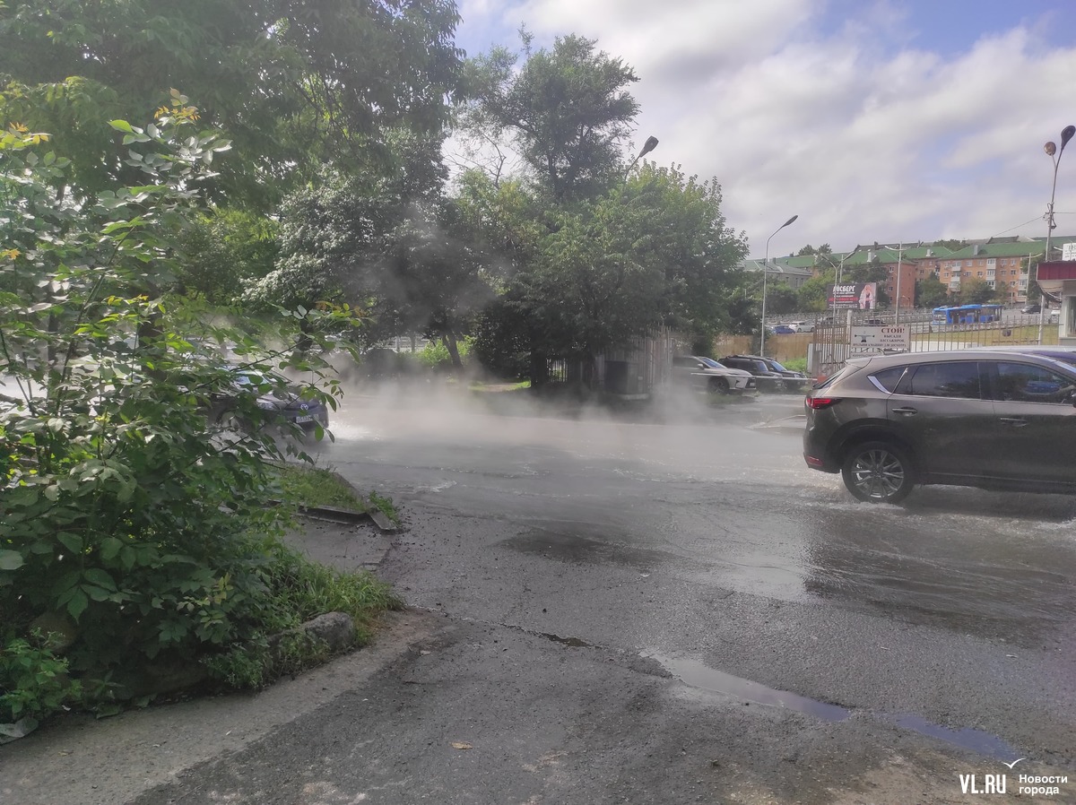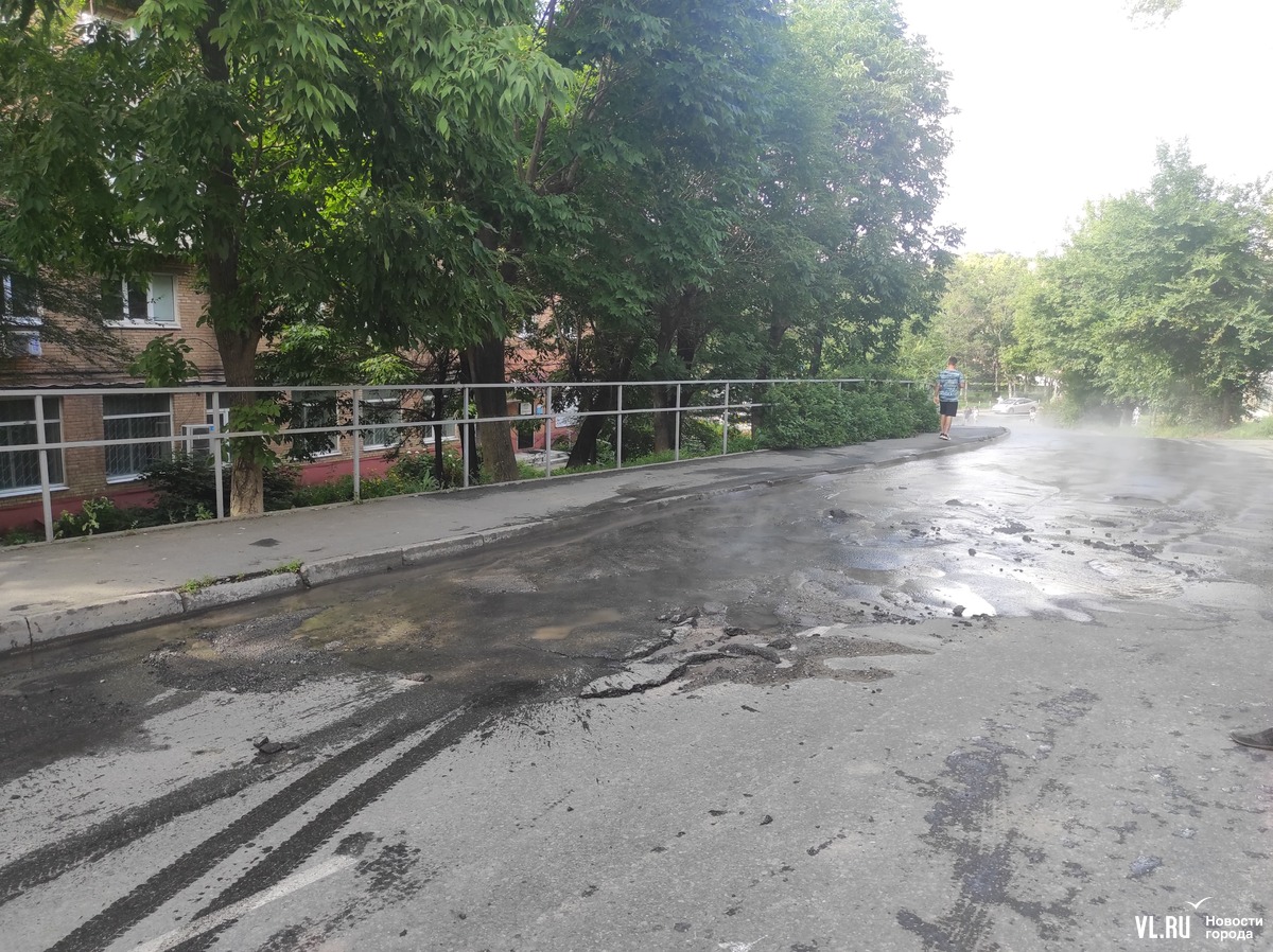 Во Владивостоке в районе стадиона «Строитель» второй день подряд текут реки кипятка. Сегодня, 4 августа, горячая вода под напором стала вырываться из-под асфальта на улице Ильичёва и стекать в сторону Печорской. Пока вокруг образовывались озёра и даже водопады, толпа ребятишек пыталась «перекрыть» дорогу, чтобы водители не ехали в сторону опасного места. Сейчас воду отключили, и дороги начинают подсыхать. Но на месте порыва исковеркан асфальт.