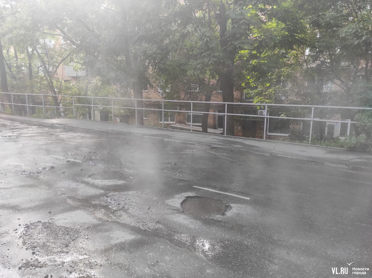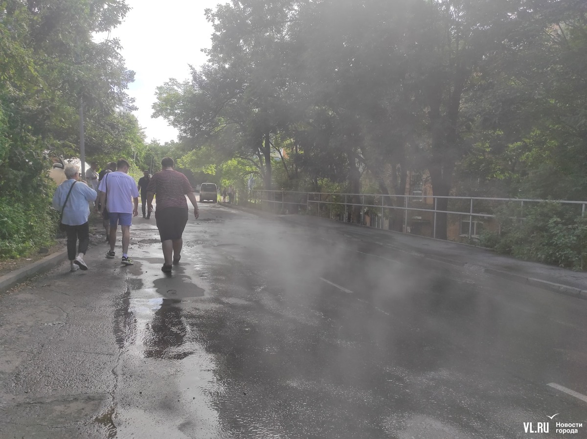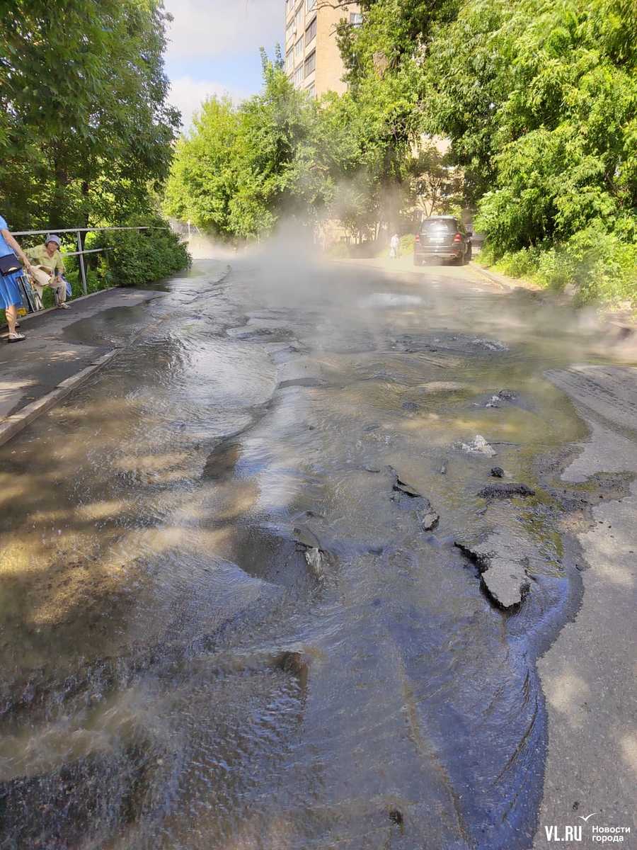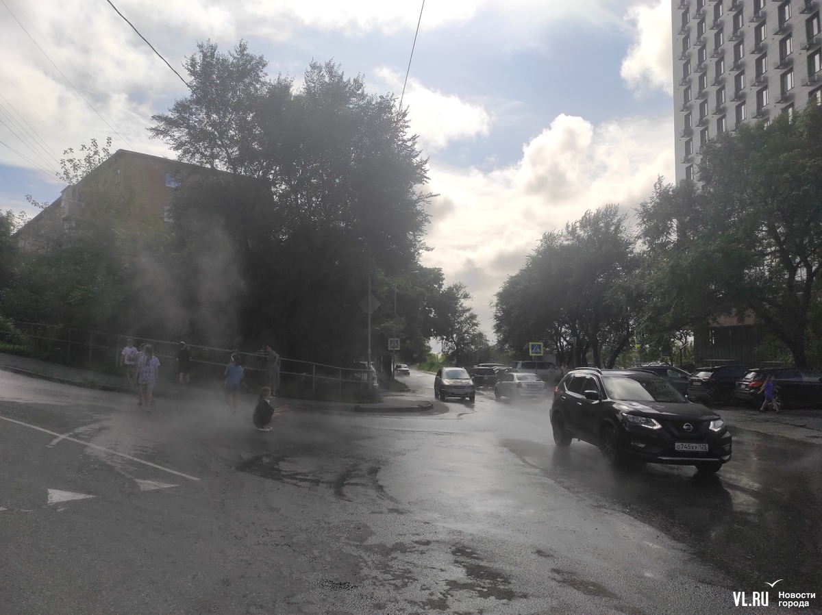 Во Владивостоке в районе стадиона «Строитель» второй день подряд текут реки кипятка. Сегодня, 4 августа, горячая вода под напором стала вырываться из-под асфальта на улице Ильичёва и стекать в сторону Печорской. Пока вокруг образовывались озёра и даже водопады, толпа ребятишек пыталась «перекрыть» дорогу, чтобы водители не ехали в сторону опасного места. Сейчас воду отключили, и дороги начинают подсыхать. Но на месте порыва исковеркан асфальт.