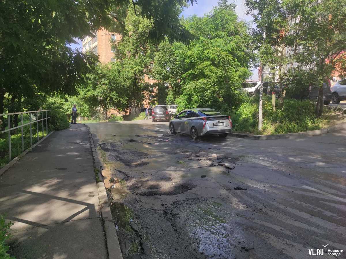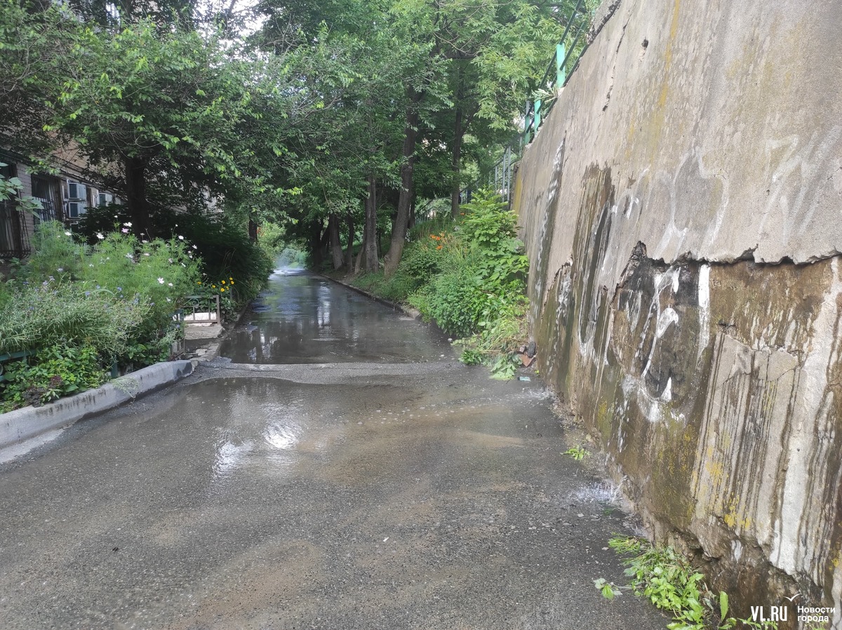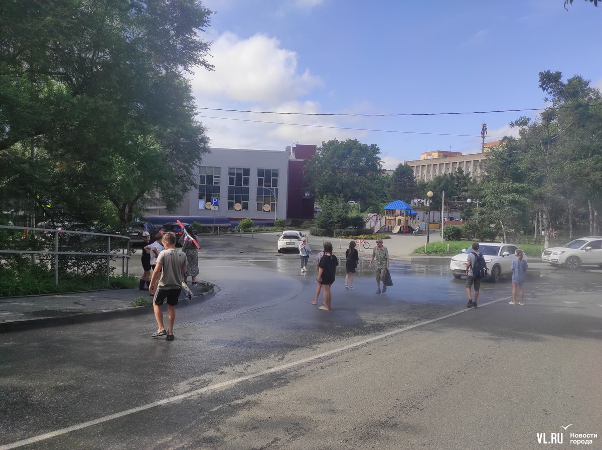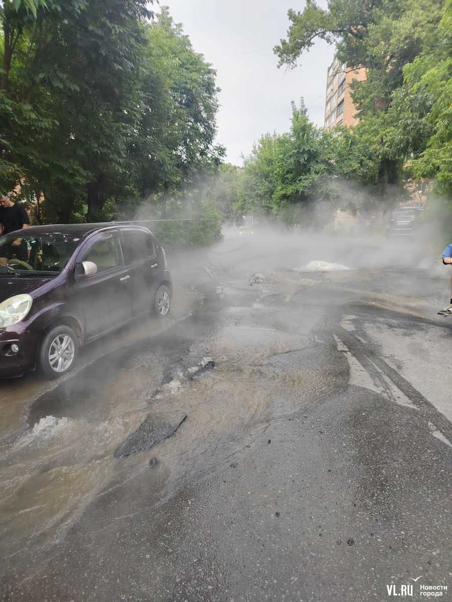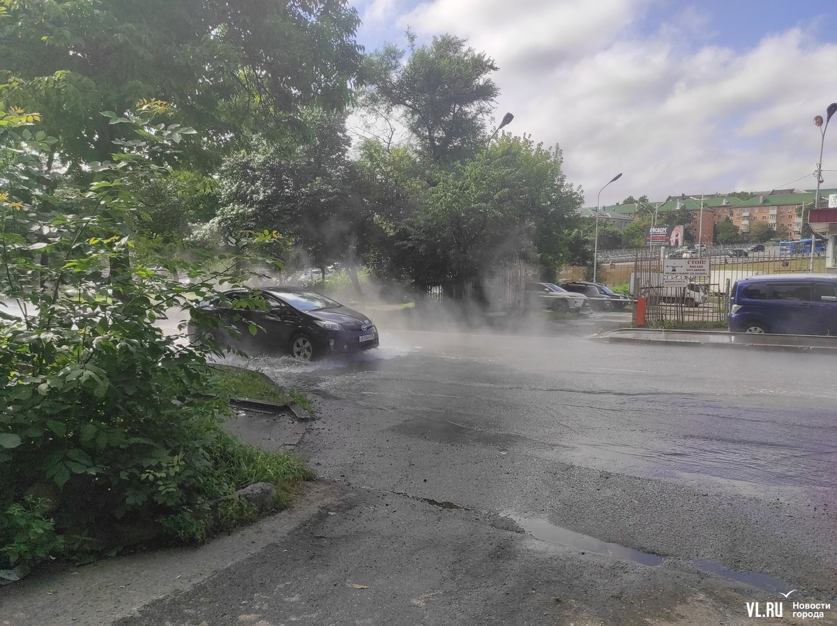 Во Владивостоке в районе стадиона «Строитель» второй день подряд текут реки кипятка. Сегодня, 4 августа, горячая вода под напором стала вырываться из-под асфальта на улице Ильичёва и стекать в сторону Печорской. Пока вокруг образовывались озёра и даже водопады, толпа ребятишек пыталась «перекрыть» дорогу, чтобы водители не ехали в сторону опасного места. Сейчас воду отключили, и дороги начинают подсыхать. Но на месте порыва исковеркан асфальт.