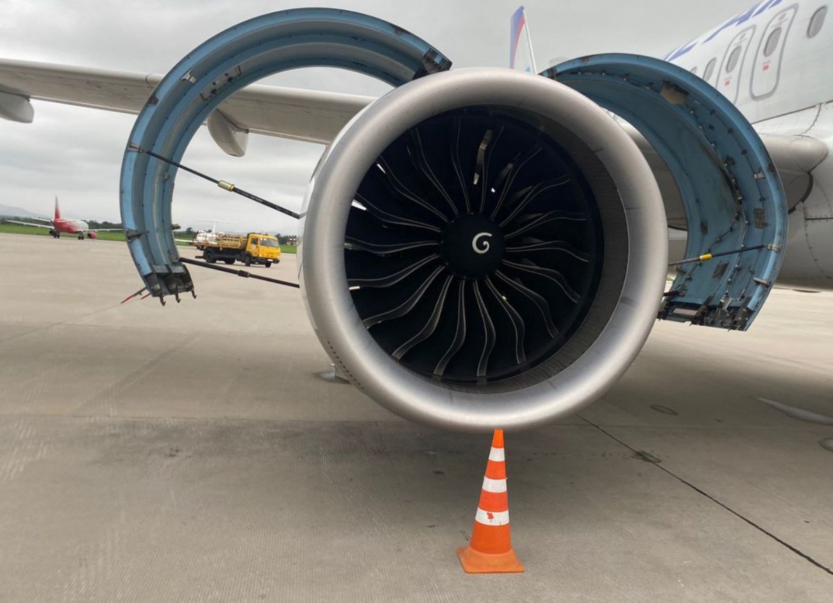 Обновлено 16:55: СК на транспорте опубликовал фото авиалайнера, который должен был сегодня улететь в Петропавловск-Камчатский, но после набора высоты вернулся в аэропорт Владивостока. Точнее, фото одного из его двигателей. Видимо, именно в нём сработала индикация о возможной неисправности. Самолёт пока стоит в аэропорту. Его вылет задержан, предварительно, до 20:00.