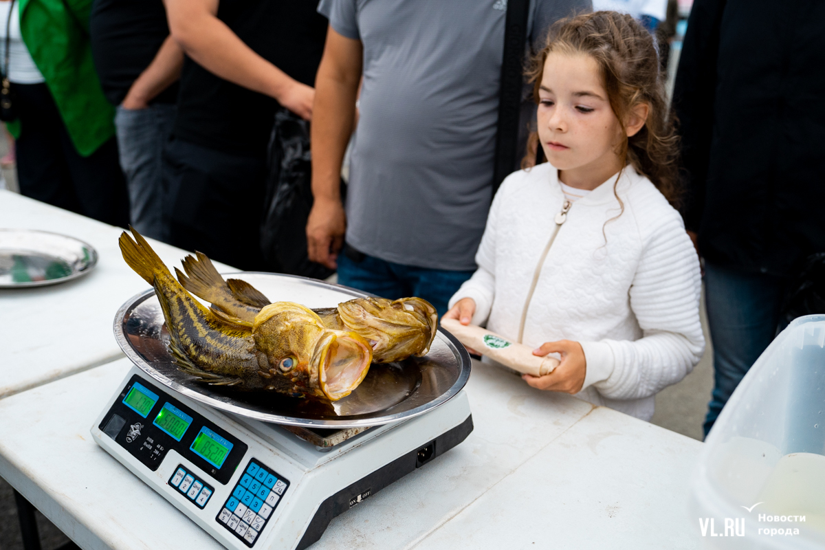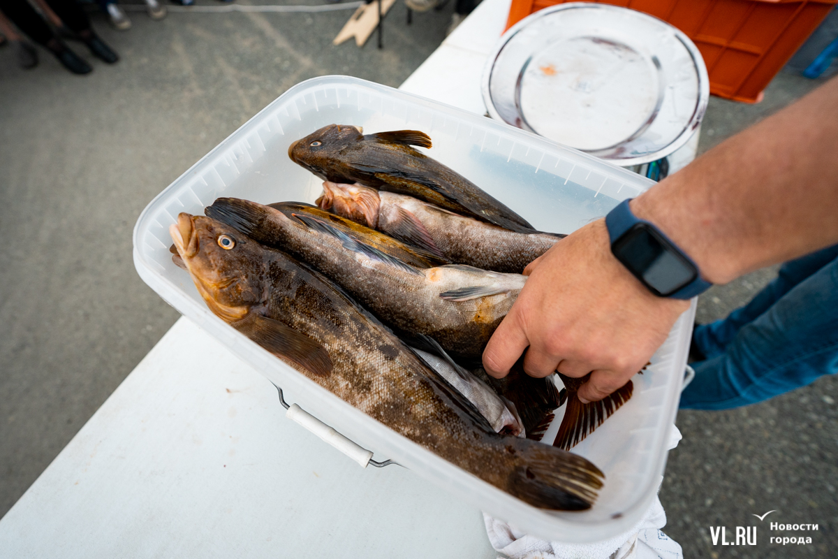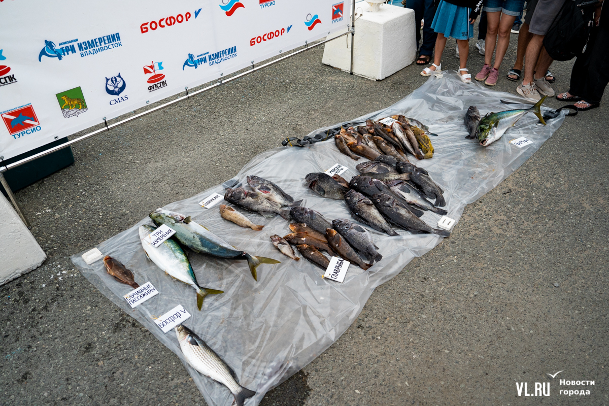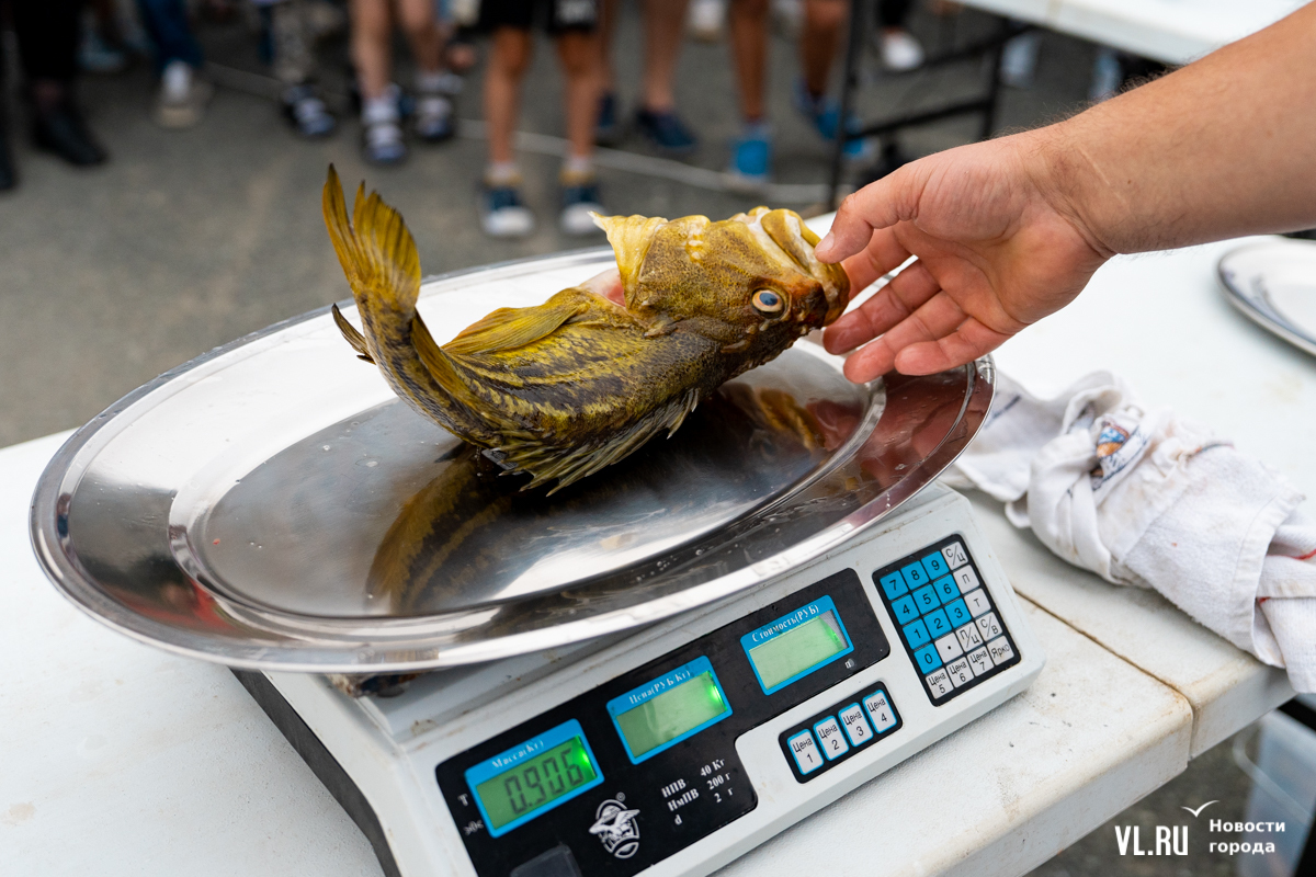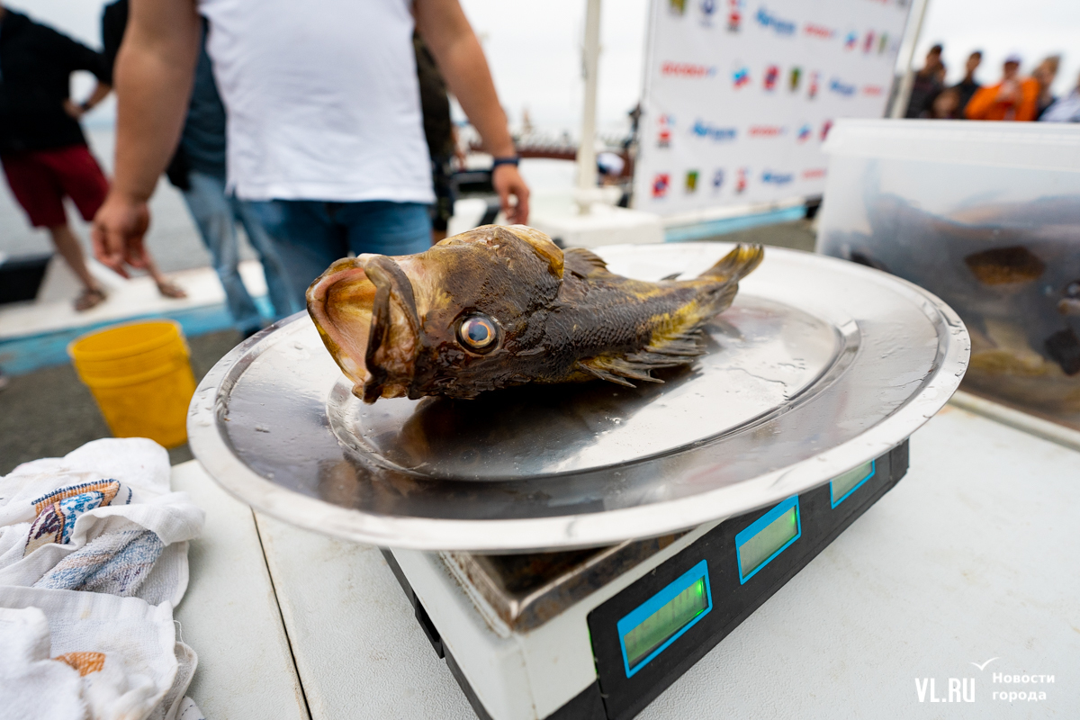 На весах в этом году оказались несколько видов окуней, лобан, бурый терпуг, спинорог и лакедра. Но не каждая рыба идёт в зачёт. Например, лакедра или тёмный окунь не должны быть меньше 1,5 килограмма, морской карась или камбала – от 400 граммов, а восточный окунь – от 250 граммов. Всё, что меньше, – либо не учитывается, либо облагается штрафными баллами (если рыба меньше 2/3 нормативного веса). Также есть запрещенные к вылову в соревнованиях виды рыб.