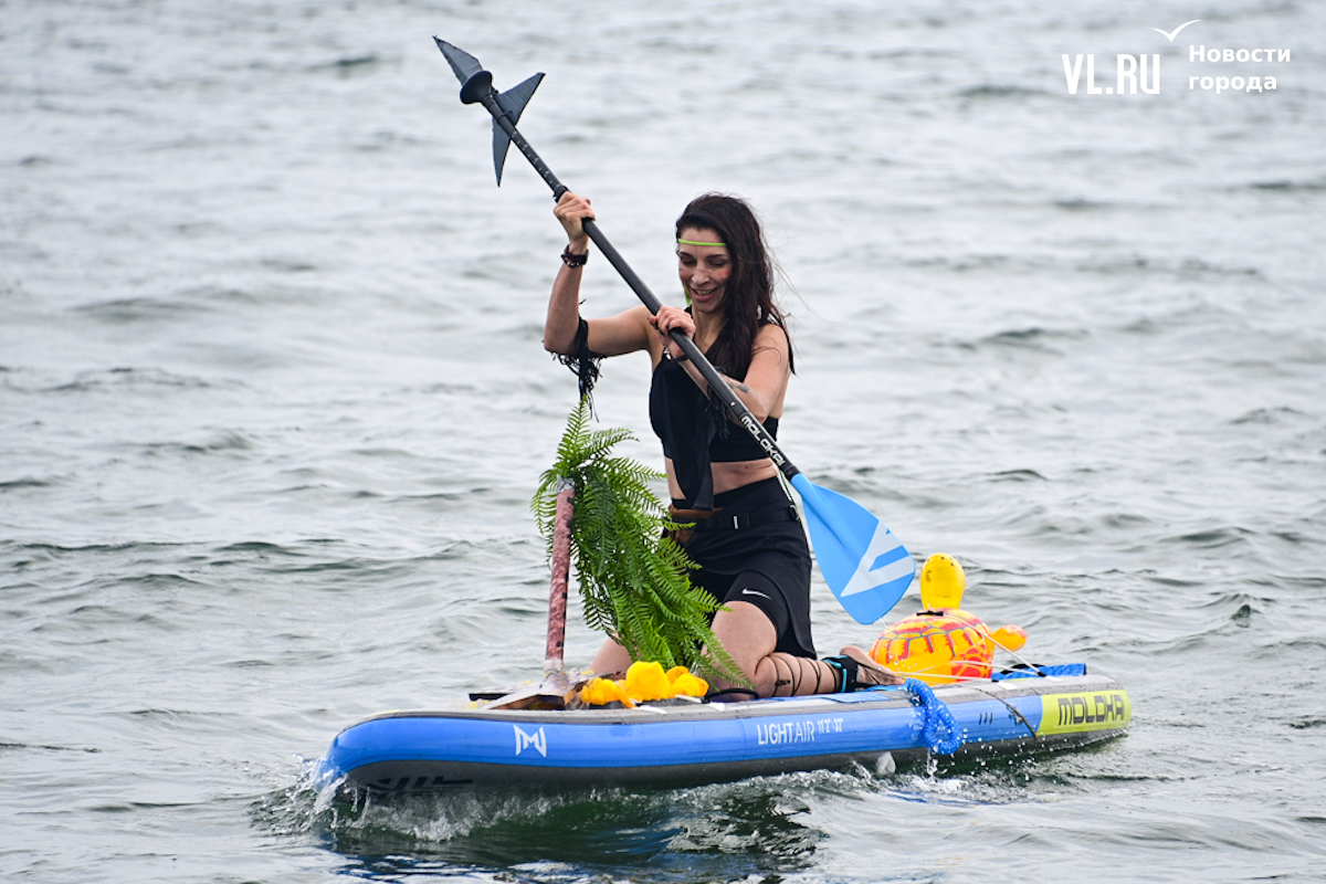 В воду участники входили поочерёдно, и все успевали их как следует рассмотреть. В том числе и жюри, которое оценивало исключительно образ. Так что управлять сапом можно было и стоя, и сидя – кому как нравится. Высшая оценка – семь баллов.