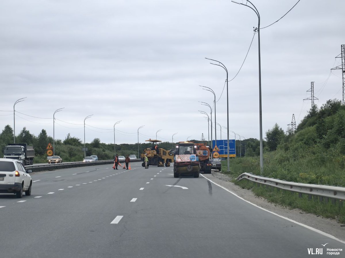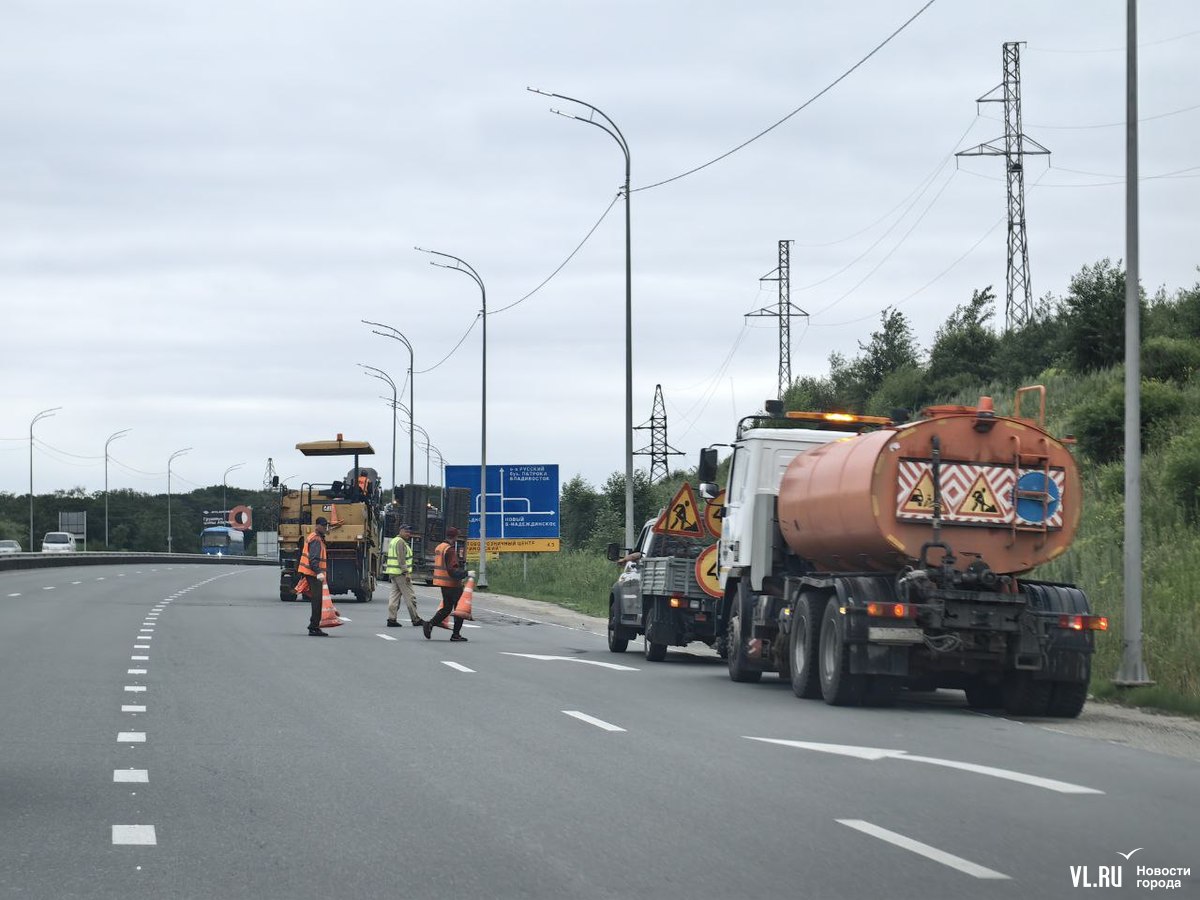 Дорогу ремонтируют как часть «гостевого маршрута» для Восточного экономического форума, до которого остался месяц.