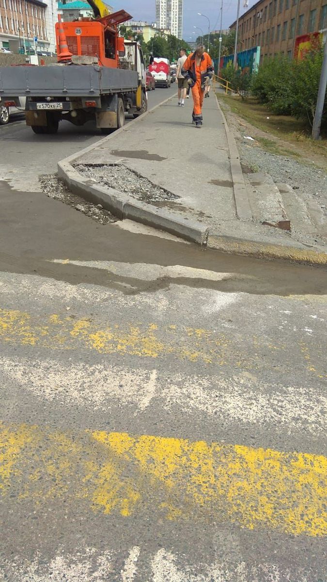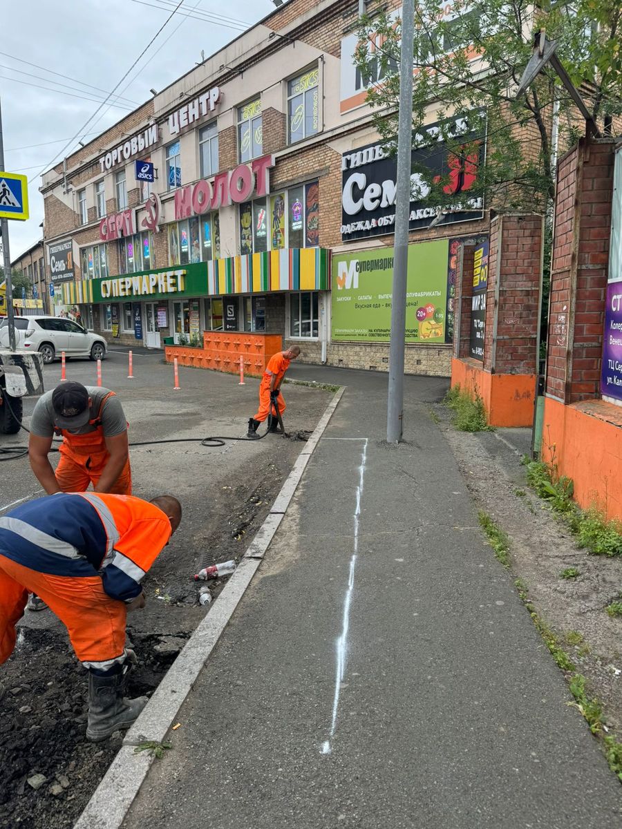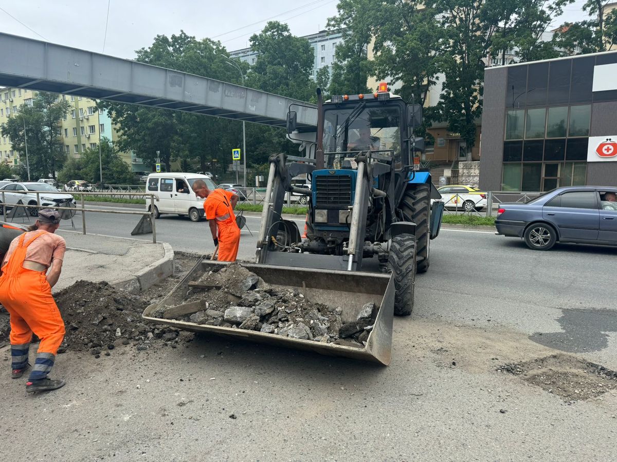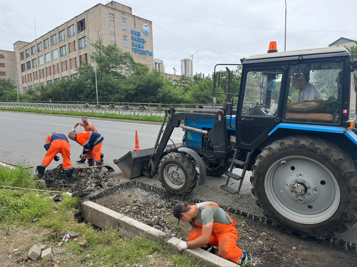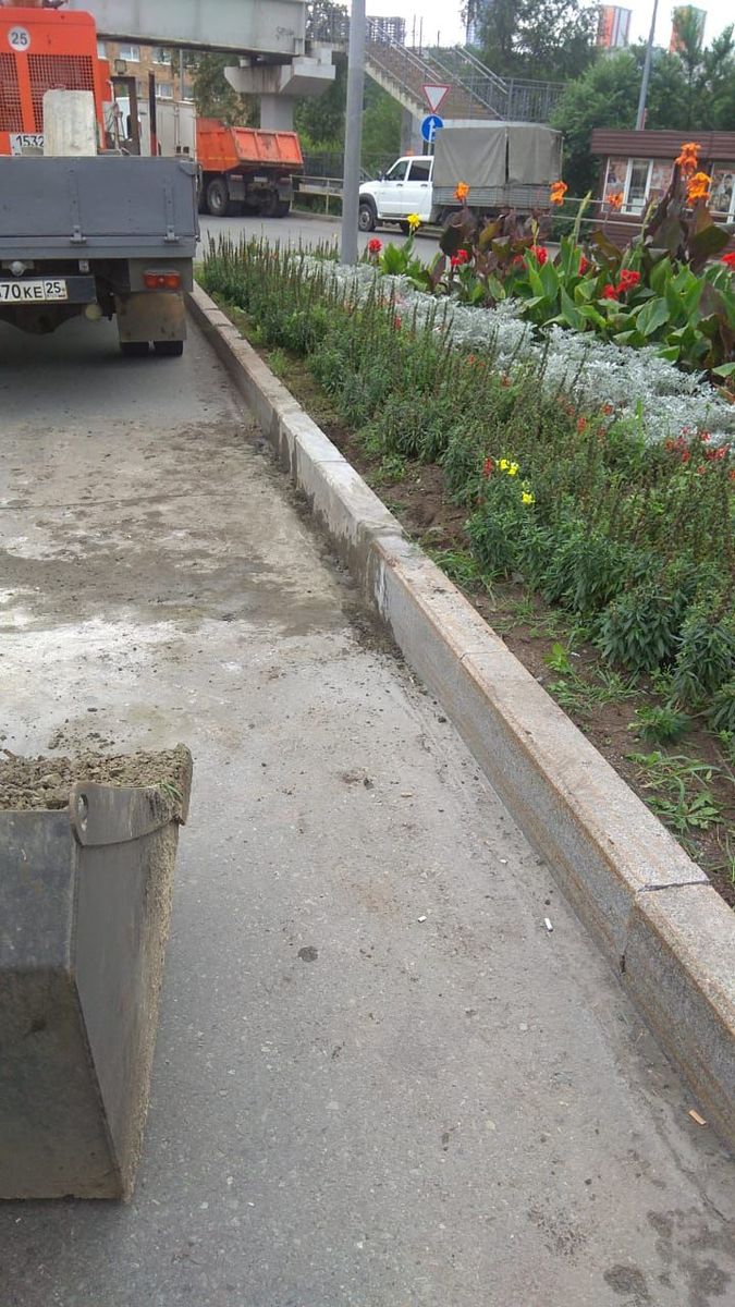 «На сегодняшний день дорожные мастера сосредоточены на восстановлении бортового камня и пешеходных дорожек на улицах Калинина и Олега Кошевого. Работы проводятся не только для улучшения эстетического вида городских территорий, но и для повышения безопасности пешеходов. В этом же районе приступили к ремонту разворотного кармана, где производится замена разрушенного бордюра рядом с остановкой «Надибаидзе», – прокомментировал руководитель муниципальной дорожной службы Владивостока Николай Насонов.