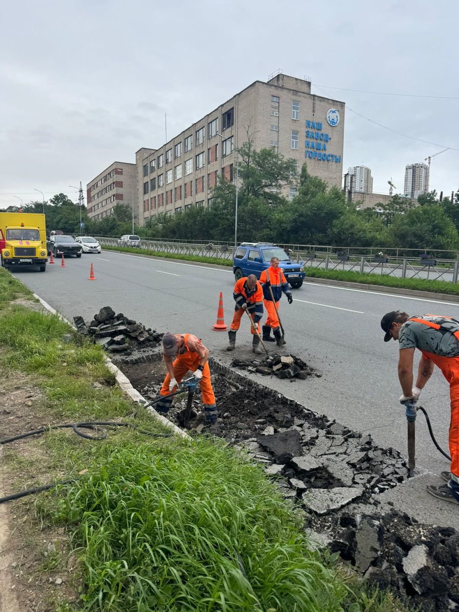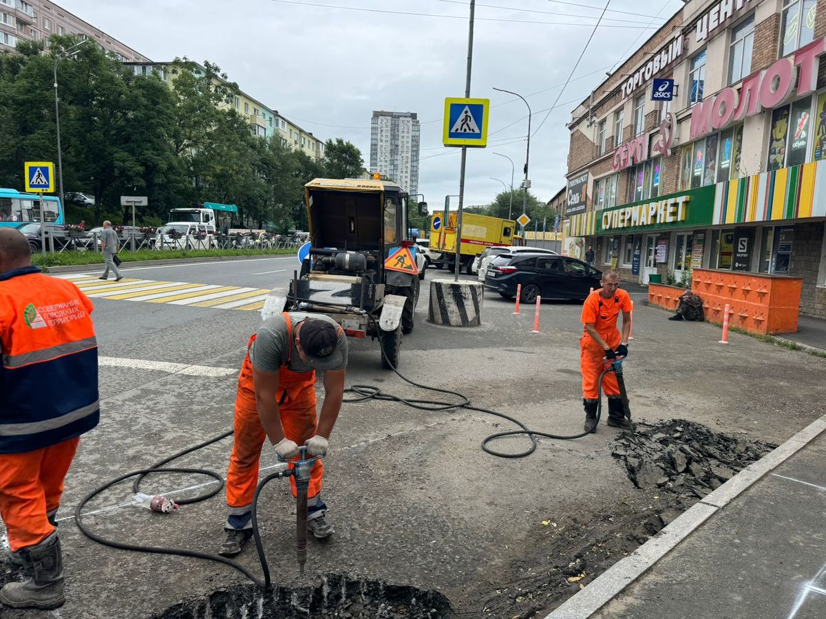 Параллельно бригады дорожников трудятся на трассе Седанка – Патрокл. Здесь минувшей ночью приступили к снятию повреждённого слоя асфальта на отдельных участках дороги. «Прошлой ночью снято 4500 квадратных метров повреждённого асфальта на участке от улицы Фадеева до улицы Катерной (включительно), а сегодня планируется укладка нового асфальтобетонного покрытия», – добавили дорожники.
