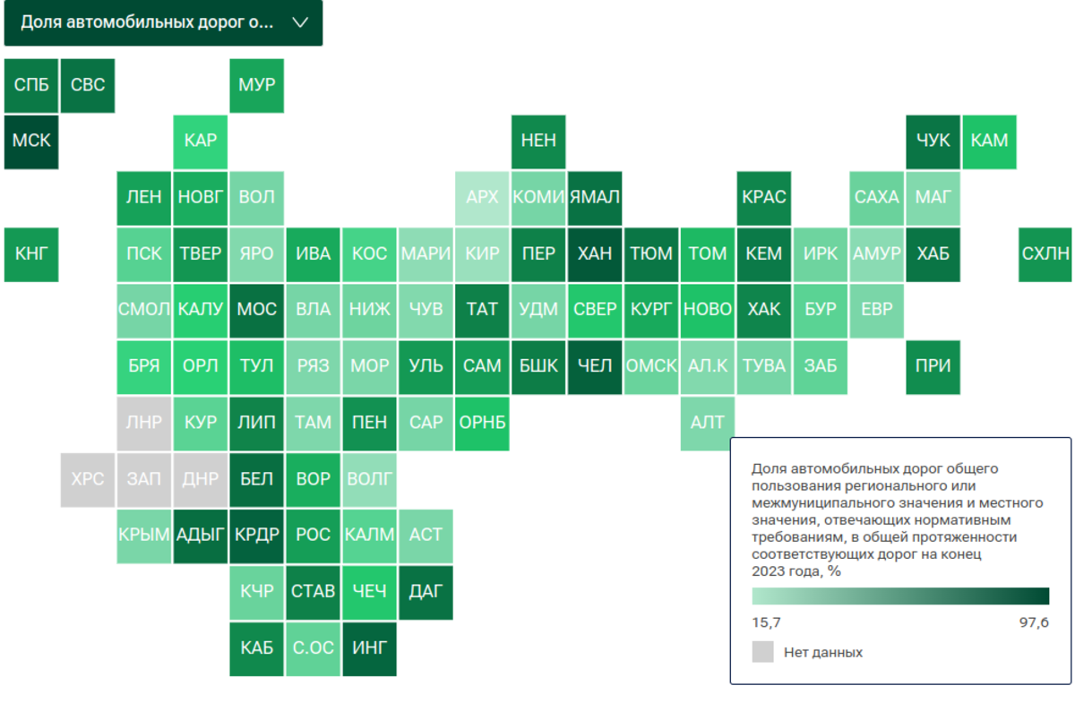 Качество дорог исторически считается если не главной, то одной из важнейших проблем нашей страны. Несмотря на наблюдающуюся положительную динамику в России, почти 50% автомобильных дорог общего пользования регионального или межмуниципального значения и местного значения не отвечают нормативным требованиям. В разных регионах Российской Федерации состояние дорог существенно отличается, что обусловлено многими причинами, в том числе природно-климатическими условиями.