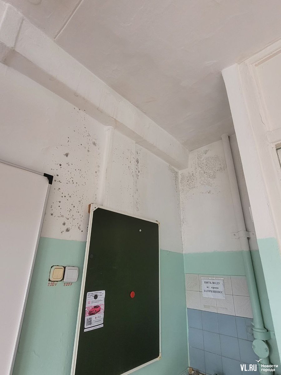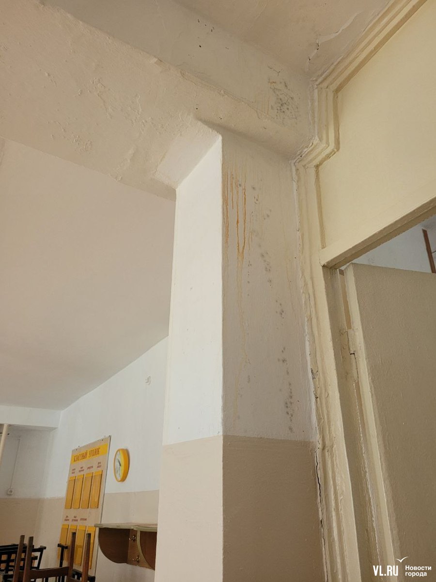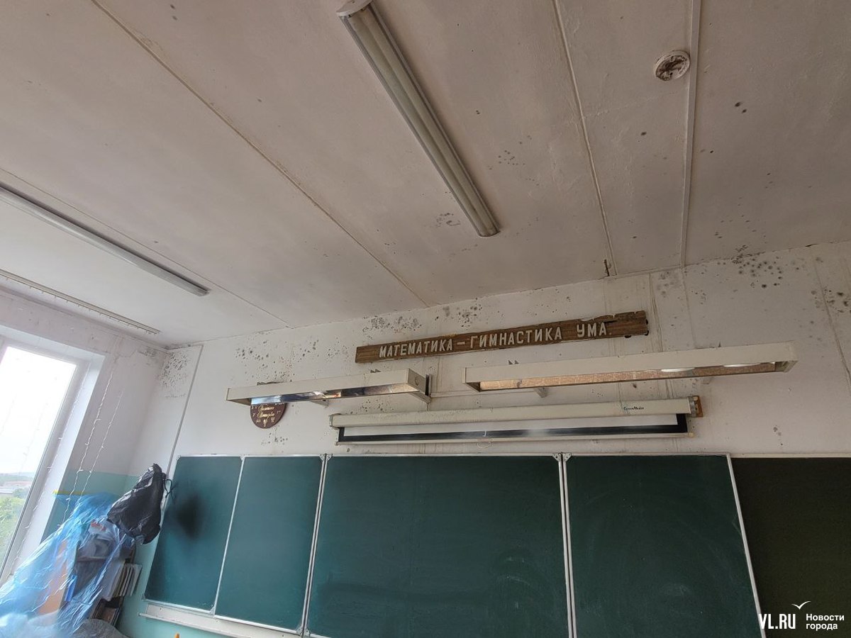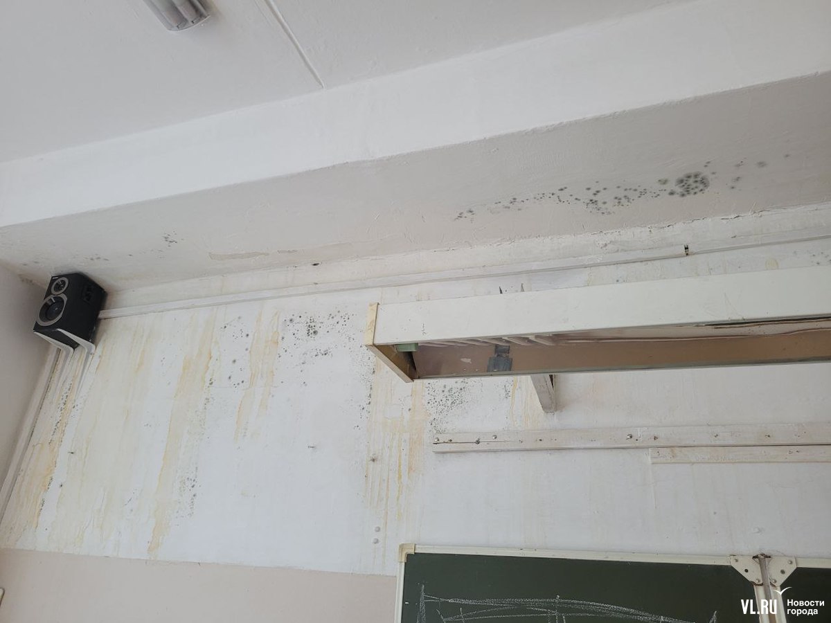 «Школа выиграла в проекте Модернизация, по которому должны были капитально отремонтировать фасад, кровлю, спортзалы, пищеблок и стадион, – рассказывает корреспонденту Новостей VL.ru член совета Алиса. – После того, как отремонтировали нижние этажи, подрядчик приступил к ремонту кровли и фасада, соответственно все демонтировали. Дожди залили все полы, по стенам текла вода. Школа в итоге превратилась в грибную поляну. От попечительского совета эту информацию скрывали, пока не всплыли фотографии школы внутри».
