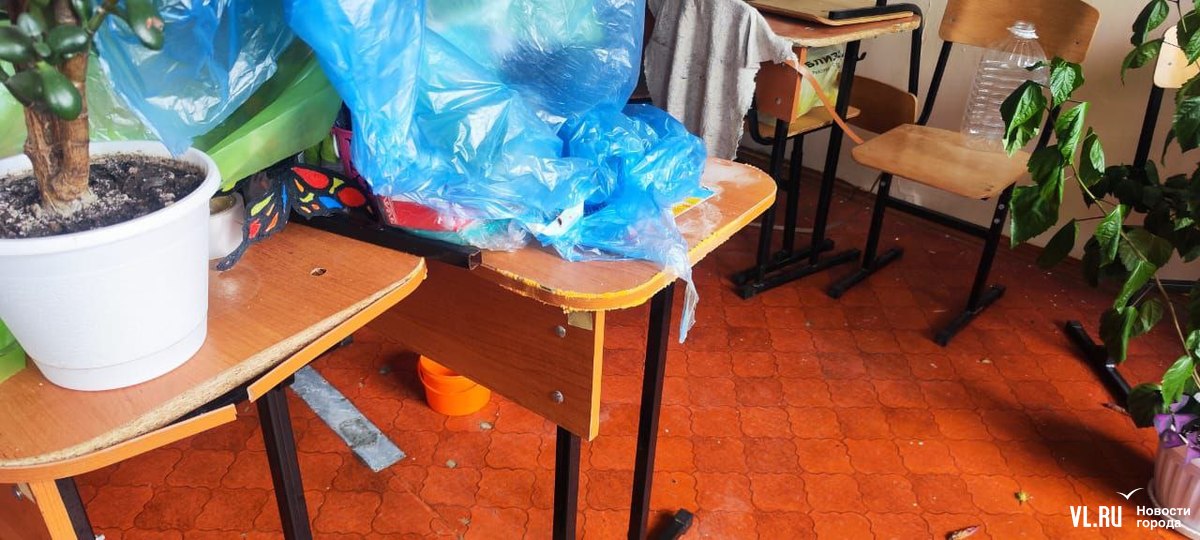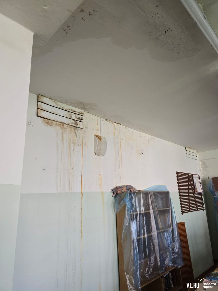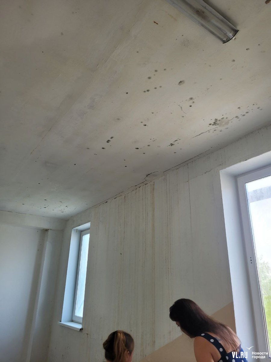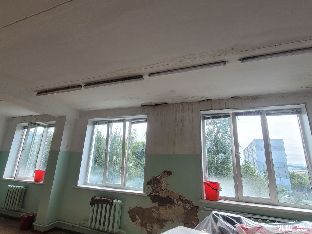 «Школа выиграла в проекте Модернизация, по которому должны были капитально отремонтировать фасад, кровлю, спортзалы, пищеблок и стадион, – рассказывает корреспонденту Новостей VL.ru член совета Алиса. – После того, как отремонтировали нижние этажи, подрядчик приступил к ремонту кровли и фасада, соответственно все демонтировали. Дожди залили все полы, по стенам текла вода. Школа в итоге превратилась в грибную поляну. От попечительского совета эту информацию скрывали, пока не всплыли фотографии школы внутри».