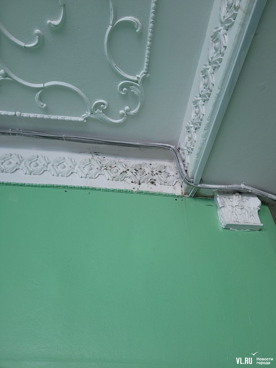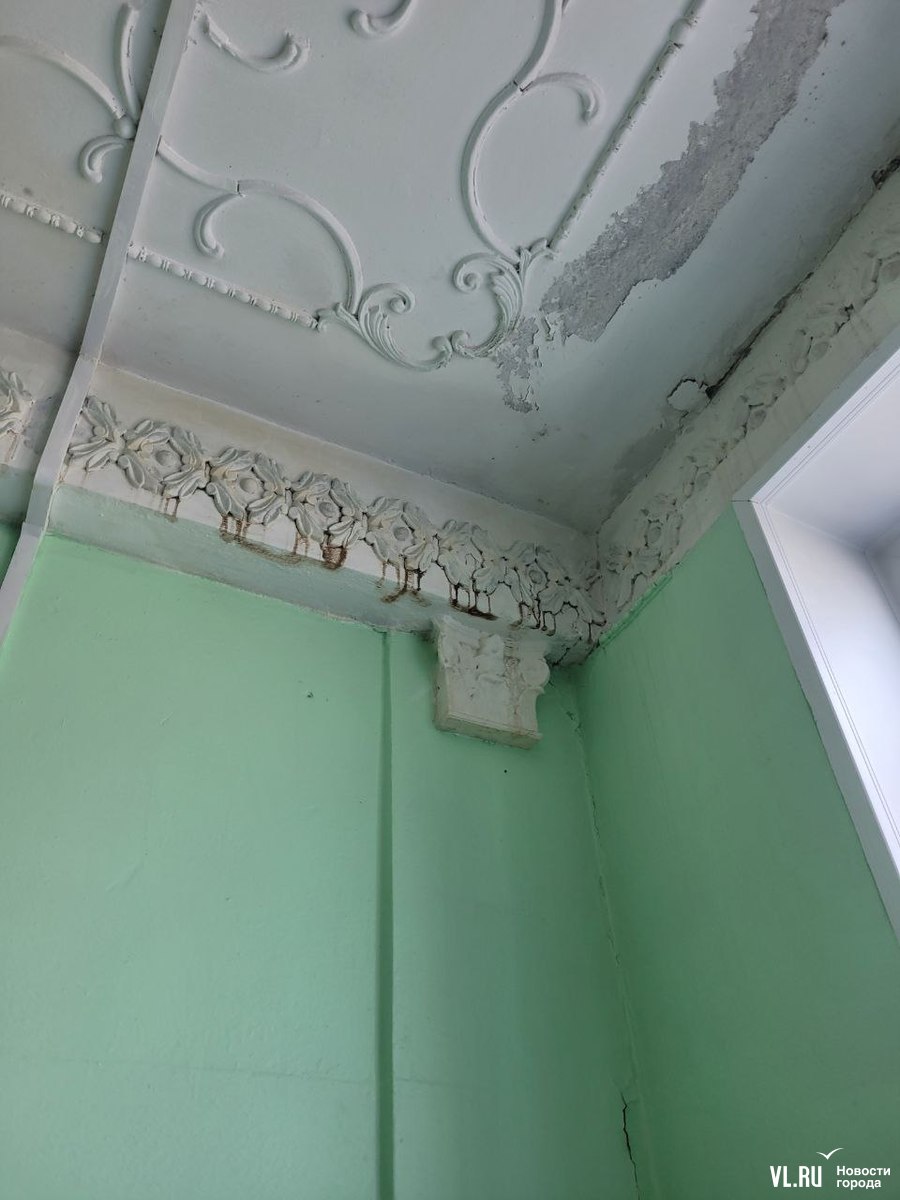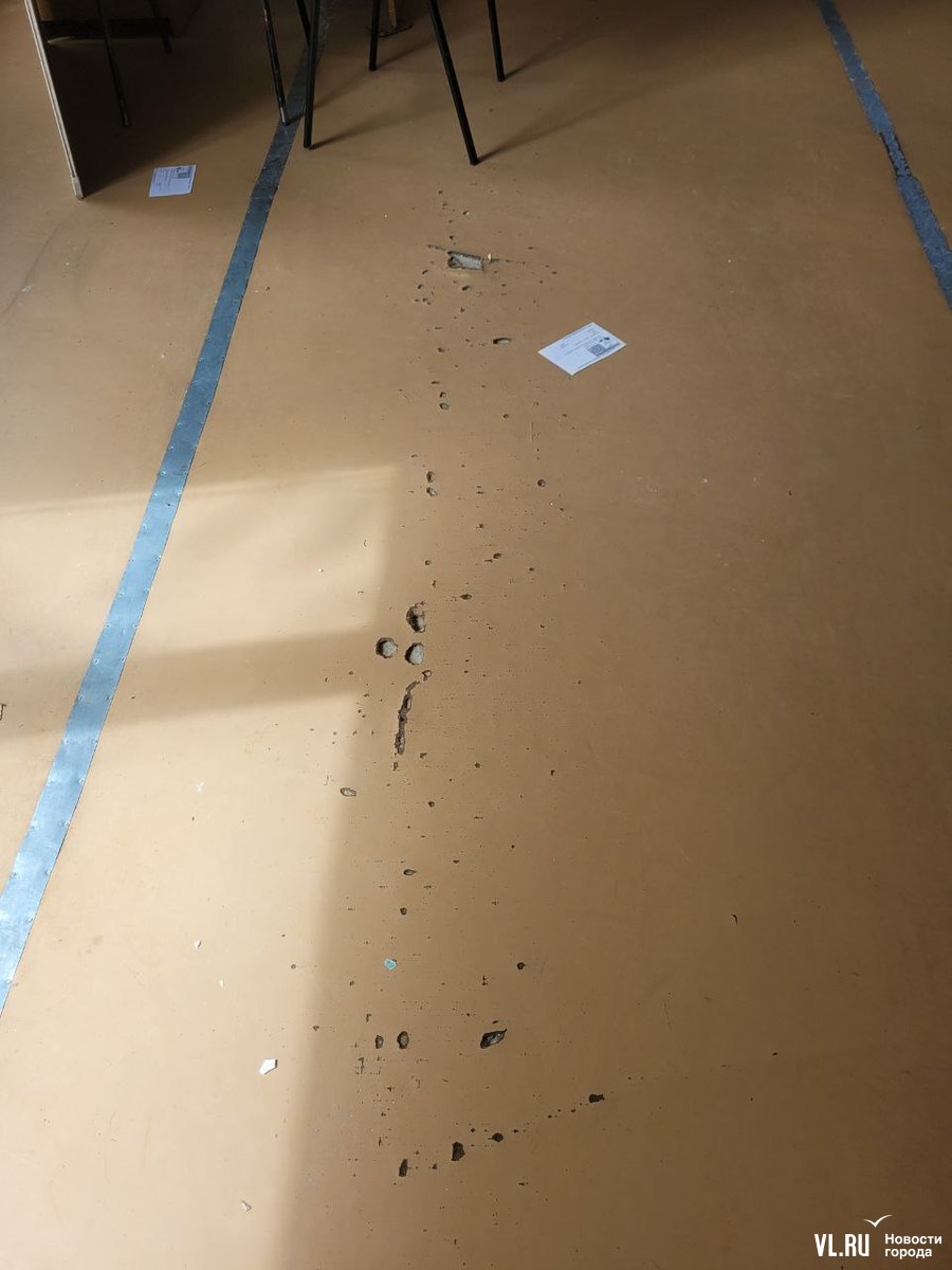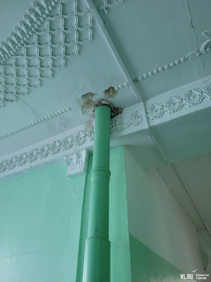 «Школа выиграла в проекте Модернизация, по которому должны были капитально отремонтировать фасад, кровлю, спортзалы, пищеблок и стадион, – рассказывает корреспонденту Новостей VL.ru член совета Алиса. – После того, как отремонтировали нижние этажи, подрядчик приступил к ремонту кровли и фасада, соответственно все демонтировали. Дожди залили все полы, по стенам текла вода. Школа в итоге превратилась в грибную поляну. От попечительского совета эту информацию скрывали, пока не всплыли фотографии школы внутри».